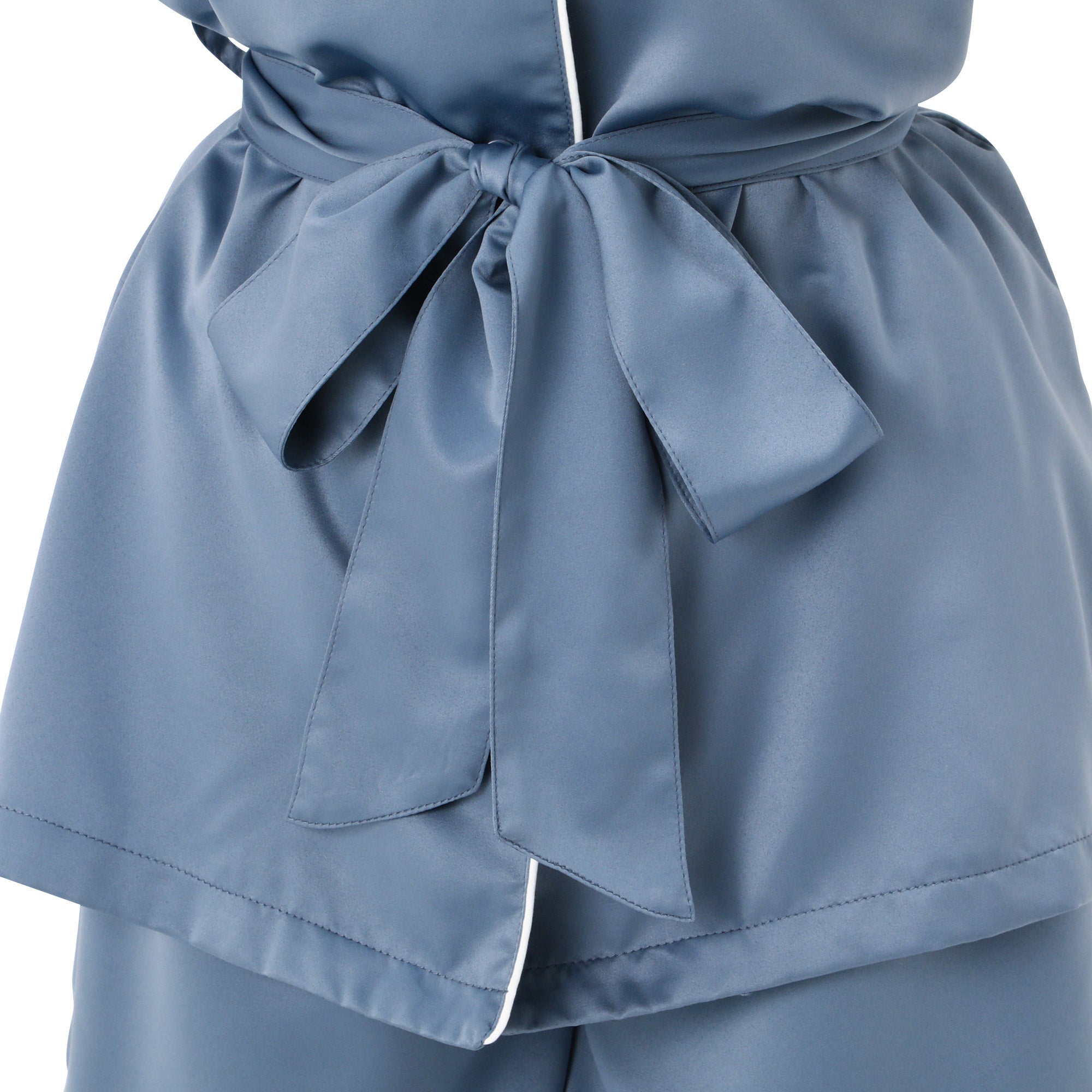 人気の定番、ロゴ刺繍入りのエレガントなパジャマです。長時間着ていてもストレスのない柔らかなサテン生地にヒアルロン酸加工を施し、より一層なめらかな肌ざわりに仕上げました。