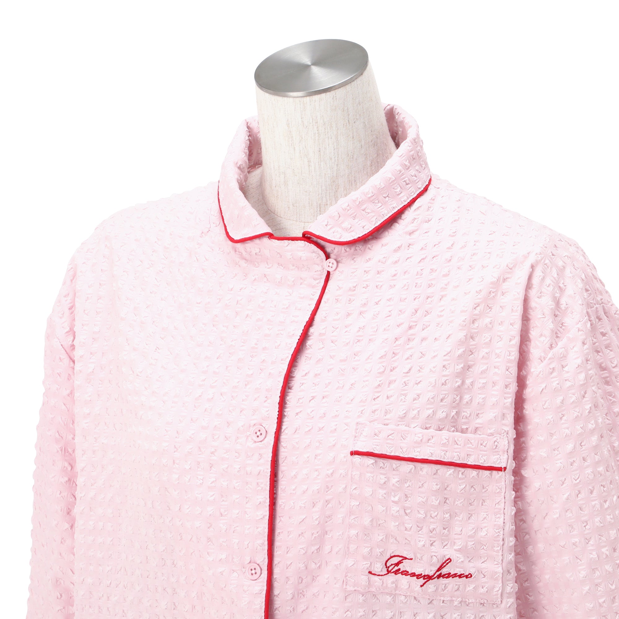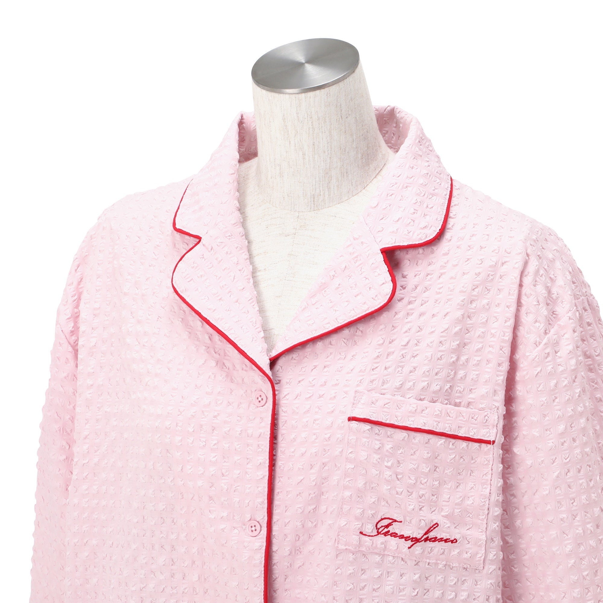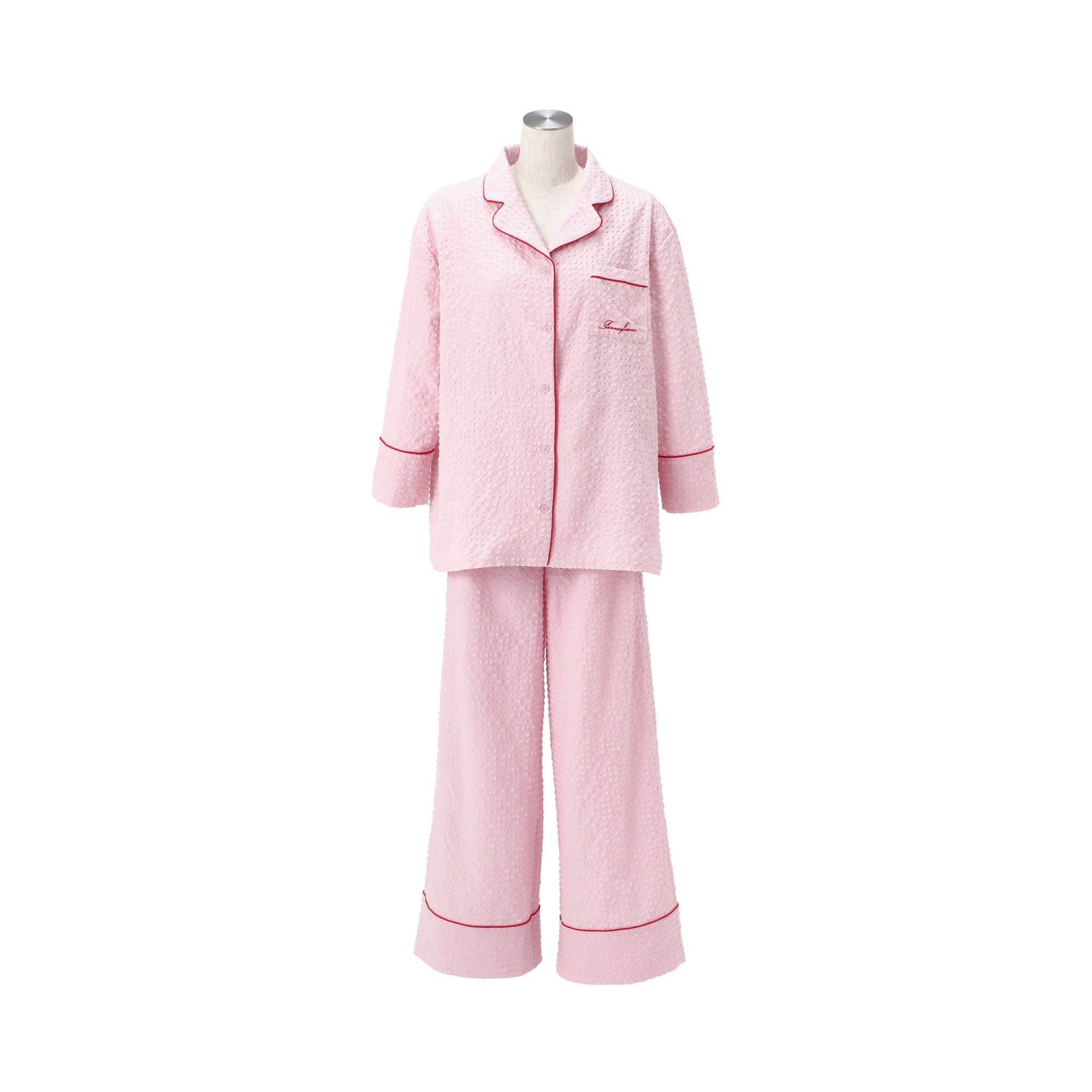 ロゴ刺繍 チェックジャガードパジャマ ピンク
