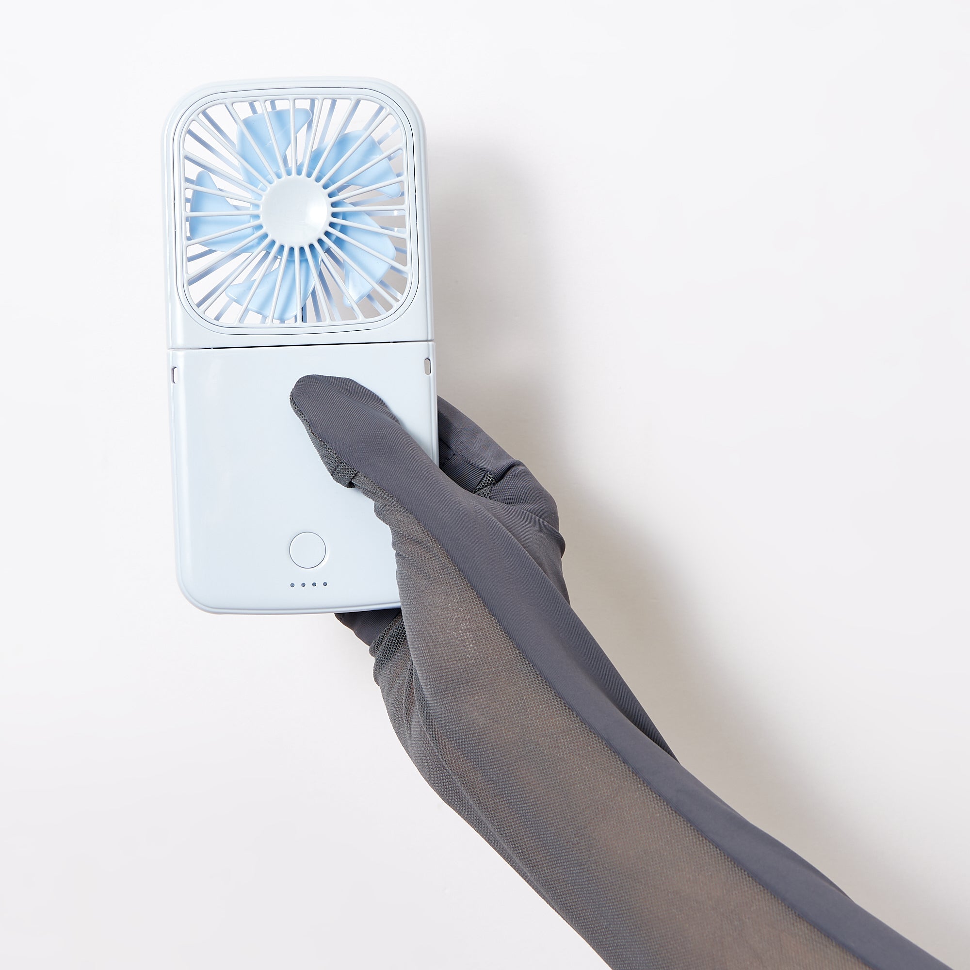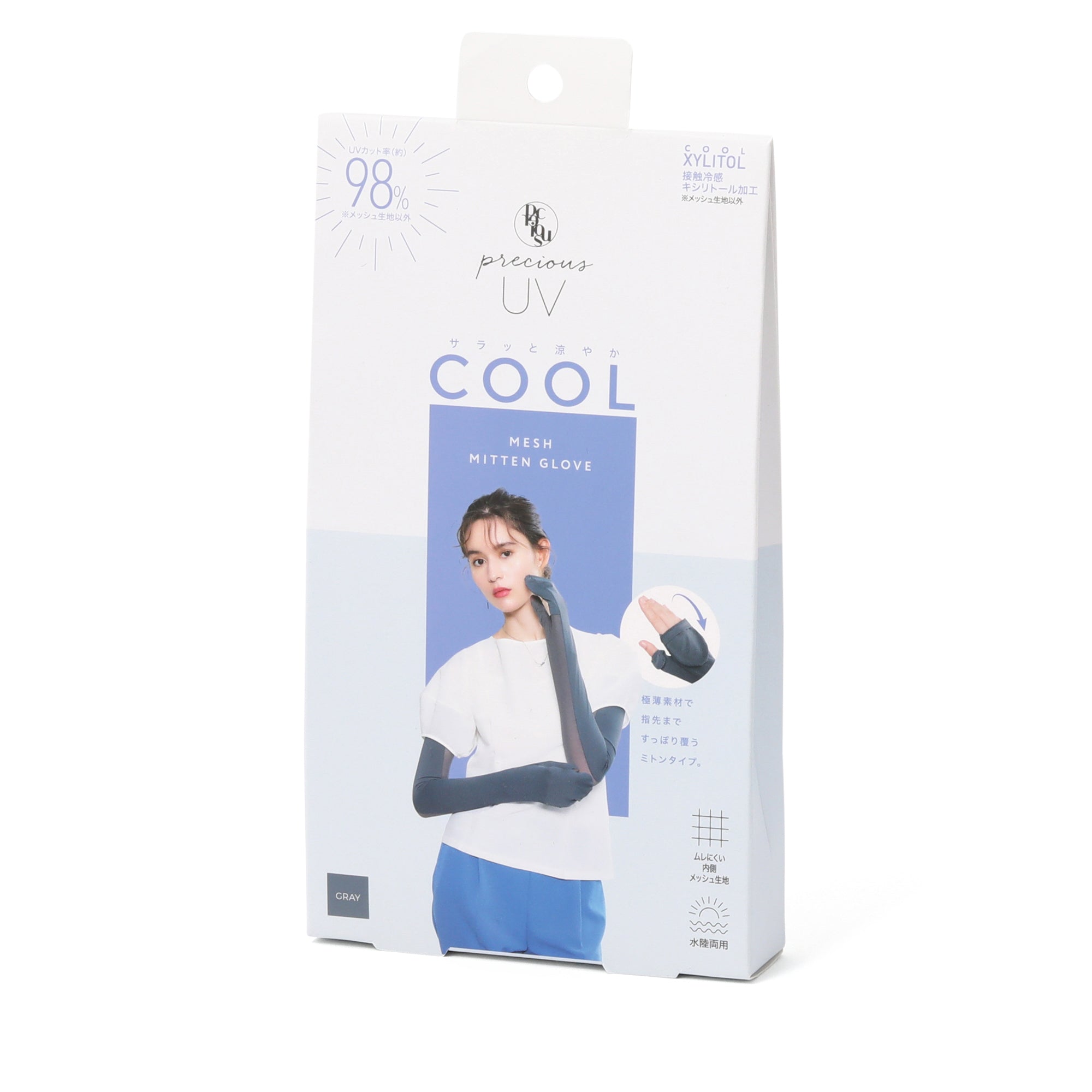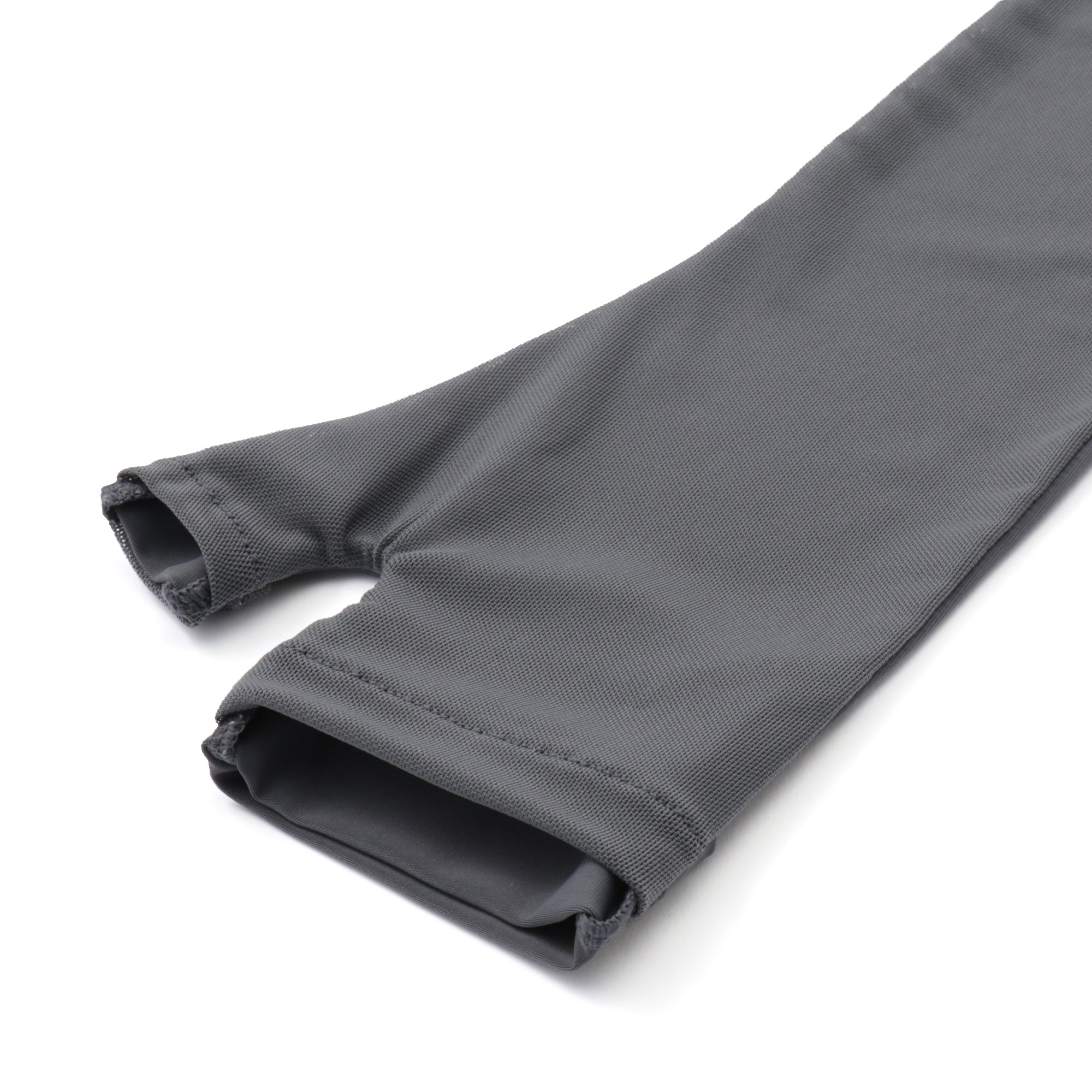 指先まですっぽり覆うミトンタイプのUV加工付きのアームカバーです。自転車や車に乗る時でも、手の甲が焼けにくいです。肌あたりの良い薄手素材、内側はメッシュなので猛暑でも付けやすい素材感です。