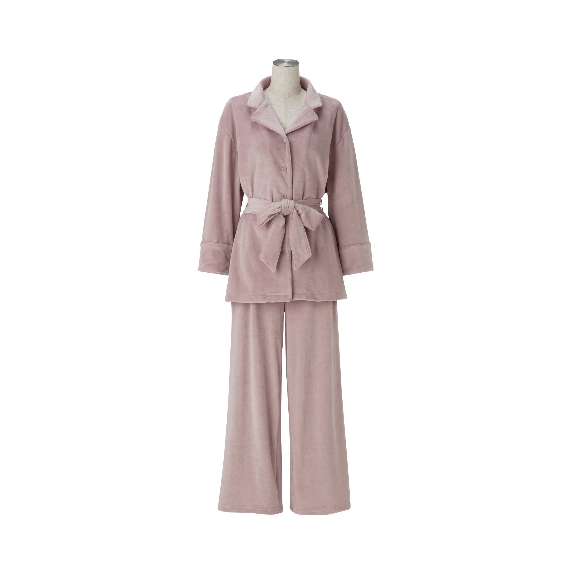 ヒアルロン酸加工 ストレッチベロアパジャマ ピンク