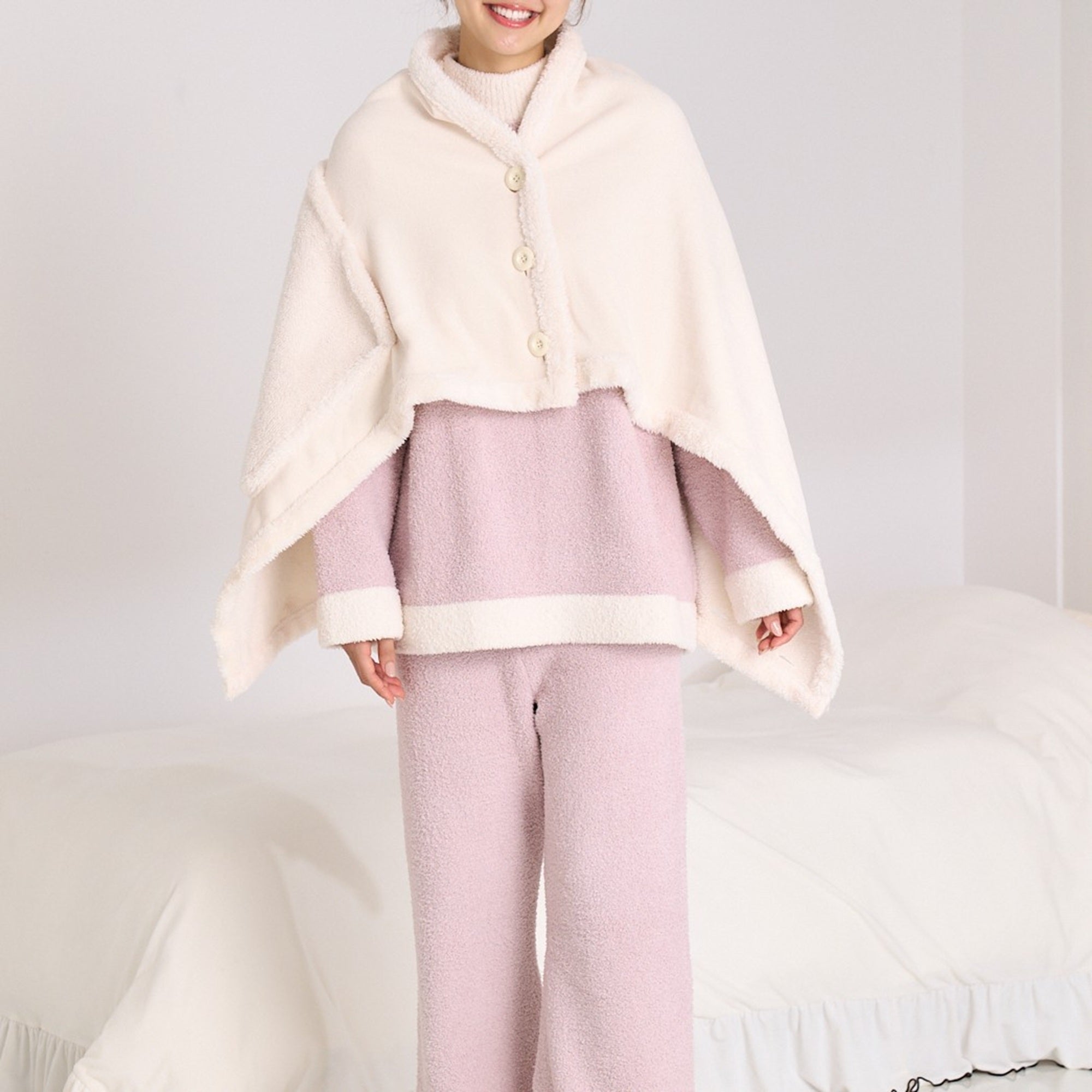 表面はシェニール織、裏面は起毛生地の両面リバーシブルのポンチョです。もっちりとしたシェニール織の手触りと、ふわふわとした起毛生地の手触りがどちらも楽しめます。ポンチョ・ボレロ・巻きスカート・ブランケットと4通りの多彩な使い方ができる便利アイテム。起毛部分へ空気を溜め込むことにより熱を保持してくれるため、暖かく過ごせます。洗濯可能でシワになりにくく、長時間着ていても疲れにくい軽量素材のため、おうち時間に最適です。Sサイズはコンパクトで気軽に使用できるサイズで、冬場のちょっとしたギフトにもおすすめです。静電気防止加工付き。※モデル着用画像は撮影時の環境(場所、照明等)により、色味が異なって見える場合がございます。単体画像の色味をご参照ください。
