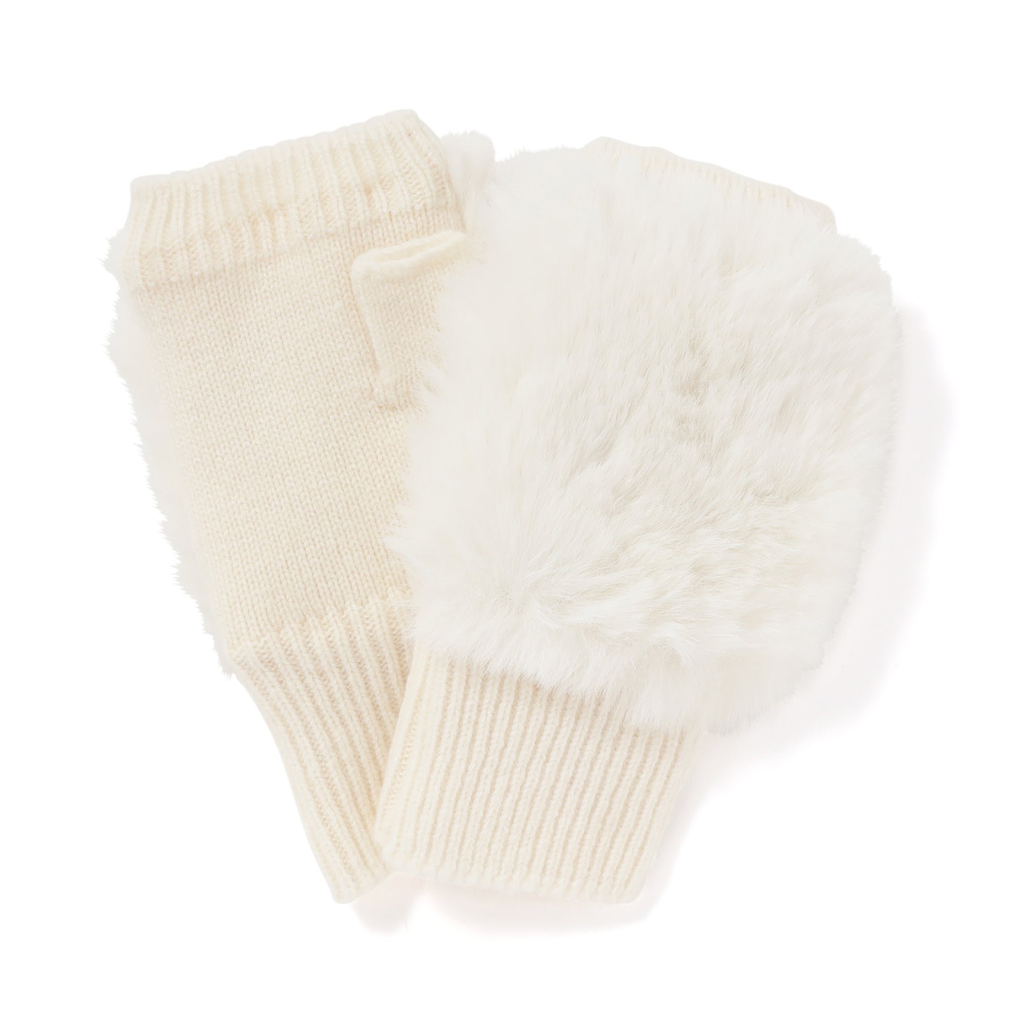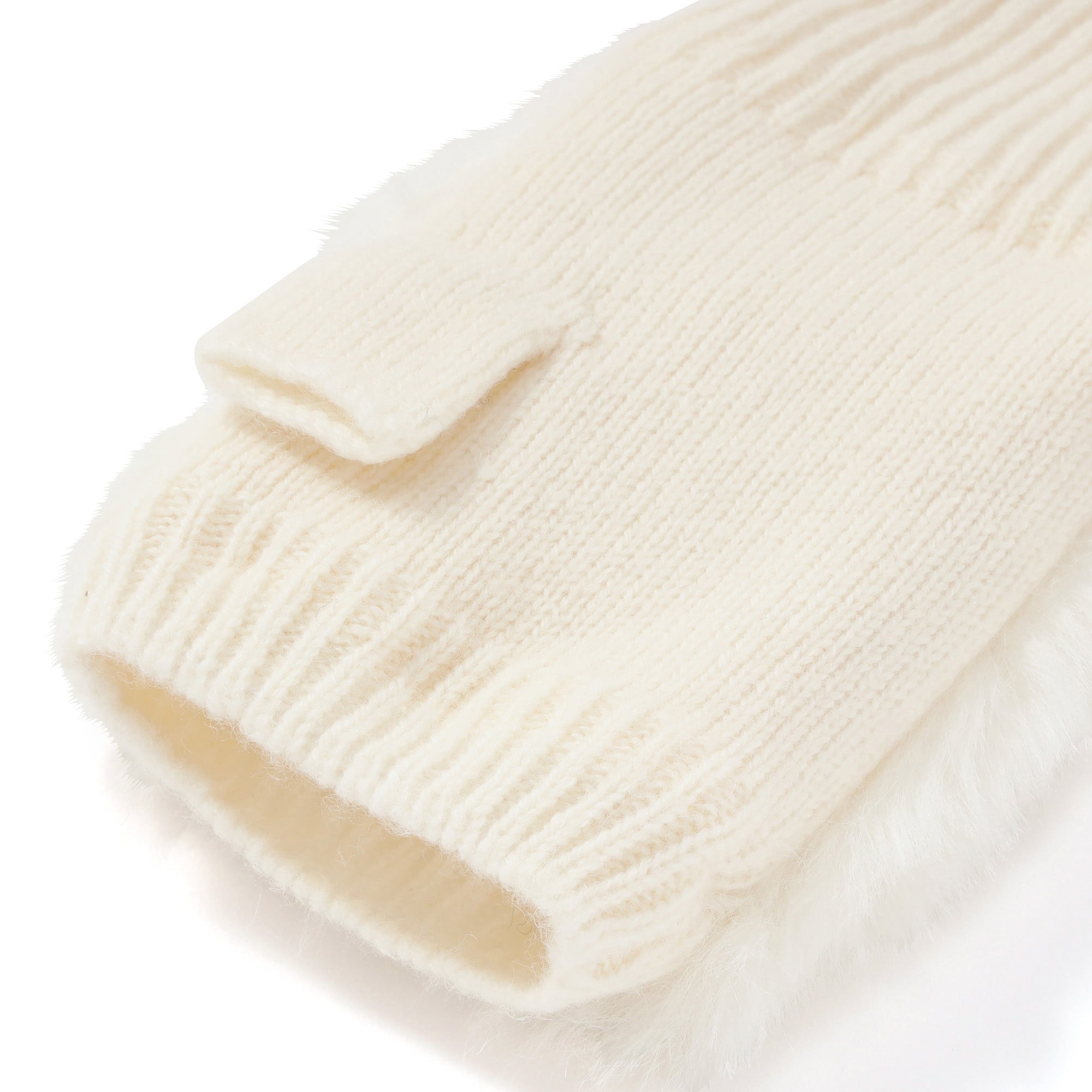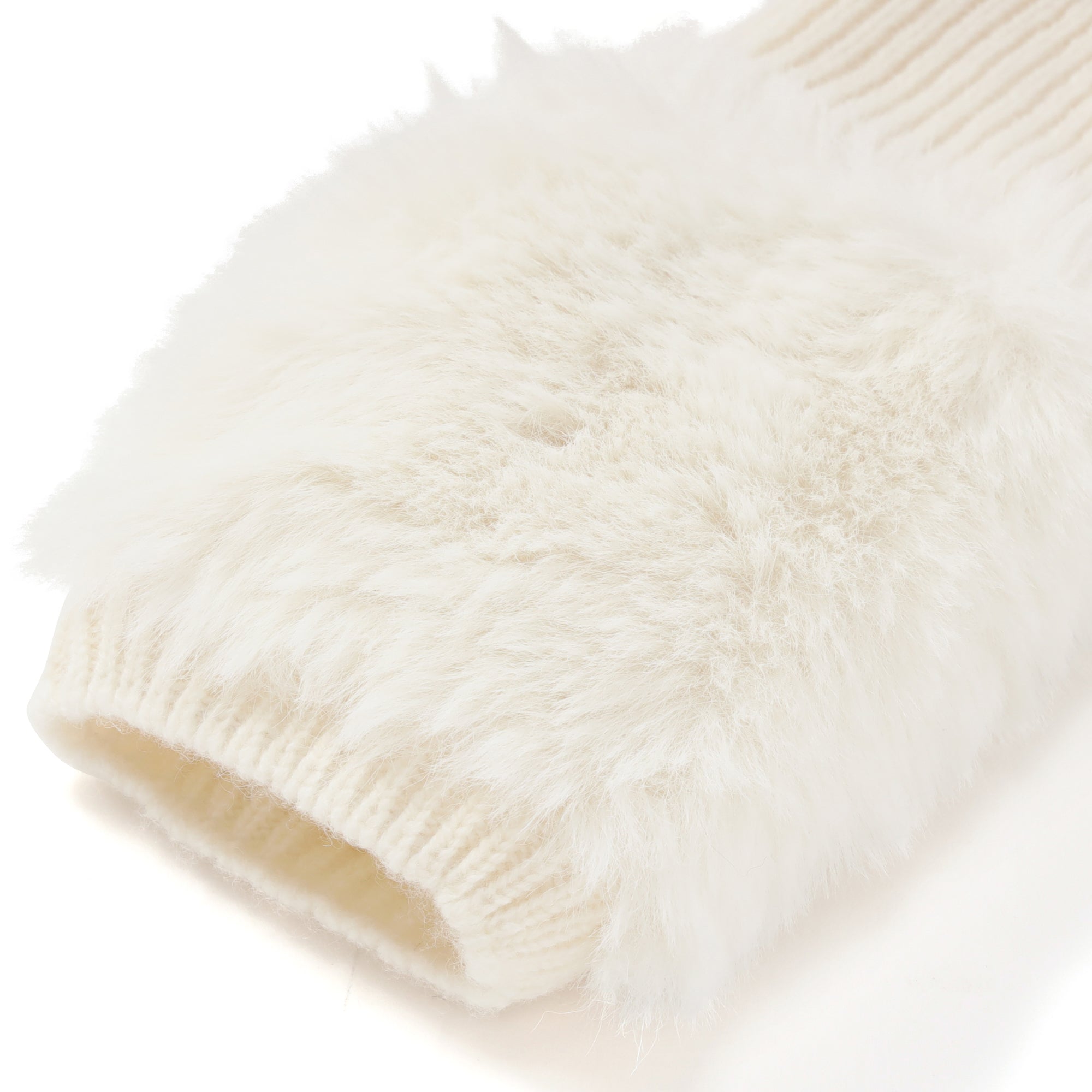 指先の自由が利くフィンガーレスタイプのグローブです。手袋をつけたままでも指先を使う細かな作業やスマートフォンの操作がしやすく便利。ふわふわファー素材ともこもこニット素材のコンビネーションが冬のコーディネートをキュートに彩ります。パッケージ入りだから、肌寒い季節の贈り物にもおすすめです。