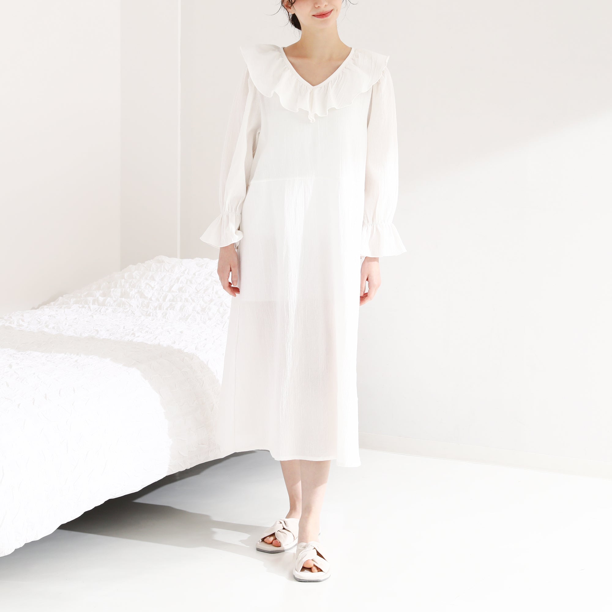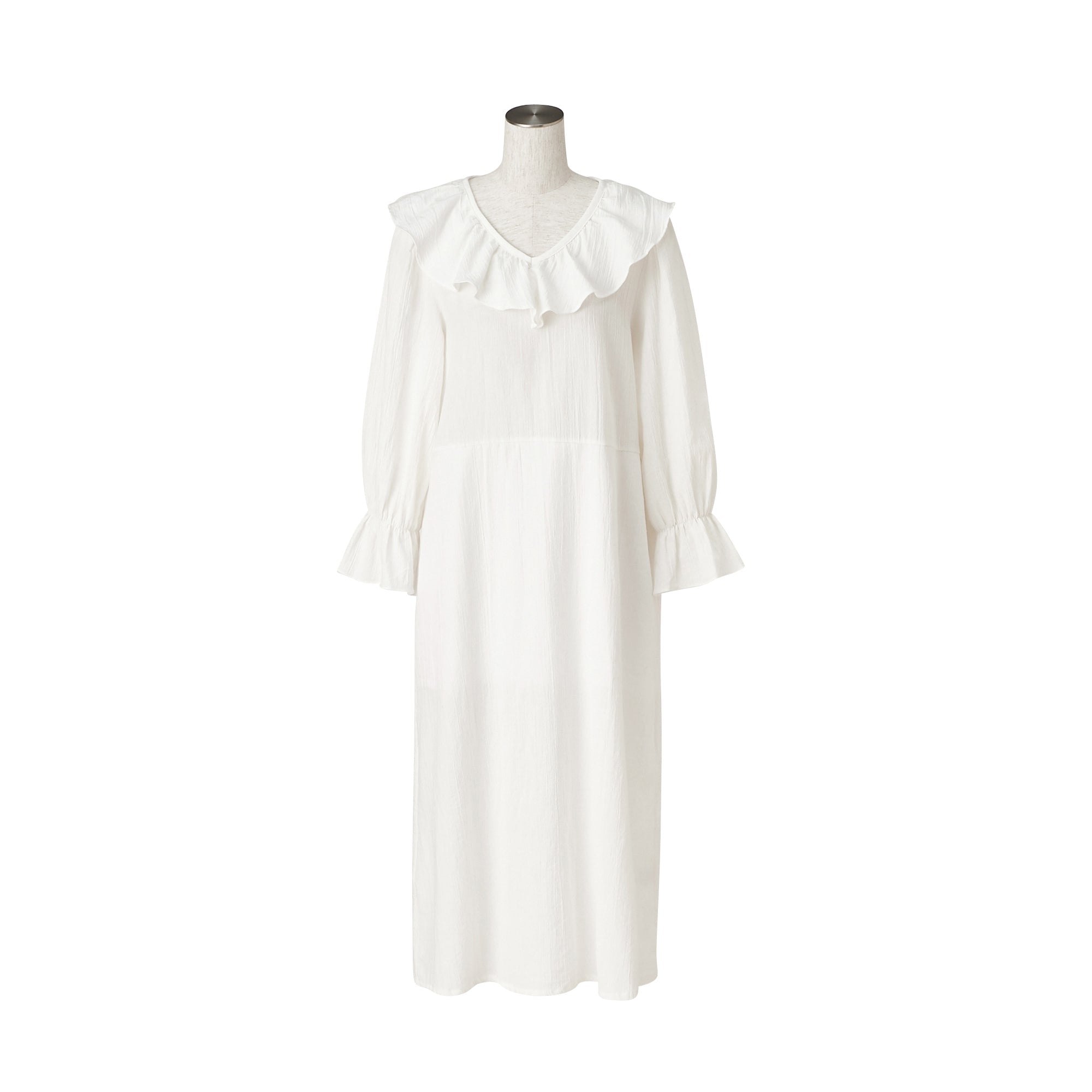 楊柳ラッフル ワンピース 裏地付き アイボリー