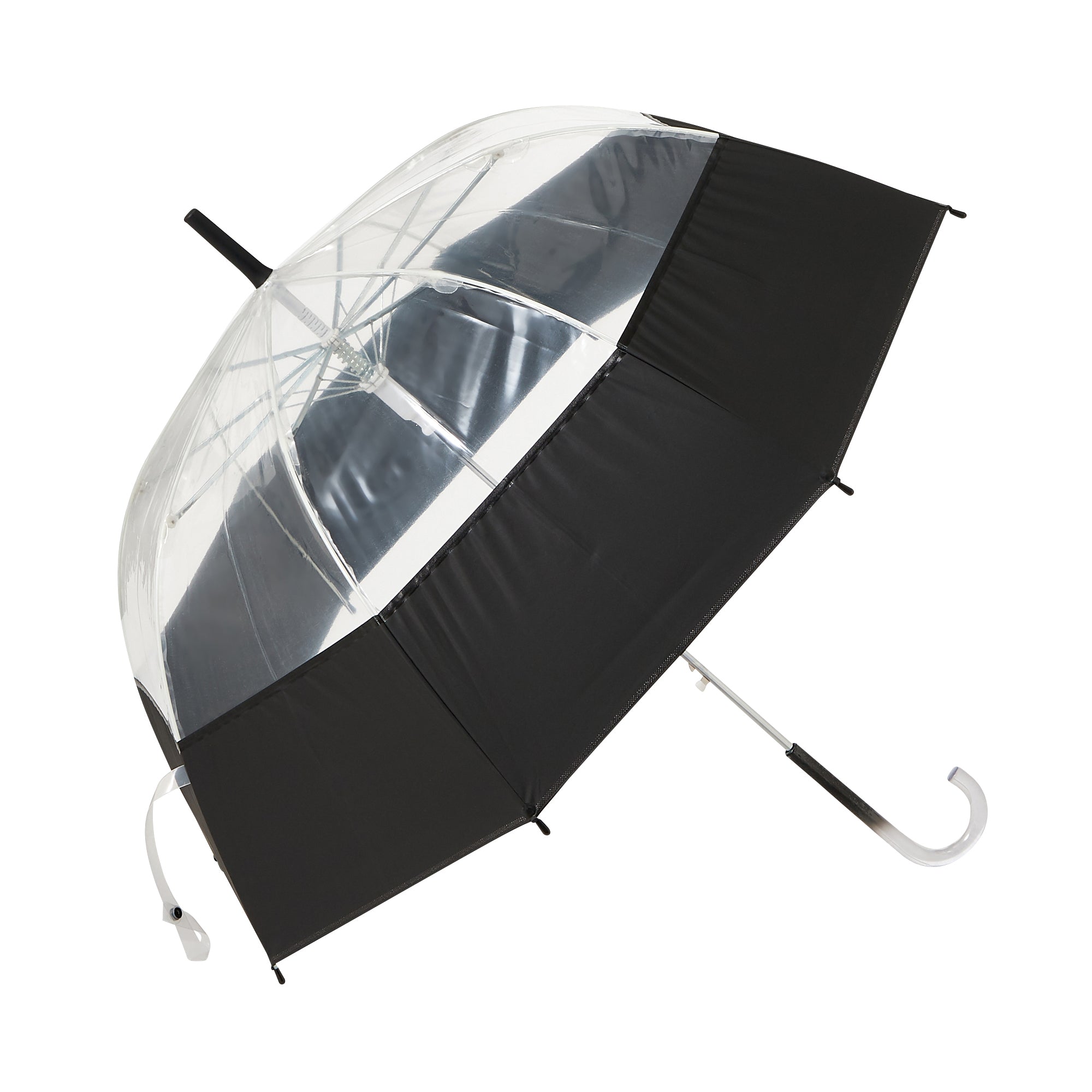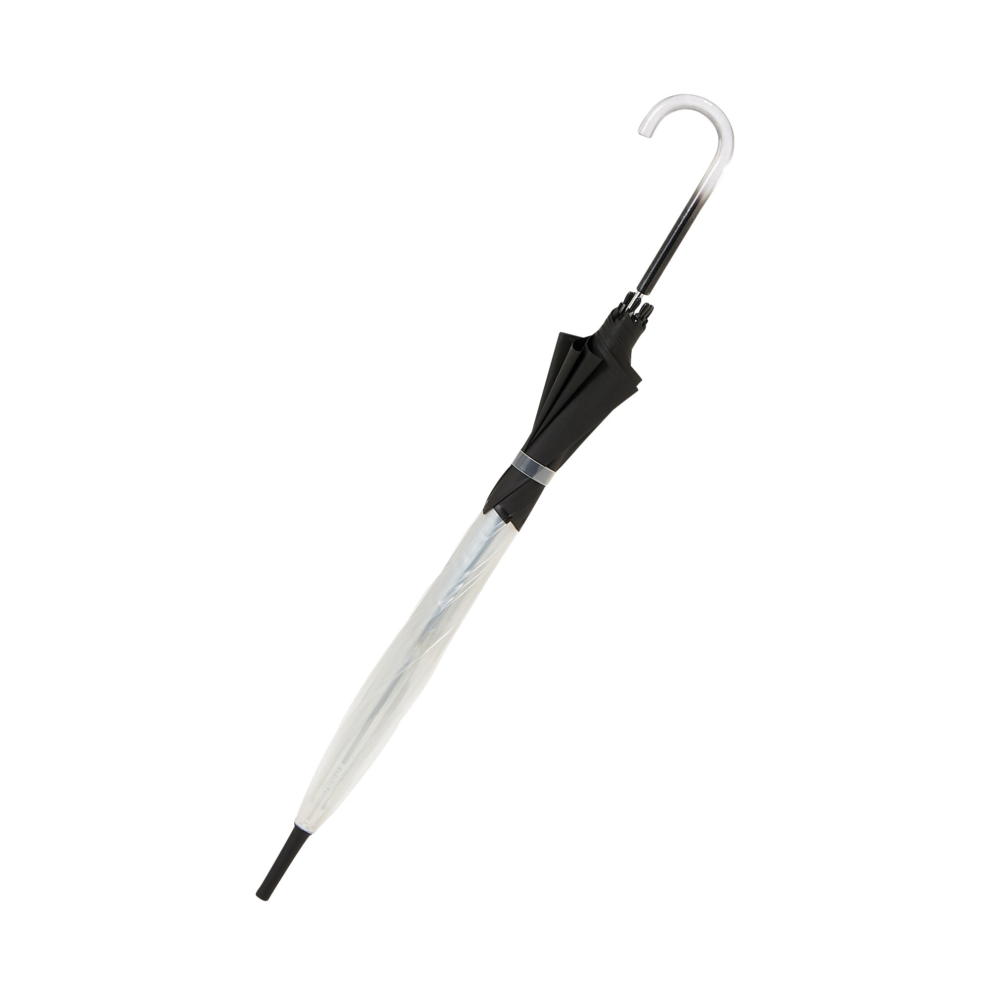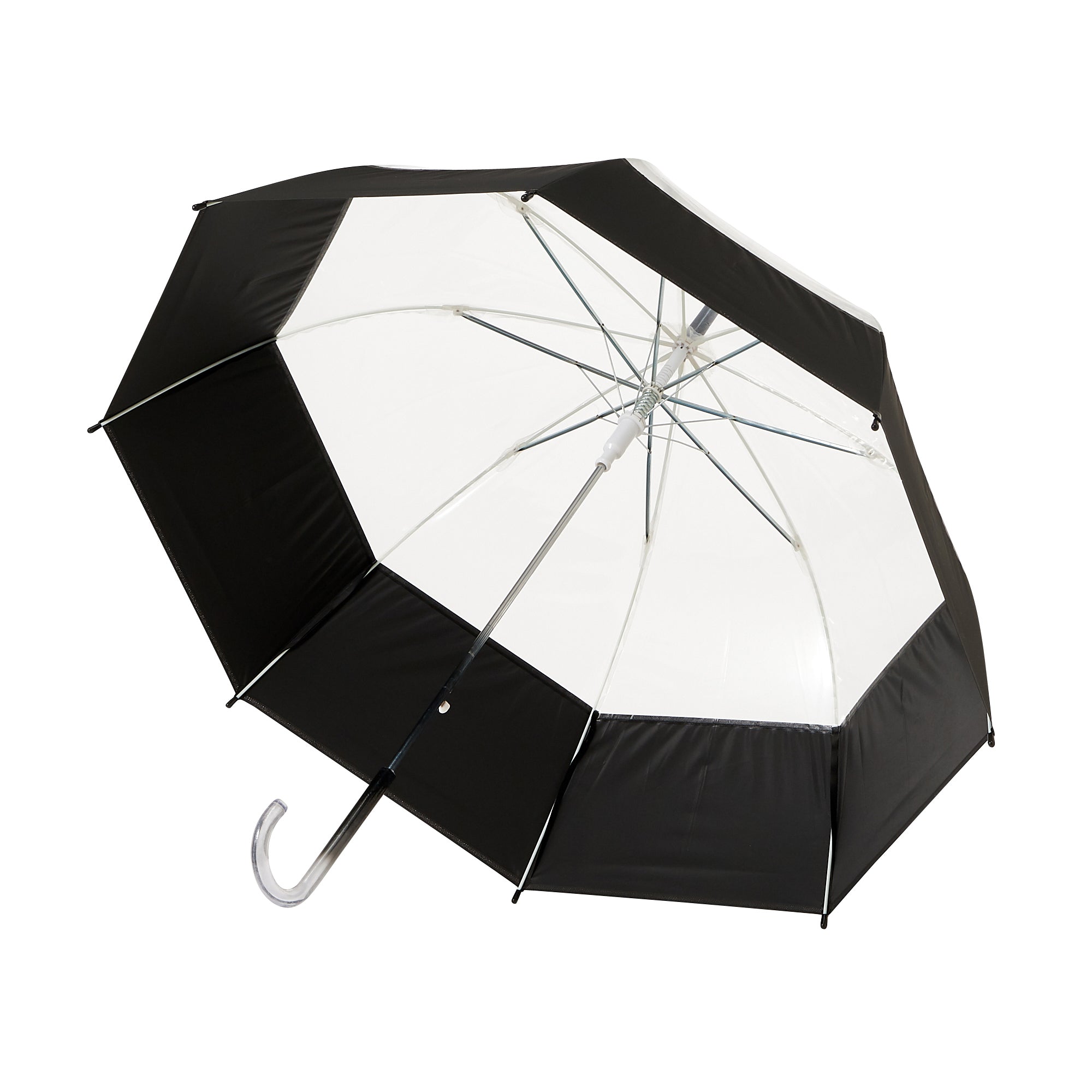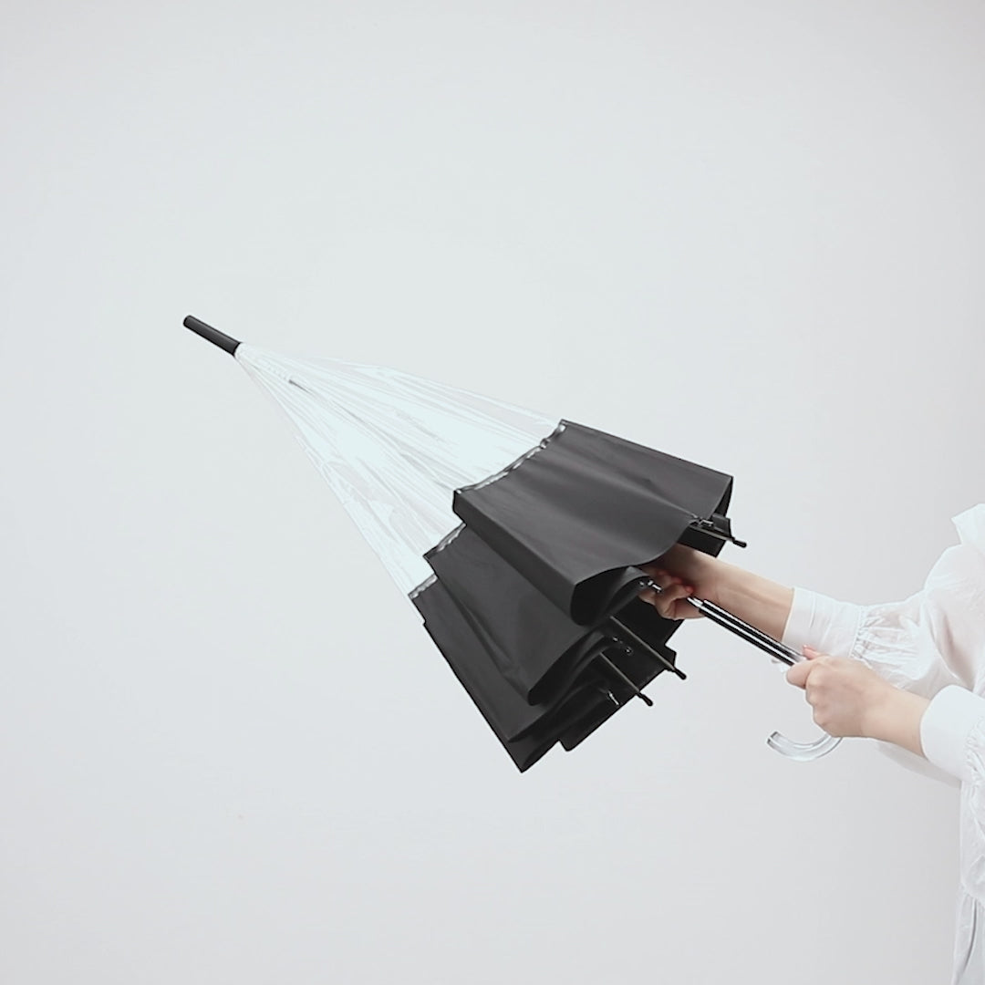 ブラック×クリアのバイカラーがスタイリッシュなビニール傘です。丸みのあるフォルムで人気のバードケージ型は、見た目が可愛いだけでなく肩周りが濡れにくい機能的なデザイン。ワンタッチで開くジャンプ式だから、荷物が多くて手がふさがっている時でも楽々操作できます。グラデーションの持ち手にリニューアルしました。