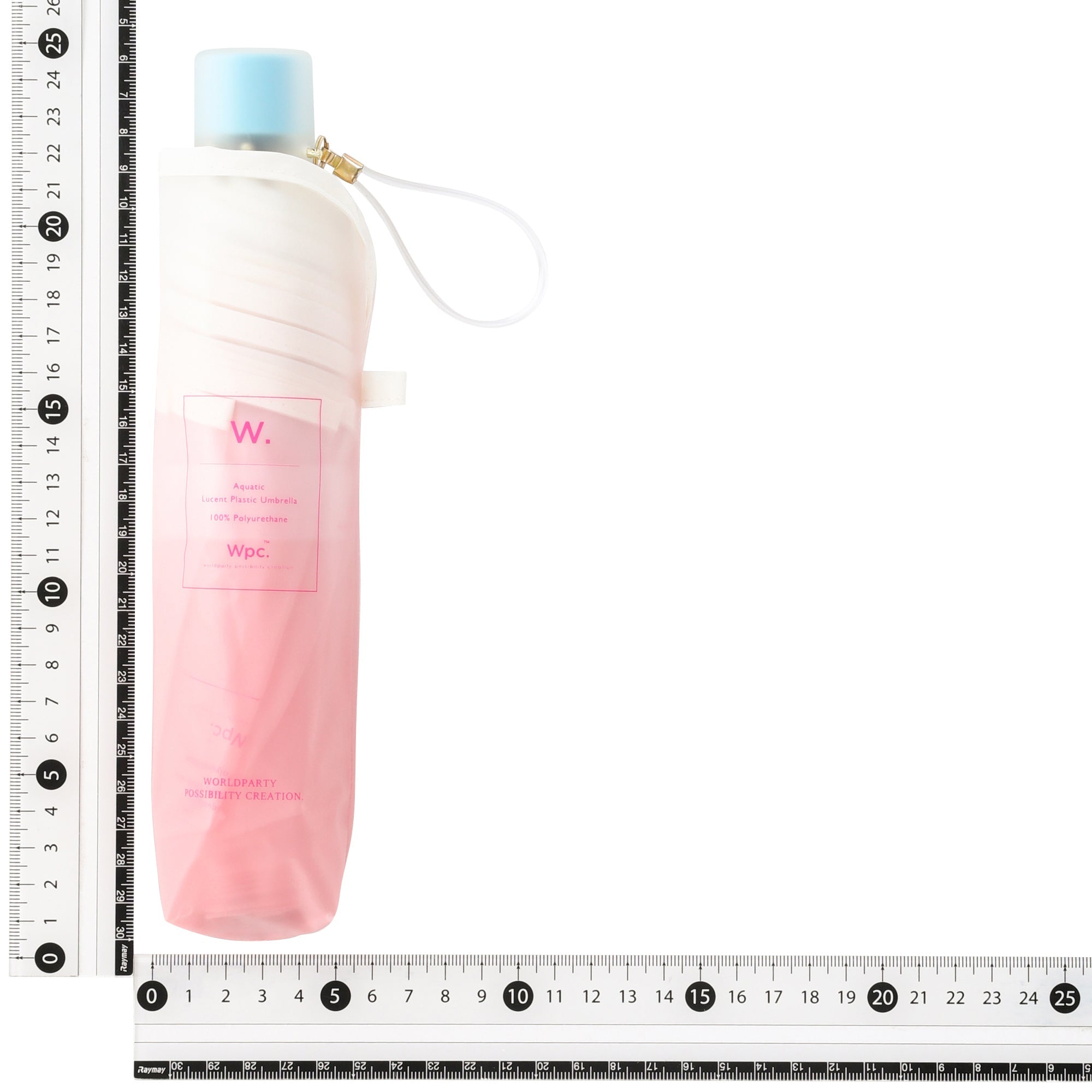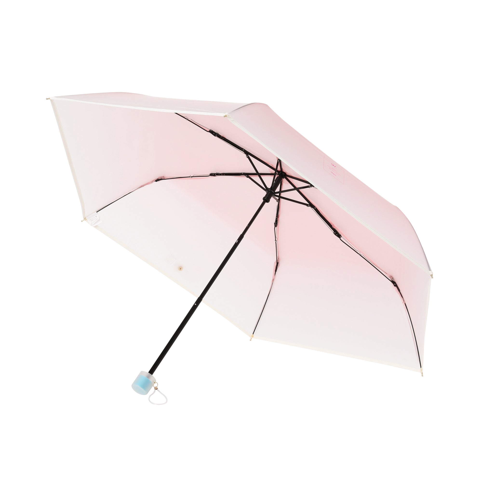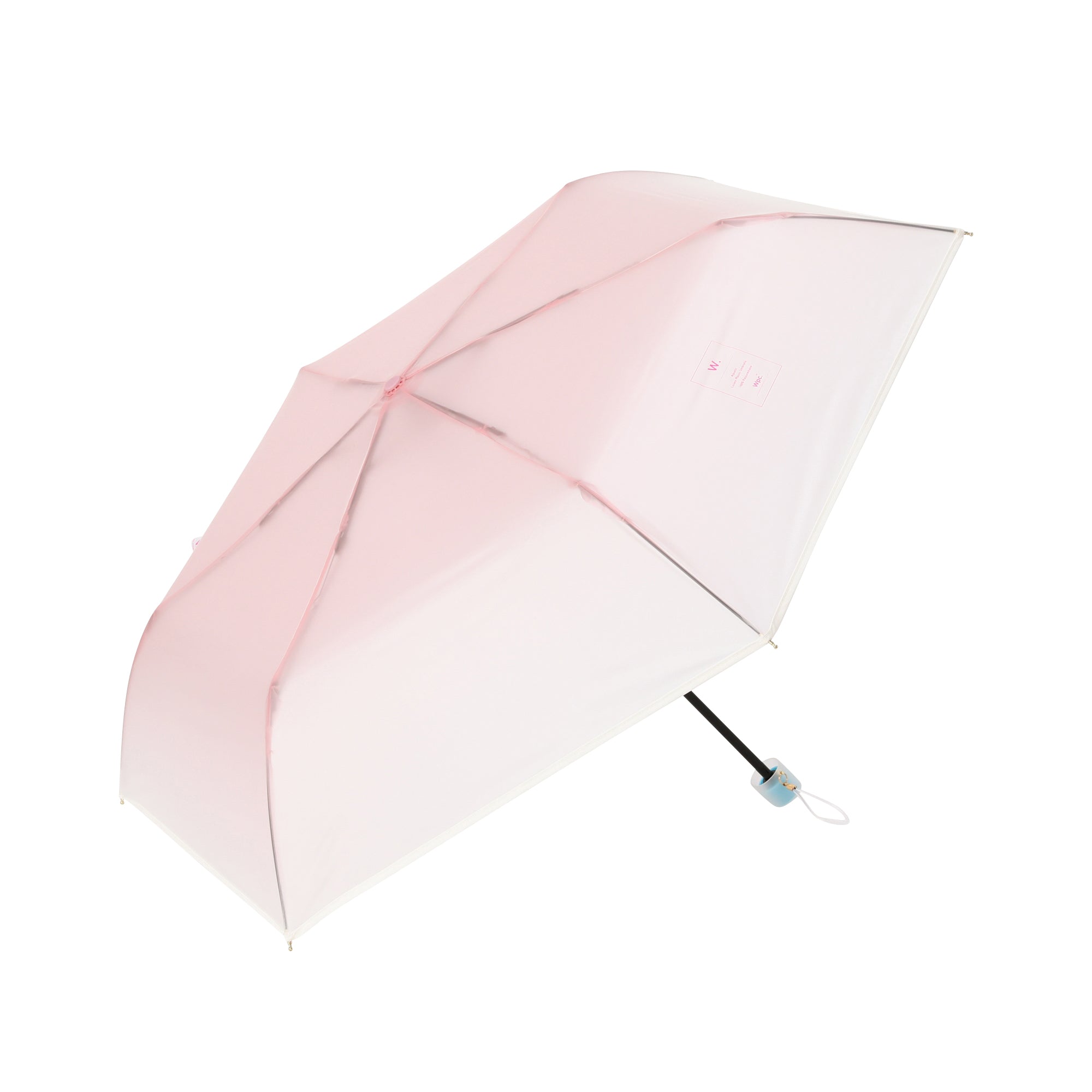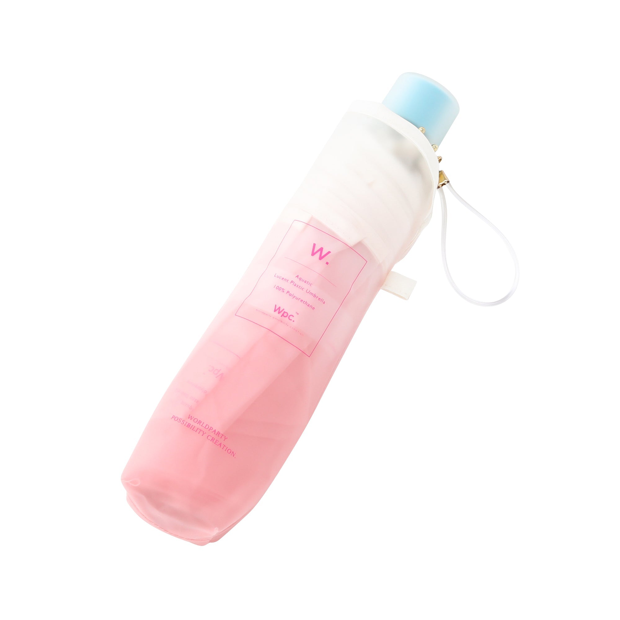 みずみずしいグラデーションが可愛い折りたたみ式ビニール傘です。 コスメの可愛さ、ワクワクに着想を得て、傘全体にすりガラスのようなグラデーションを施しました。コスメボトルのキャップをイメージした持ち手の配色がポイントです。 開閉時にケガをしないよう手動で開ける手開き式を採用。3段骨ですがポキポキ折らずに簡単に開閉できます。 持ち手には耐衝撃性に優れたABS樹脂を使用して軽く持ち運びしやすい仕様に。骨の一部には軽くて折れにくく強度の高いグラスファイバーを採用して、使い捨てにせず愛着を持って長く使えるビニール傘に仕上げました。 雨空に映える特別な一本と一緒に雨の日のお出掛けをお楽しみください。