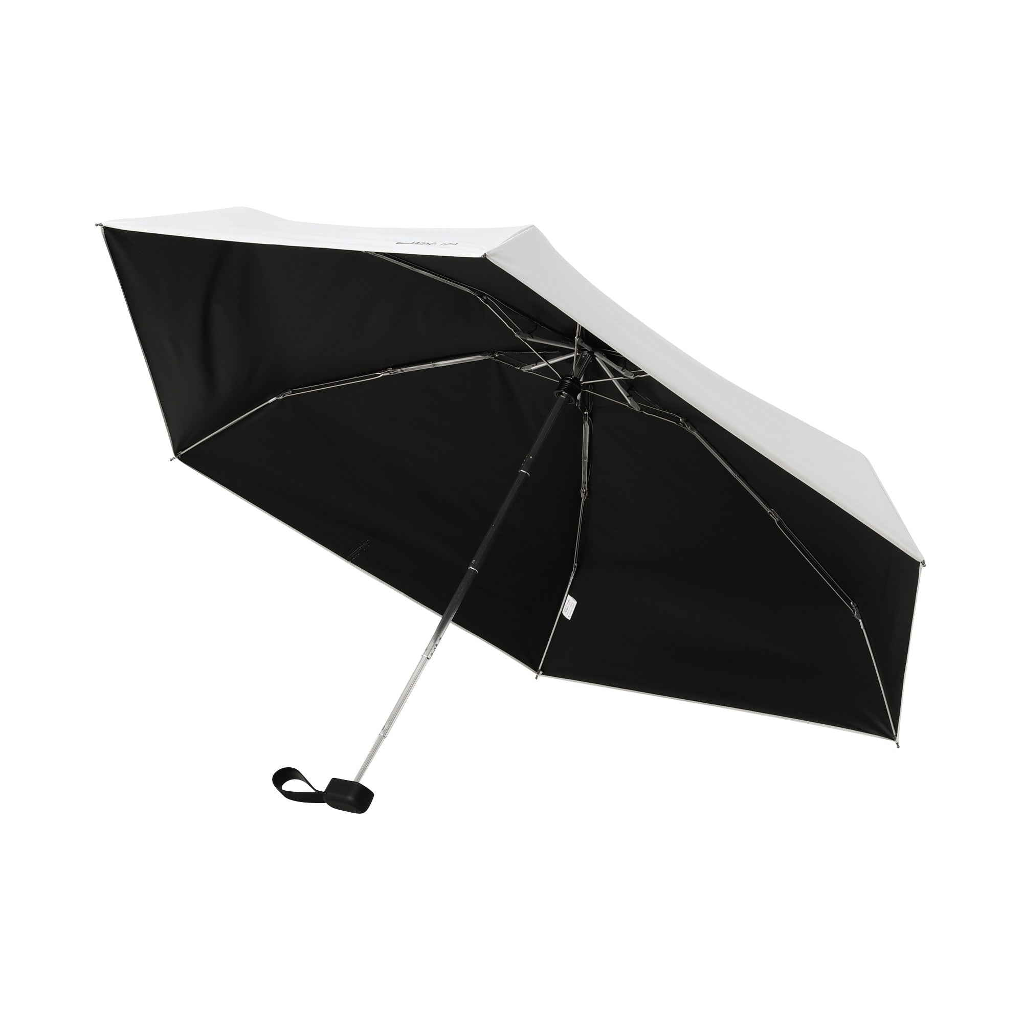 遮光率・UVカット率100%の完全遮光・完全UVカット折りたたみ式日傘です。 最高水準の遮光率・UVカット率でお肌を日差しからしっかり守ります。生地裏面にPUコーティングが施されているため遮熱性にも優れ、暑い季節の熱中症対策にも効果を発揮します。 最大の特徴は超撥水加工を施したハイスペックな生地。撥水度試験最高等級である5等級(JIS L 1092法)をクリアした超撥水加工で雨粒を玉のように転がして弾き、傘をたたむ時に手が濡れません。また、裏面に施した多層のポリウレタンコーティングにより10,000mmを越える耐水圧を記録(JIS L 1092 A法)、雨水の染み込みを防ぎます。急な大雨にも対応できる優れた撥水加工が長期的に持続して末永く愛用することができます。 開閉時にケガをしないよう手動で開ける手開き式を採用。コンパクトさを追及した5段骨タイプで手のひらサイズに折りたため、スクエアデザインなので手荷物のシルエットを崩さずスマートに収納できます。 コンパクトながら十分な直径を確保した設計で大き目のバッグなどもしっかりカバー。大人の男性にもぜひおすすめしたいアイテムです。