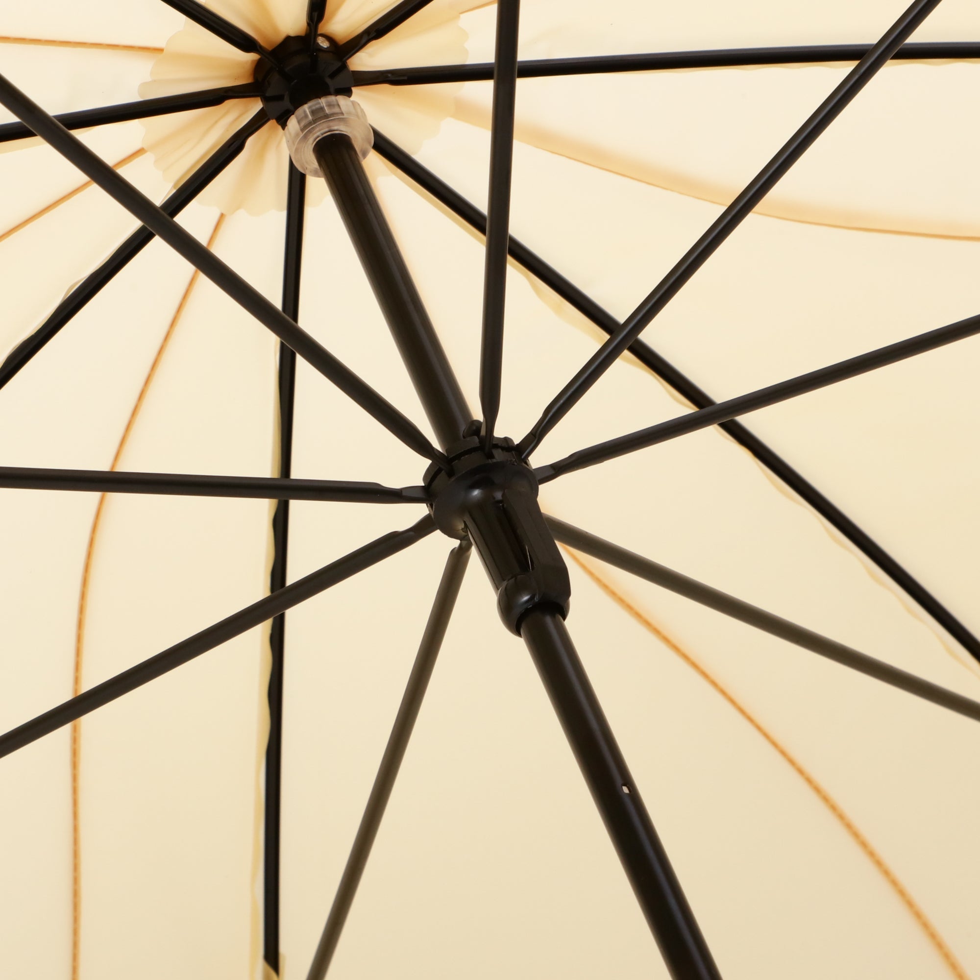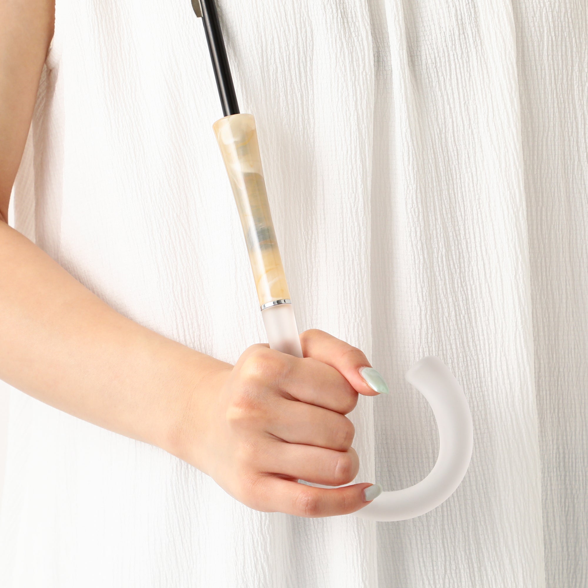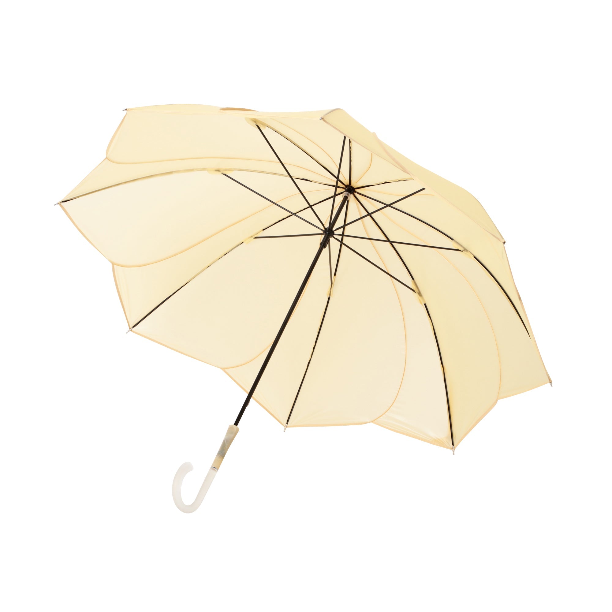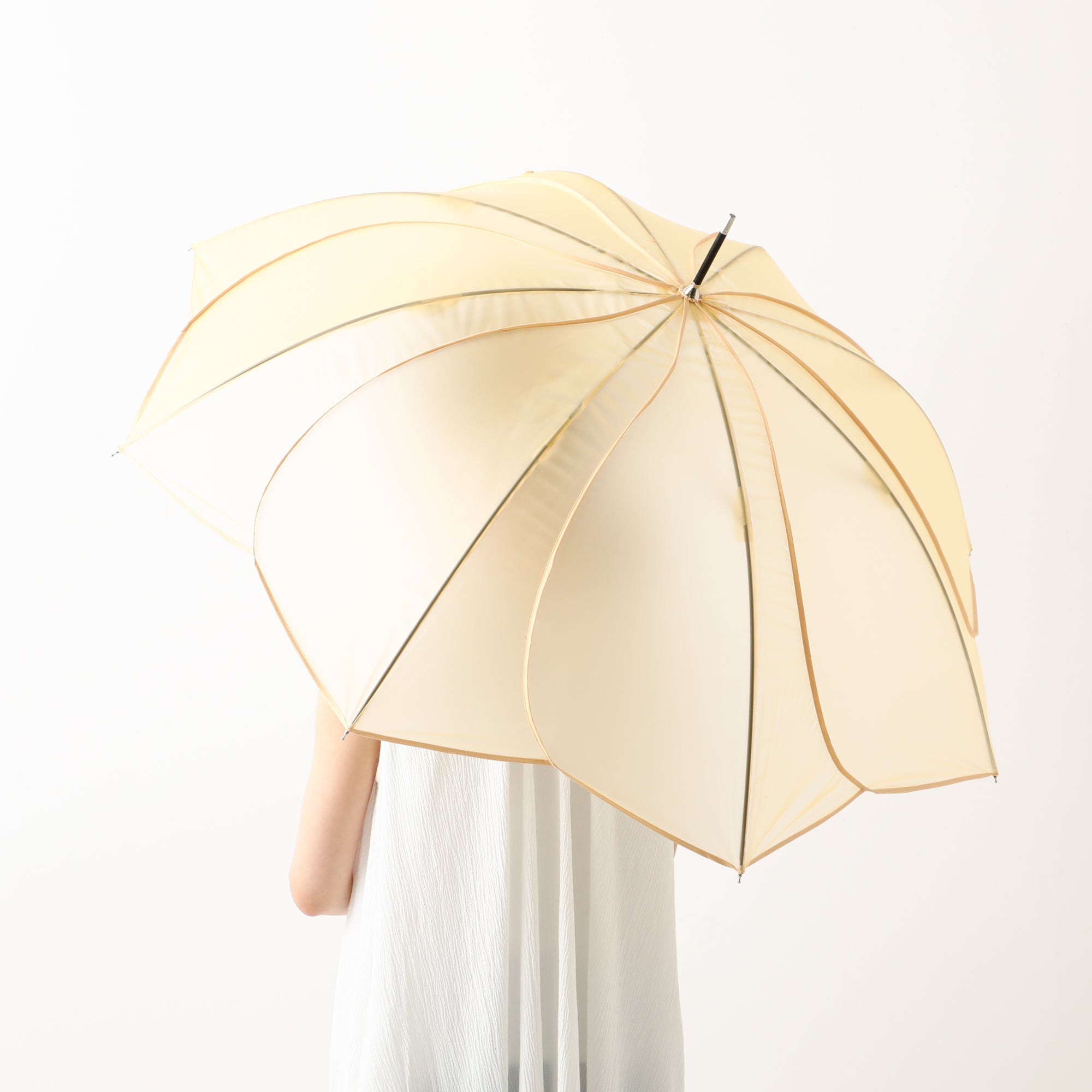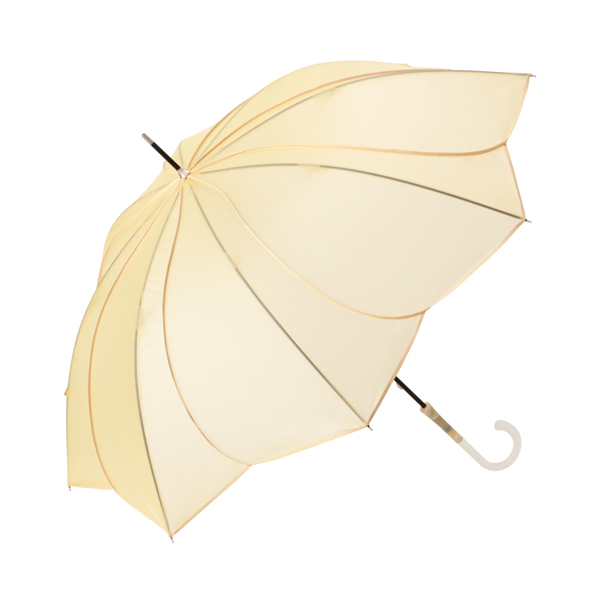 花びらの形がかわいらしいビニール傘です。 パステルカラーが華やかで雨の日も気分が上がります。 手元の樹脂の持ち手が高級感を演出します。