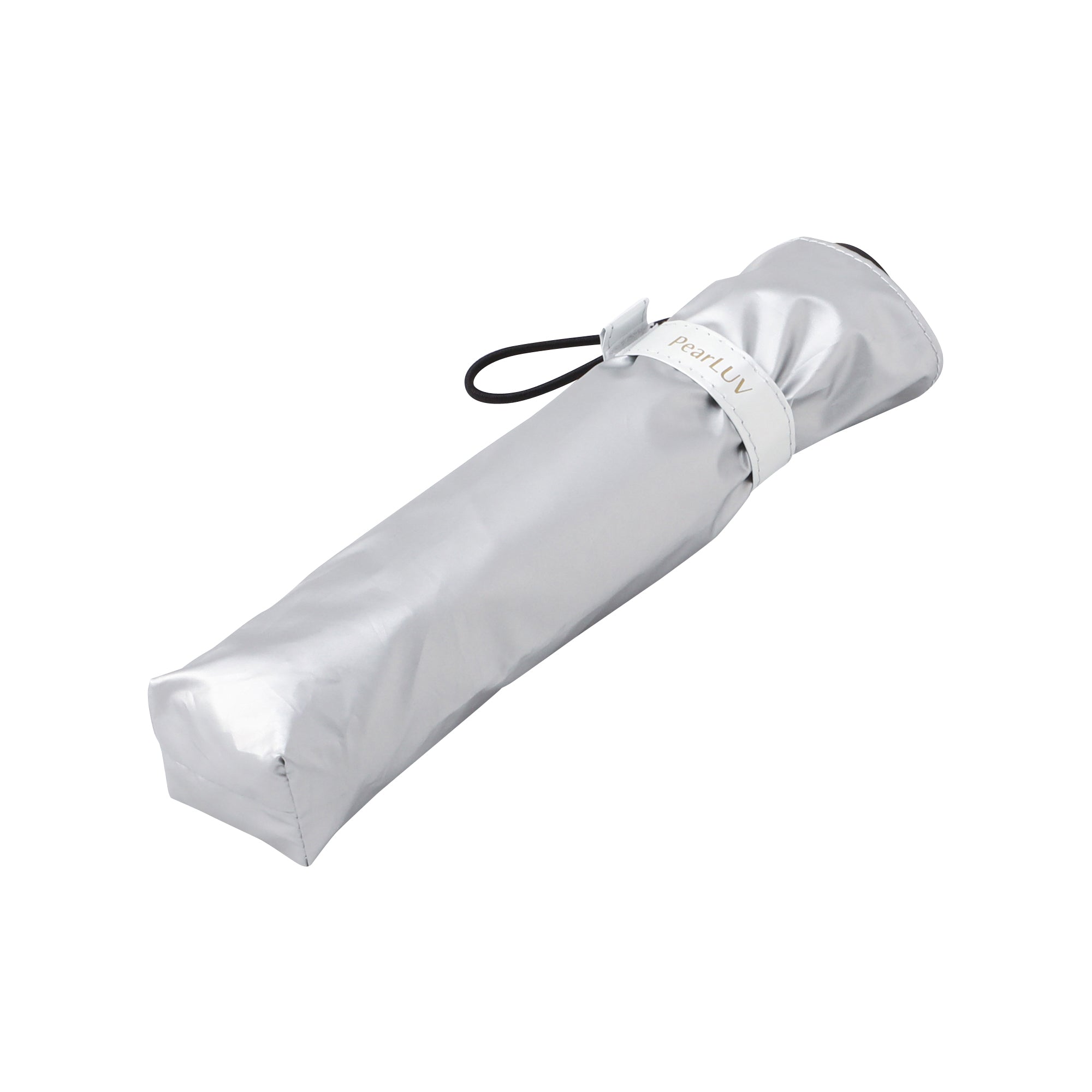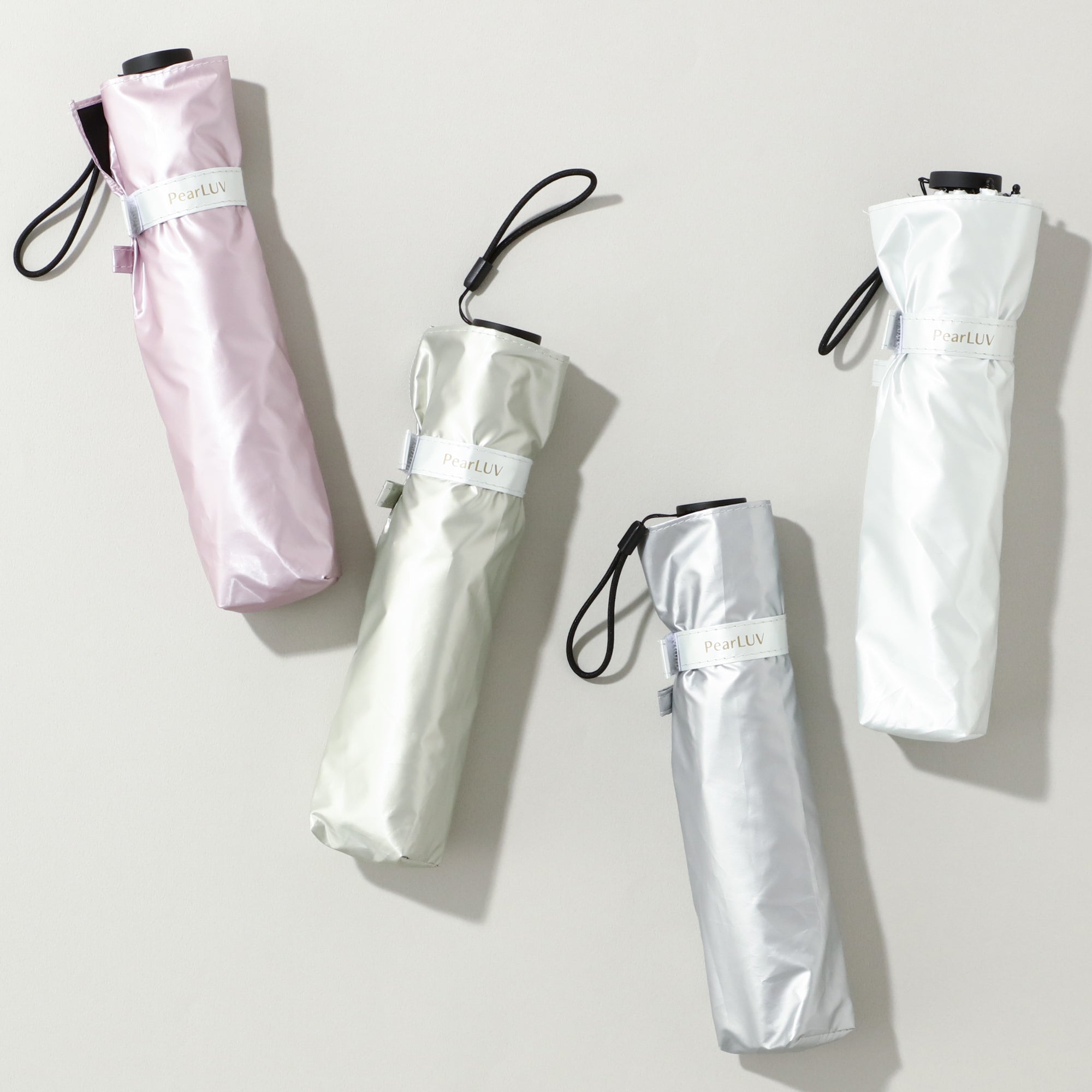 トレンドのパールカラーの折りたたみ傘です。 130gと軽量ながらUVカット率、遮光率ともに99.9%以上と機能性も抜群。 雨の日も晴れの日にも使えるので、お出かけの時に1本携帯しておくと便利です。