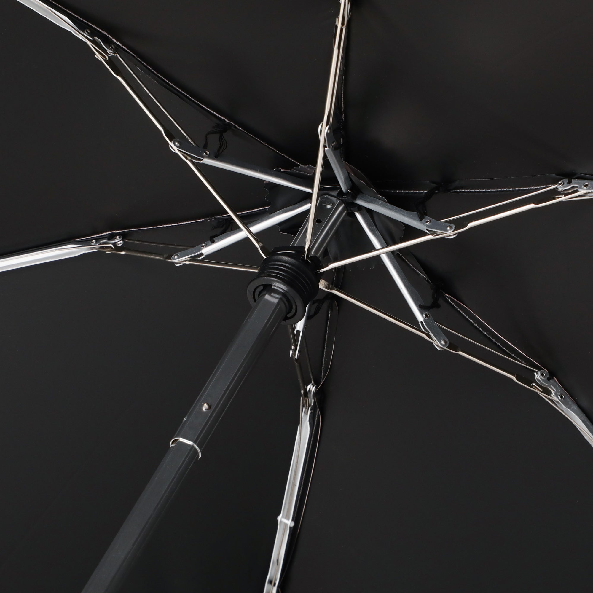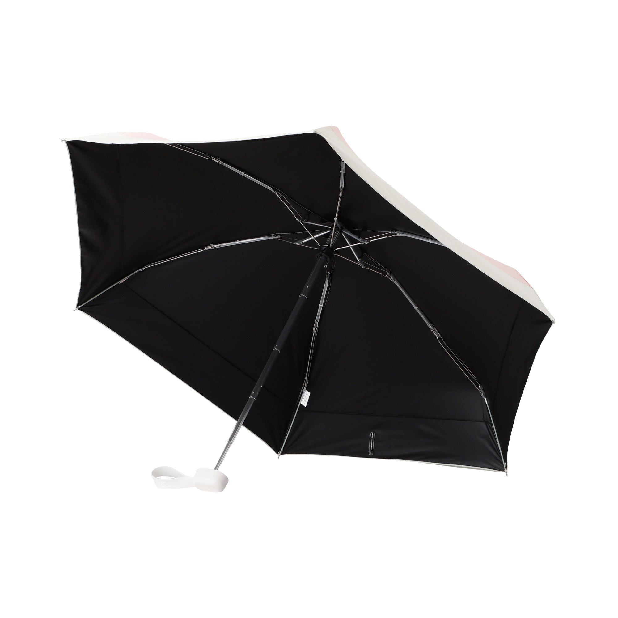 遮光率・UVカット率100%の完全遮光・完全UVカット折りたたみ式日傘です。 最高水準の遮光率・UVカット率でお肌を日差しからしっかり守ります。 生地裏面にPUコーティングが施されているため遮熱性にも優れ、暑い季節の熱中症対策にも効果を発揮。 はっ水防水加工を施しているので雨傘としても使用することができます。 開閉時にケガをしないよう手動で開ける手開き式を採用。コンパクトさを追及した5段骨ですがポキポキ折らずに簡単に開閉できます。 バッグのポケットにすっぽりと収まるスクエアデザインだから手荷物のシルエットを崩さずスマートに収納できます。ミニバッグでお出掛けの際にもおすすめです。 シリコンストラップのさりげないロゴがカジュアルなポイントです。