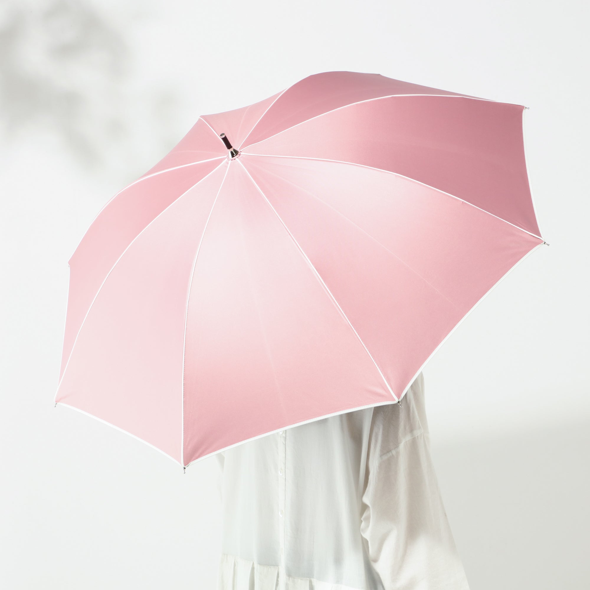 パイピングがかわいい長傘タイプの日傘です。 ファッションに合わせやすいカラーをバリエーション豊富に取り揃えました。 遮光率、UVカット率ともに99.9%以上で機能性も抜群。晴れた暑い日にも急な雨にも活躍してくれる1本です。