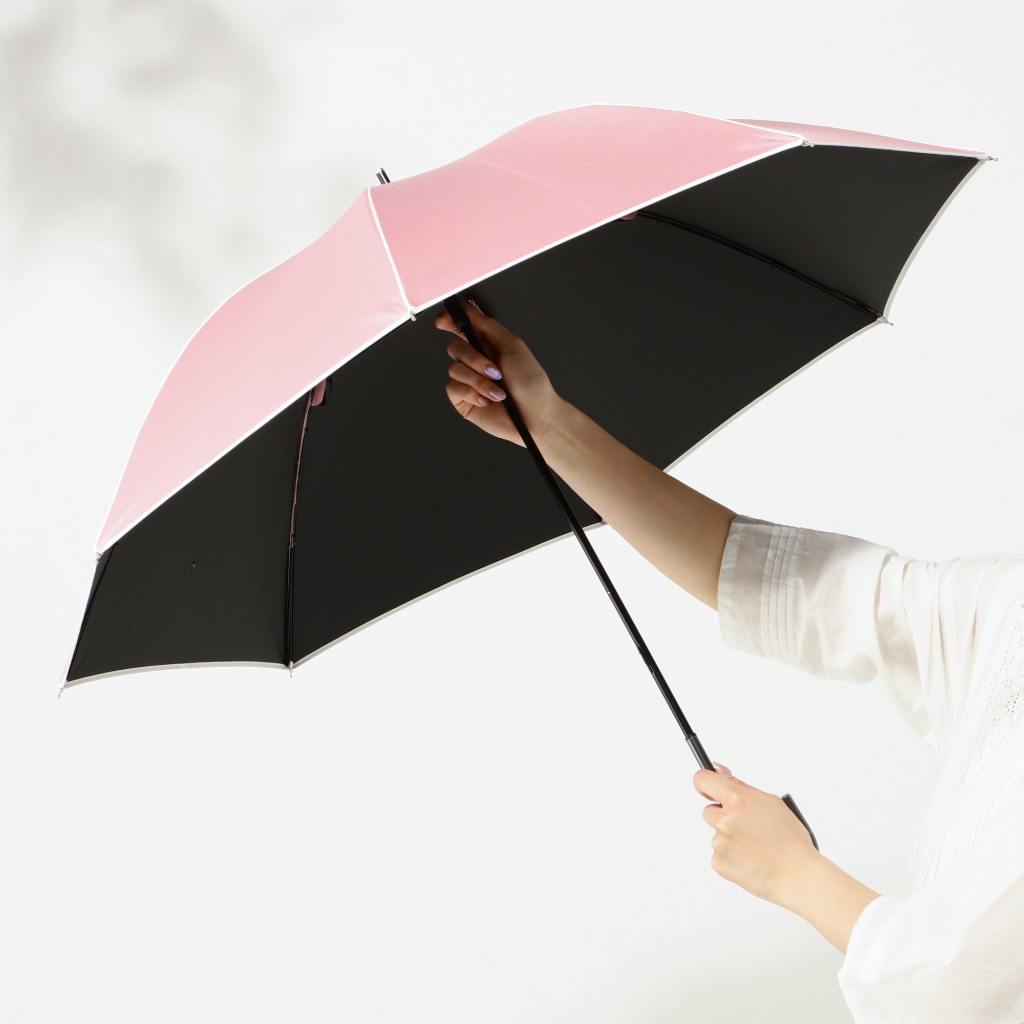 遮光パイピング 長傘 50cm ピンク(晴雨兼用)