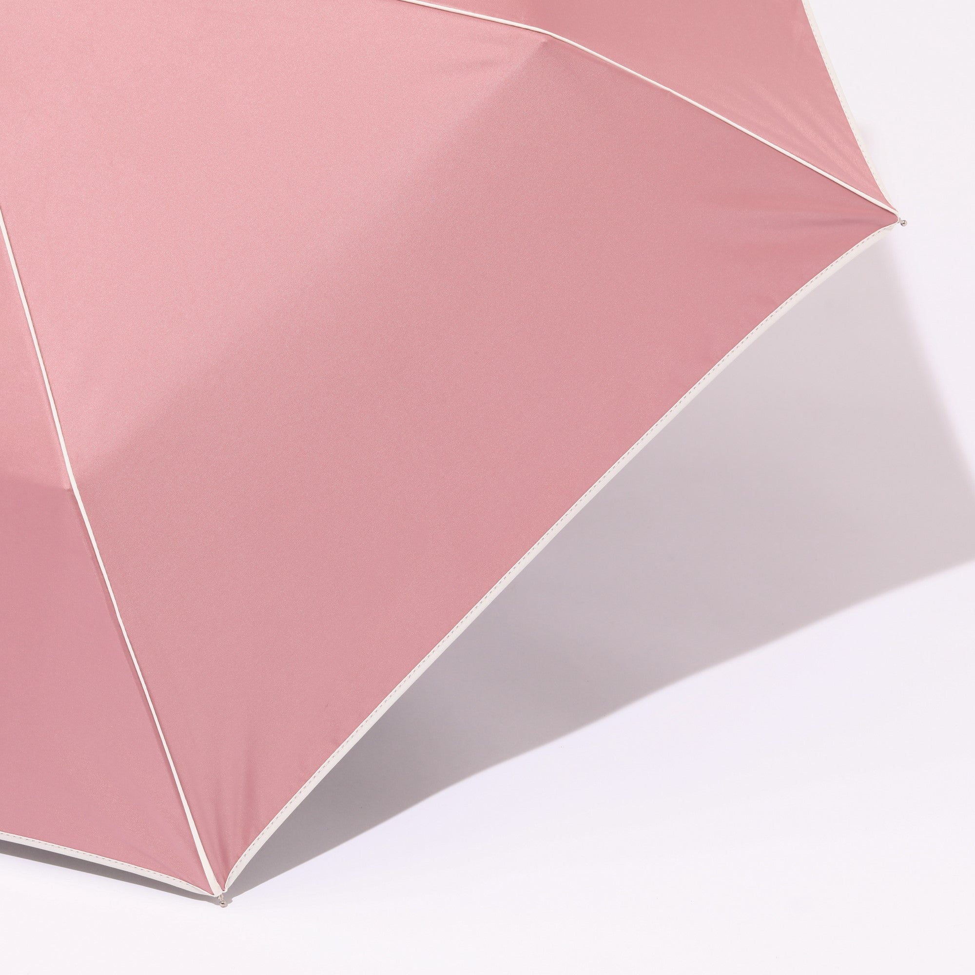 パイピングがかわいい折りたたみタイプの日傘です。 生地の裏面にポリウレタンコーティング加工を施し生地の目をしっかりと埋めているので遮光率・UVカット率ともに99.9%以上。機能性抜群で、晴れた暑い日にも急な雨にも活躍してくれる1本です。
