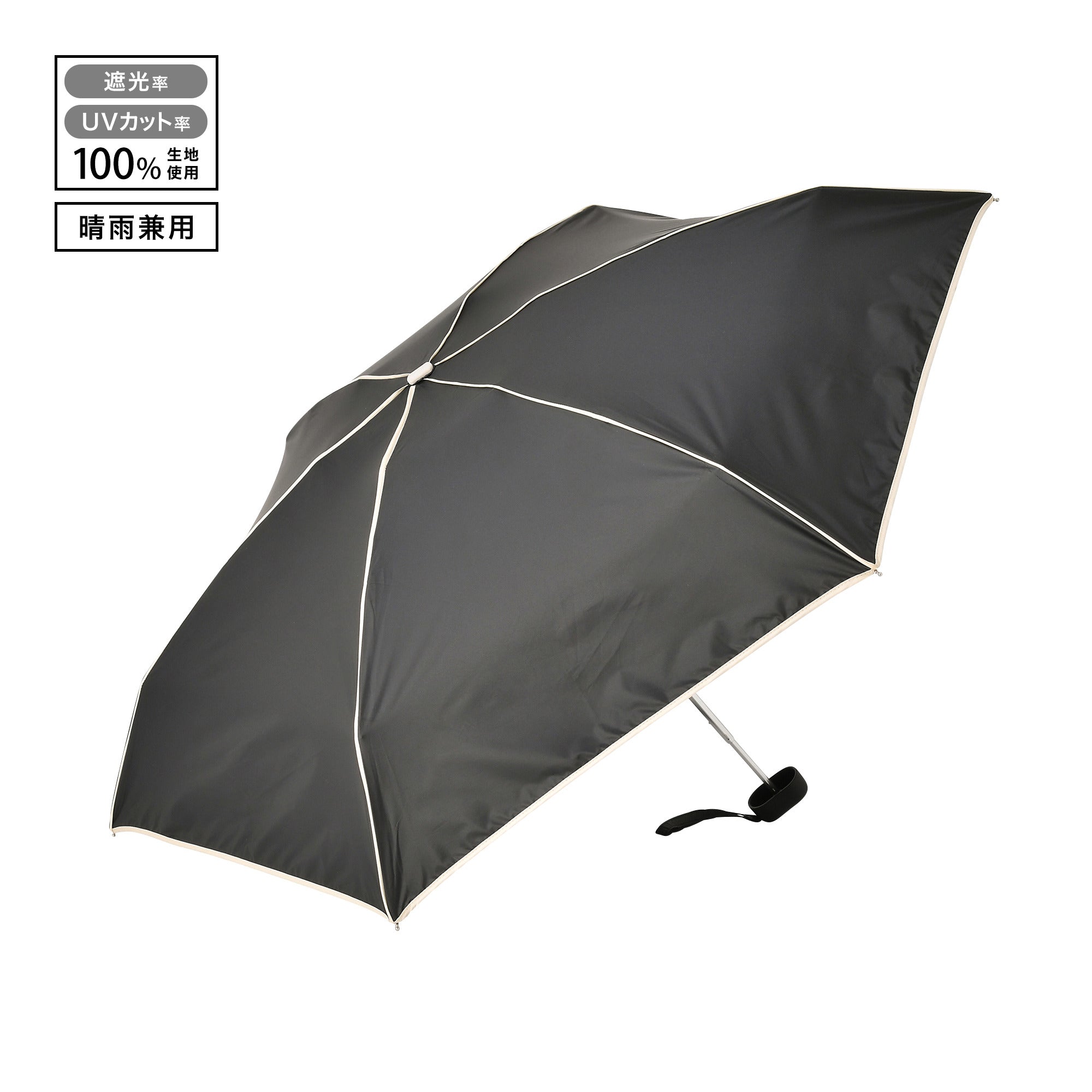 遮光 コンパクト パイピング 折りたたみ傘 47cm ブラック(晴雨兼用)