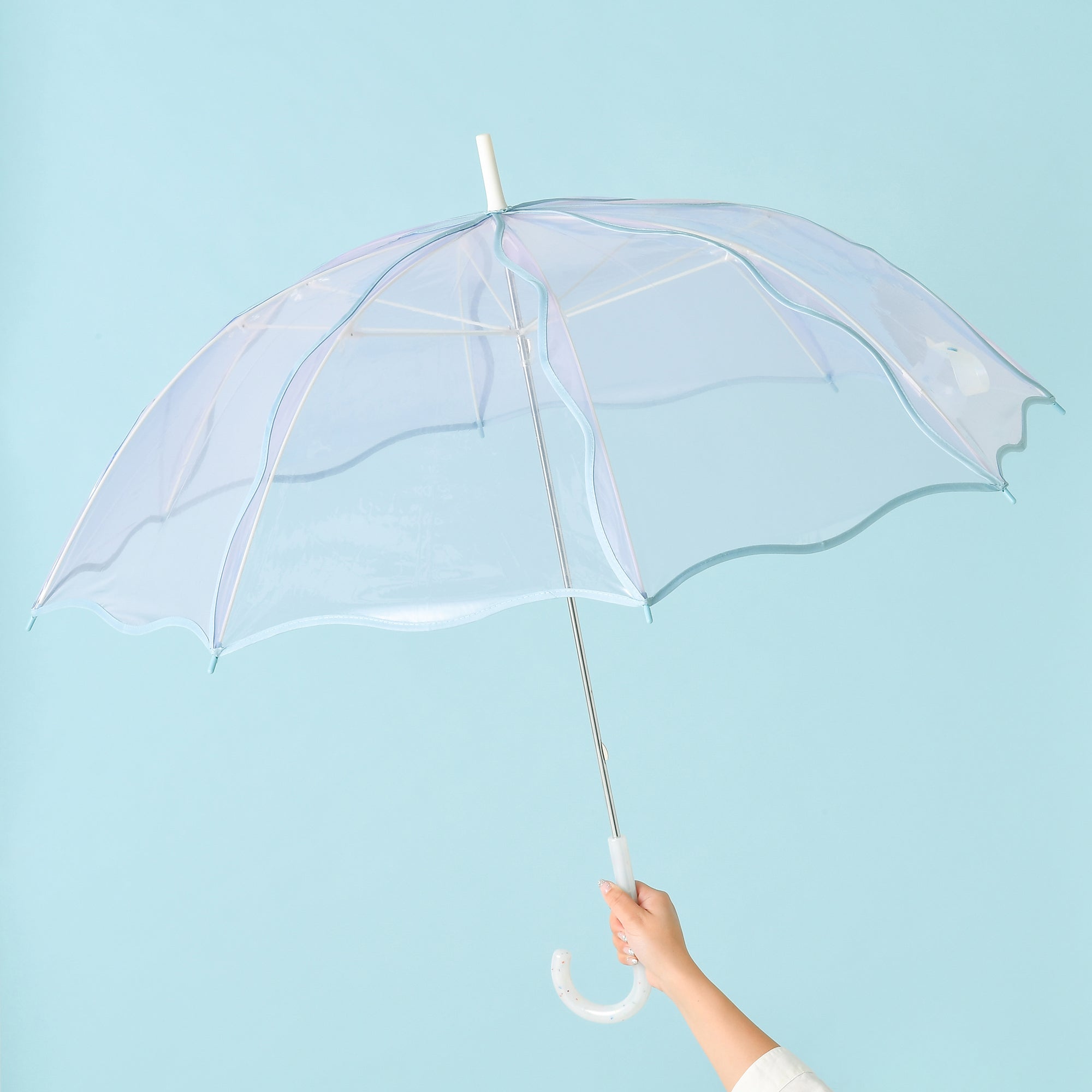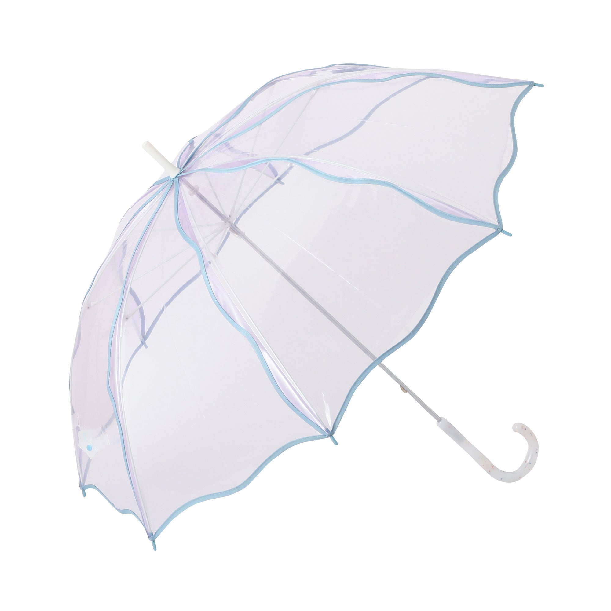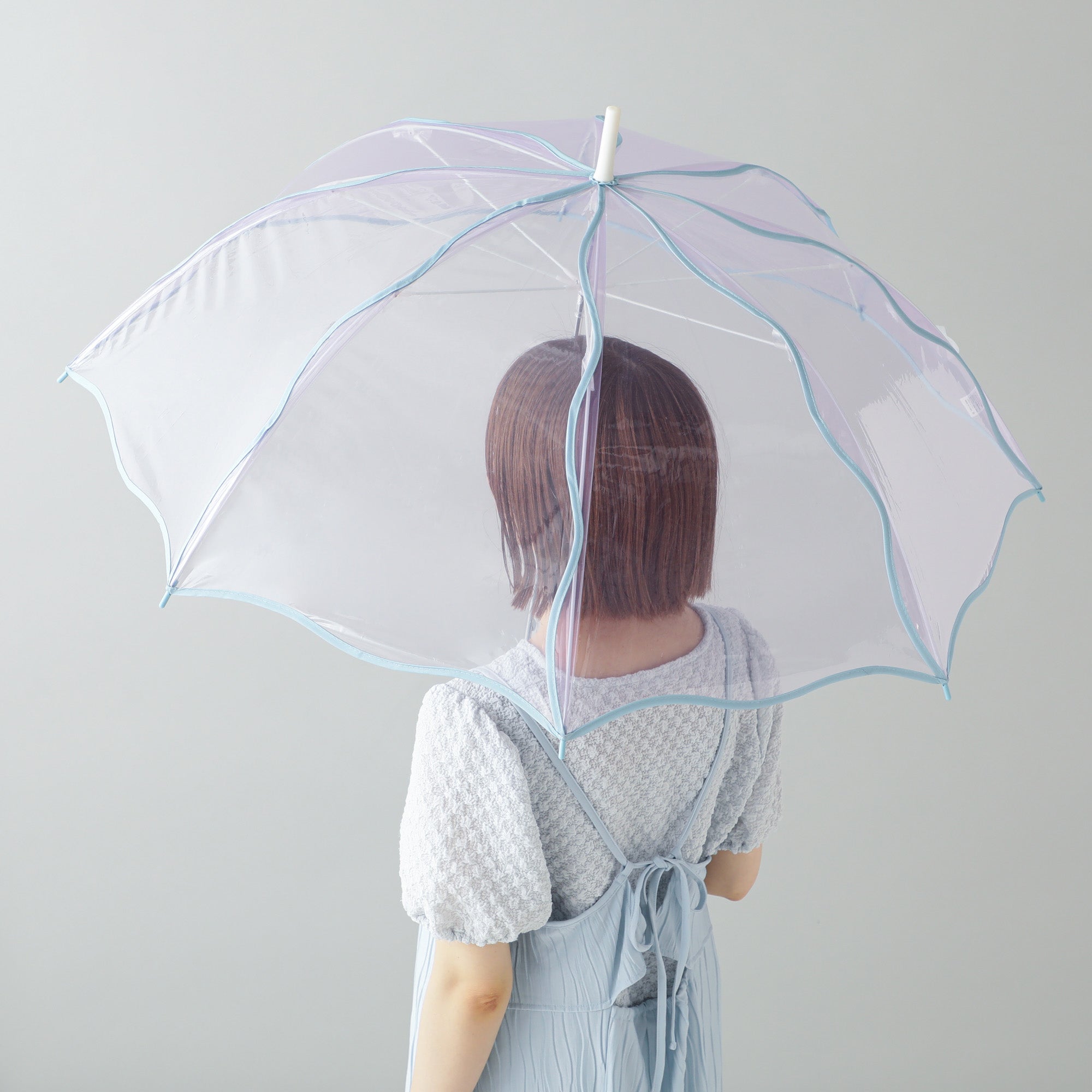 ウェーブ状のパイピングが可愛らしいビニール傘です。うねうねしたトレンドライクな形状と持ち手の遊び心のあるデザインが雨の日でも楽しく過ごせます。