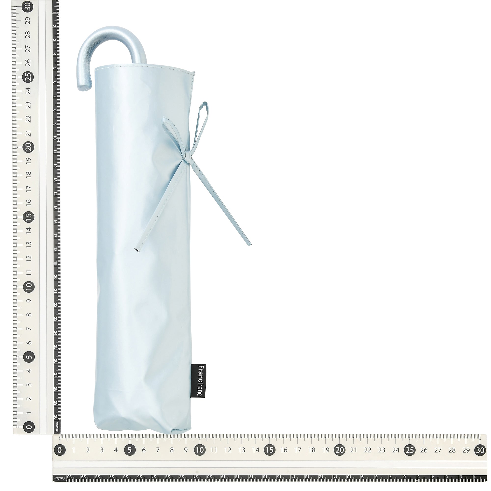 甘めながらも上品、かつバレリーナのように可憐な印象の遮光機能付き晴雨兼用の折りたたみ傘です。大人可愛い細目リボンとメタリック素材がポイントです。遮光率・UVカット率100%の生地を使用し、裏面は黒を採用しているため、夏の日差しが強い日でも眩しくなく快適に過ごせます。急に雨が降ってきてもこの1本で安心です。※傘の遮光率・UVカット率・UPF値は生地の状態での測定値です。傘本体の性能を示す数値ではございません。また、生地に施された刺繍・縫製などのUV加工生地以外の部分もこの限りではございません。