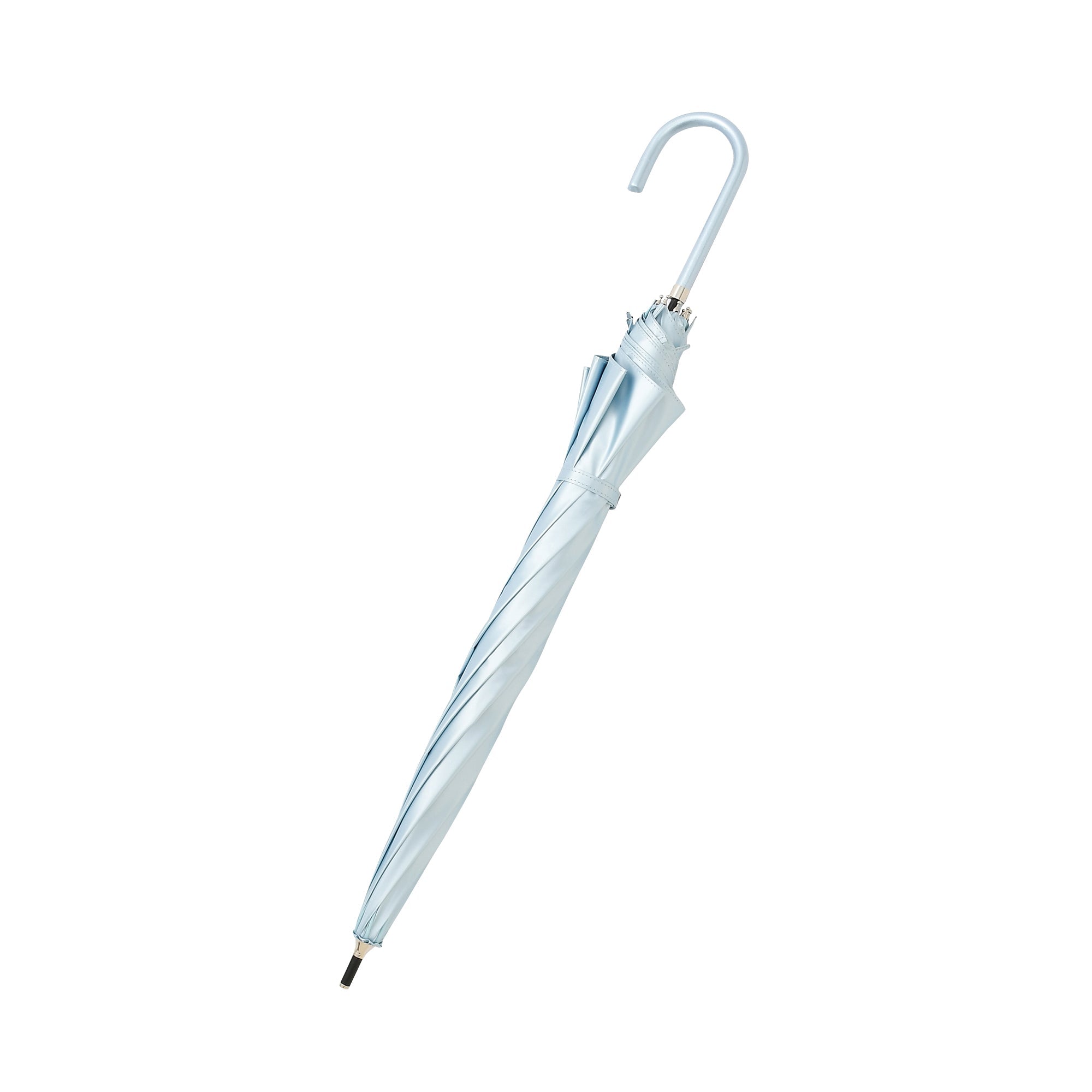 甘めながらも上品、かつバレリーナのように可憐な印象の遮光機能付き晴雨兼用の長傘です。大人可愛い細目リボンとメタリック素材がポイントです。遮光率・UVカット率100%の生地を使用し、裏面は黒を採用しているため、夏の日差しが強い日でも眩しくなく快適に過ごせます。急に雨が降ってきてもこの1本で安心です。※傘の遮光率・UVカット率・UPF値は生地の状態での測定値です。傘本体の性能を示す数値ではございません。また、生地に施された刺繍・縫製などのUV加工生地以外の部分もこの限りではございません。