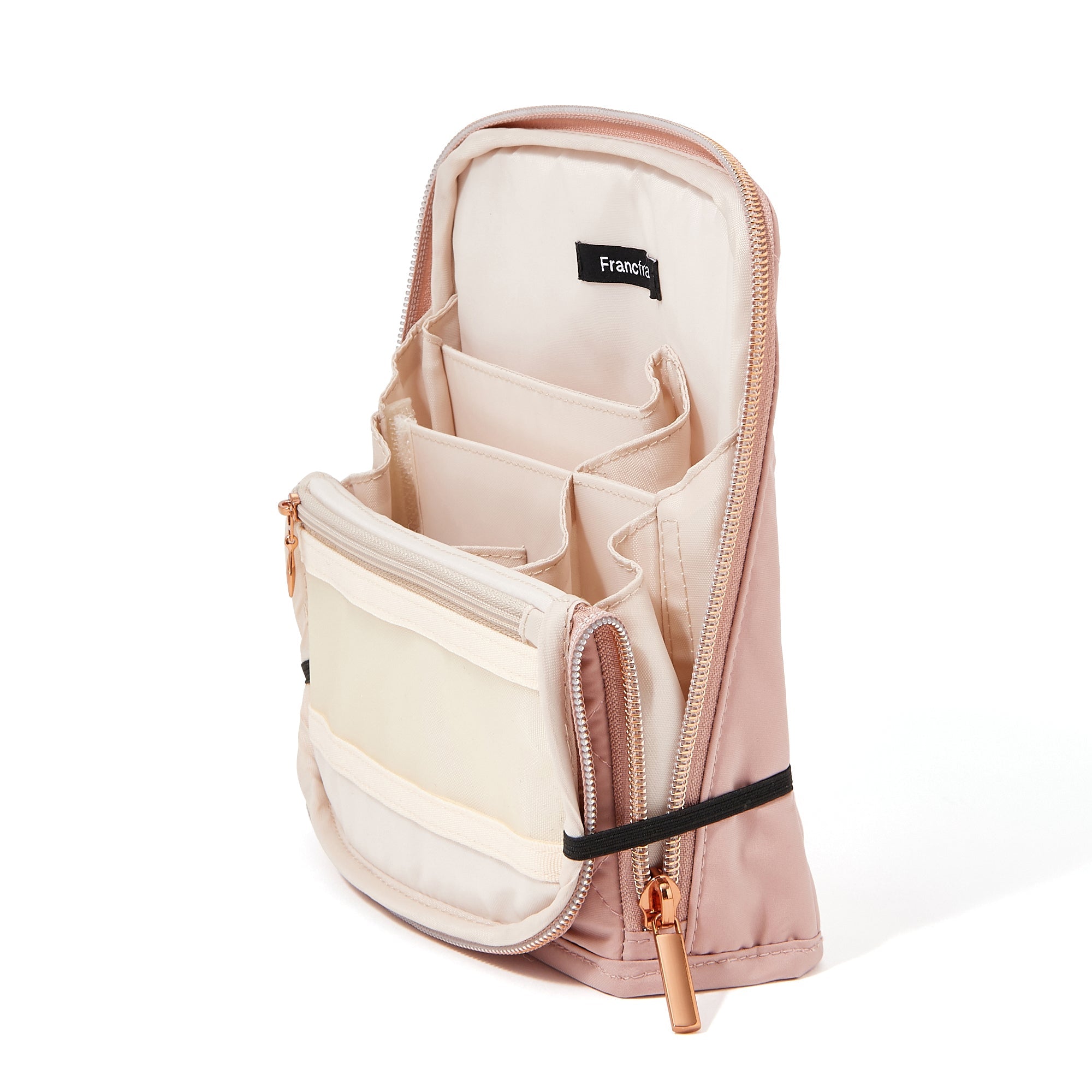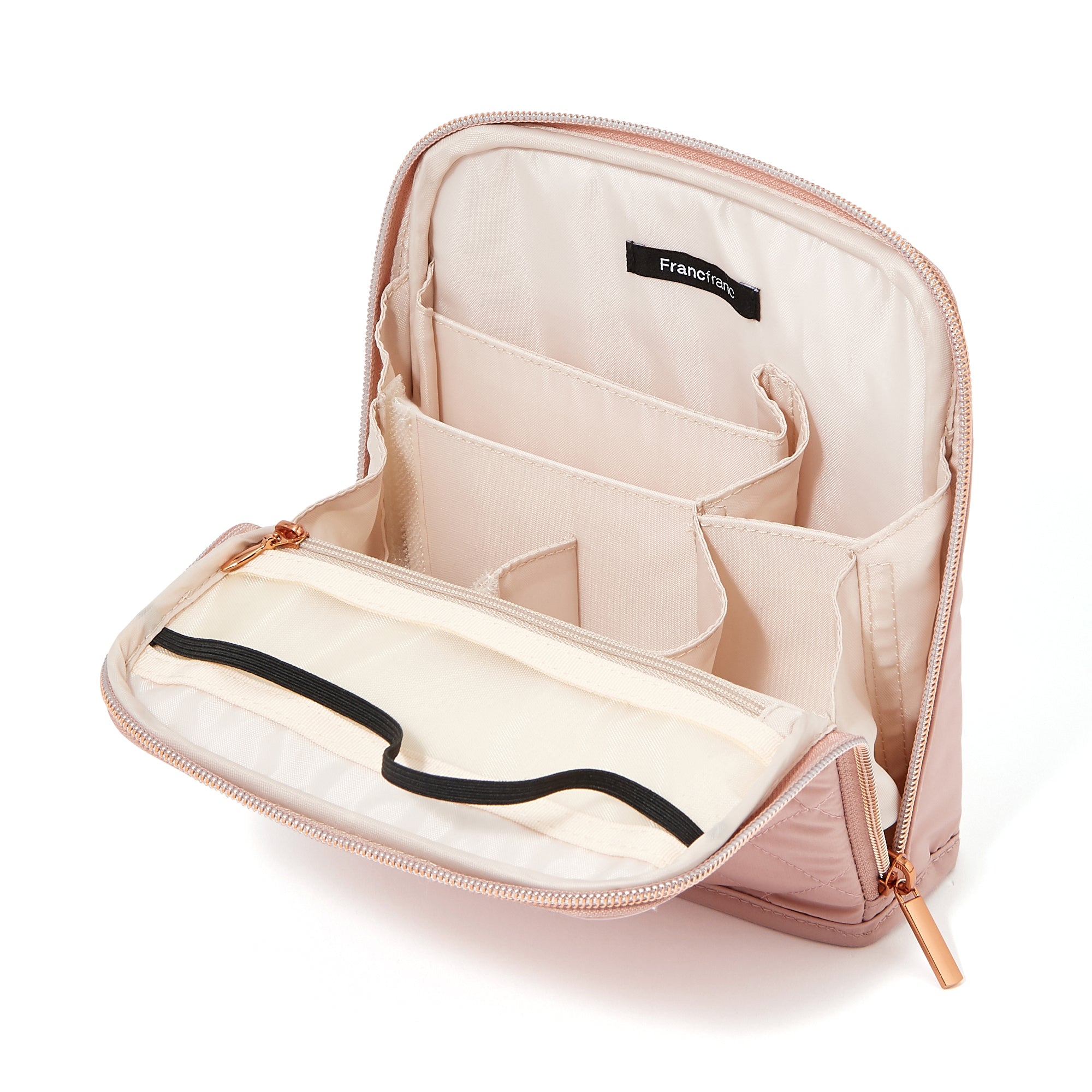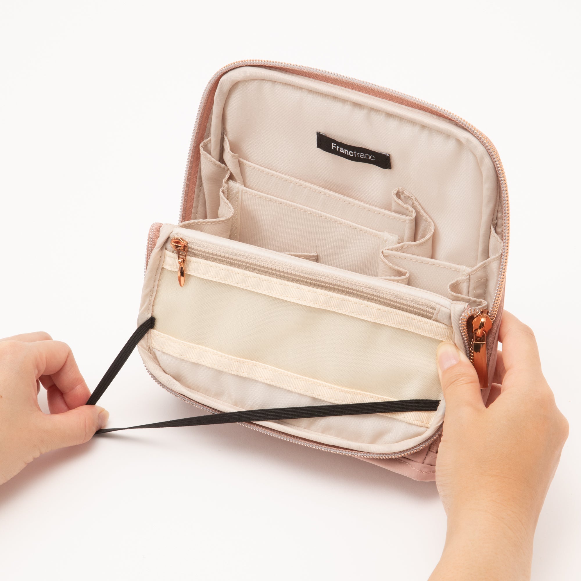 テレワーク生活に便利なツールペンスタンドポーチです。 文房具などをたっぷり収納して持ち歩けるポーチは、フタを開いてゴムで留めるとツールスタンドに早変わり。 可動式の仕切りで自分仕様にカスタマイズもできます。 そのままお部屋に置いておいてもインテリアになじむナチュラルなデザイン。 綿が入ったキルティング素材が大切なアイテムをしっかり守ります。 仕事に必要な道具をまとめて収納できるから、オフィス勤務の日はこのままバッグインバッグとして通勤バッグに入れて持ち出してもOK。 テレワーク生活をより快適にしてくれるシリーズです。