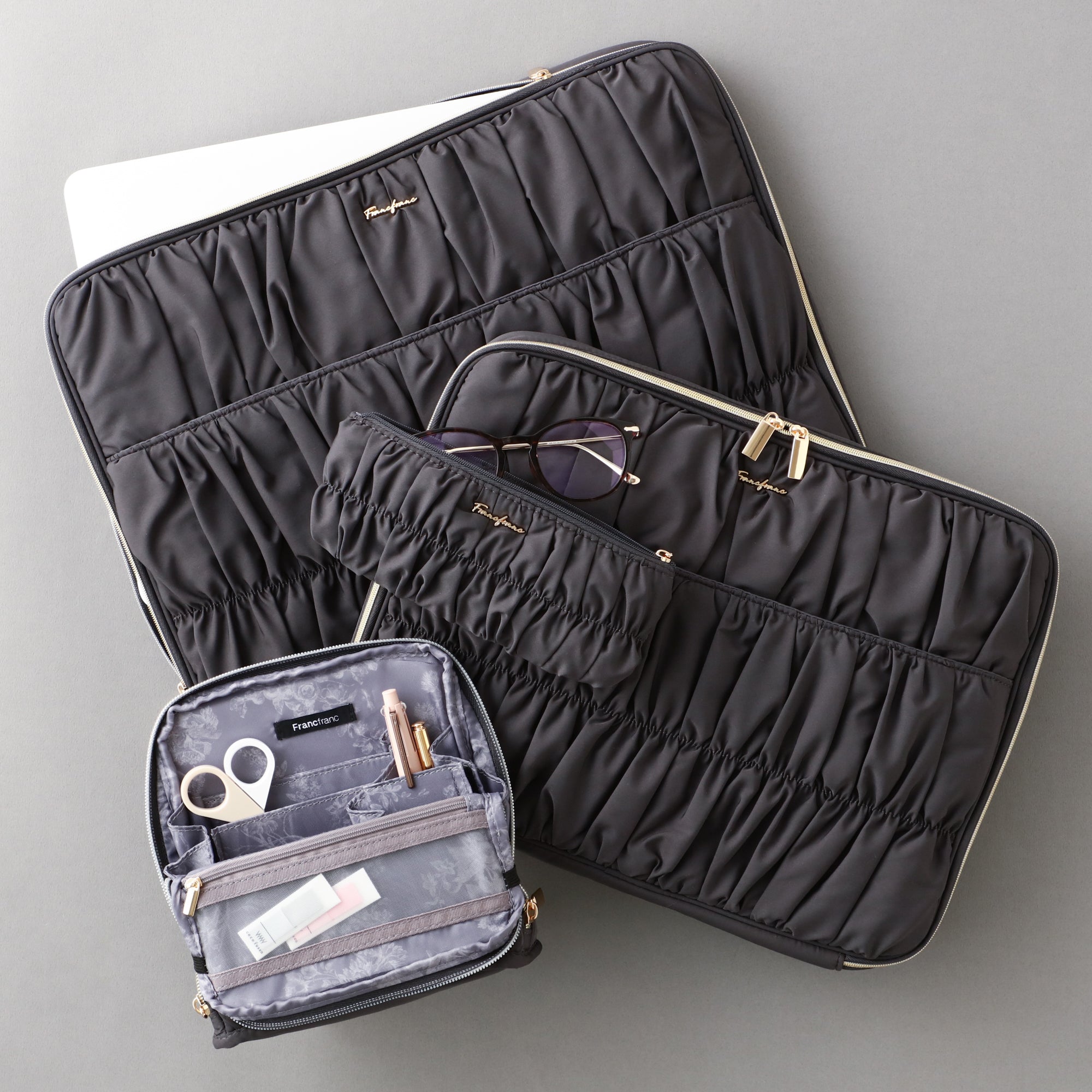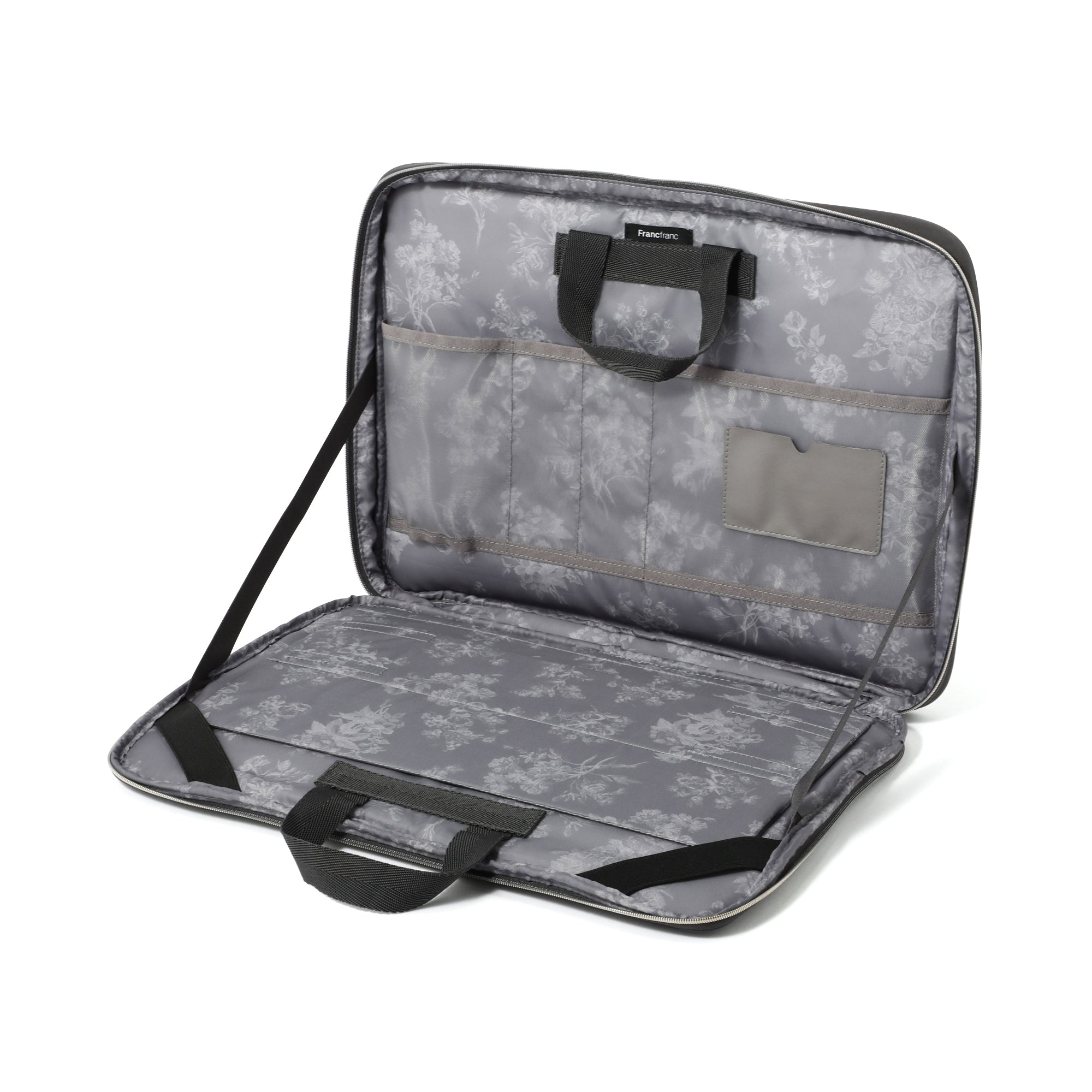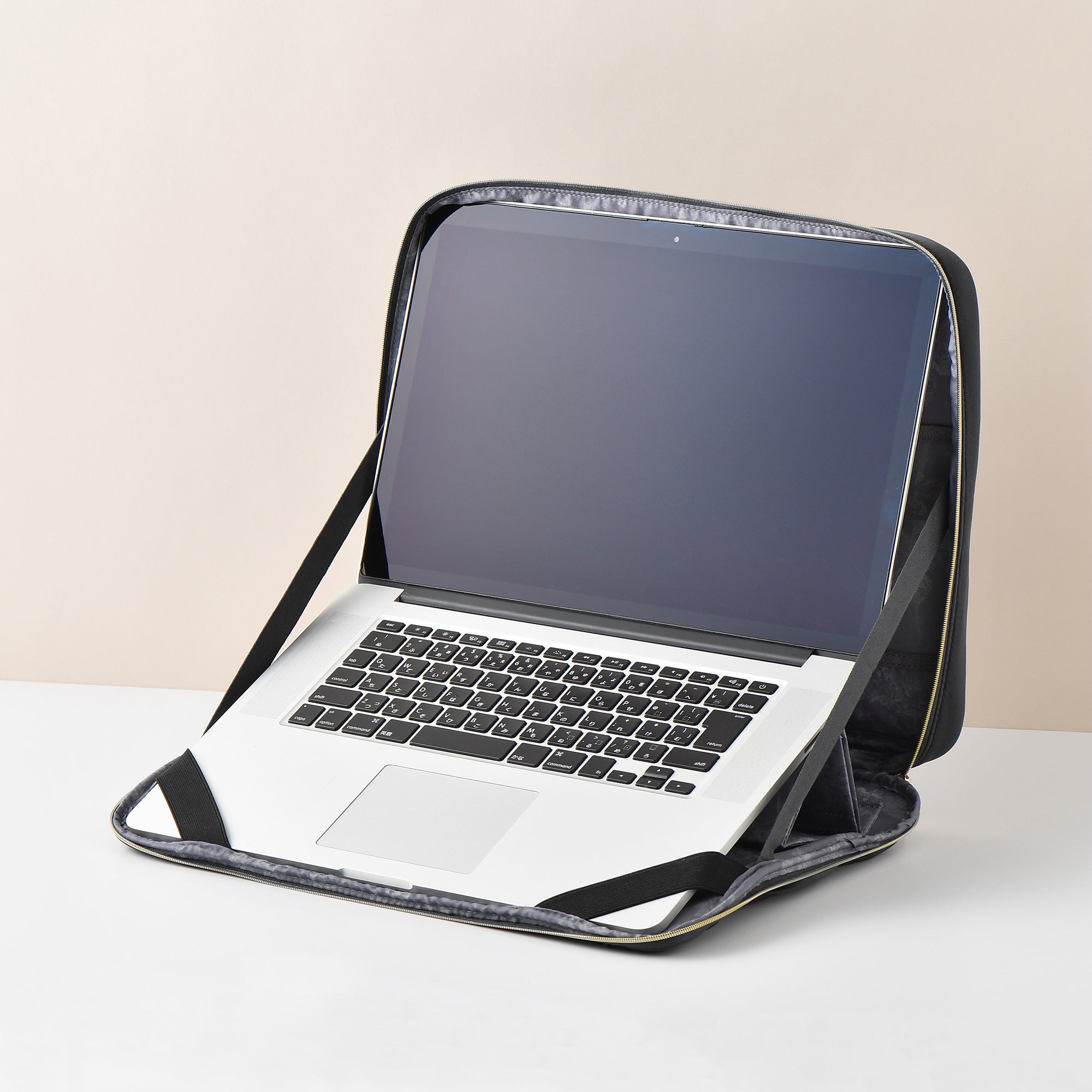 テレワーク生活に便利なPCケースです。 15~16インチPC対応。内側にPCスタンドが付いているのでノートパソコンを斜めに立て掛けて使用できます。収納ポケット付きでツールスタンドとしても活躍します。 そのままお部屋に置いておいてもインテリアになじむナチュラルなデザイン。 オフィス勤務の日はこのままバッグインバッグとして通勤バッグに入れて持ち出してもOK。テレワーク生活をより快適にしてくれるシリーズです。 ※撥水加工つき
