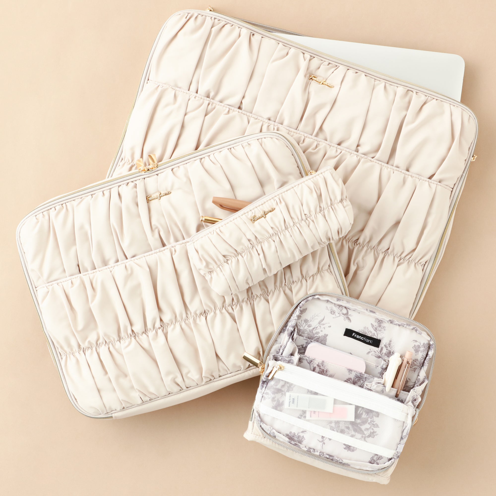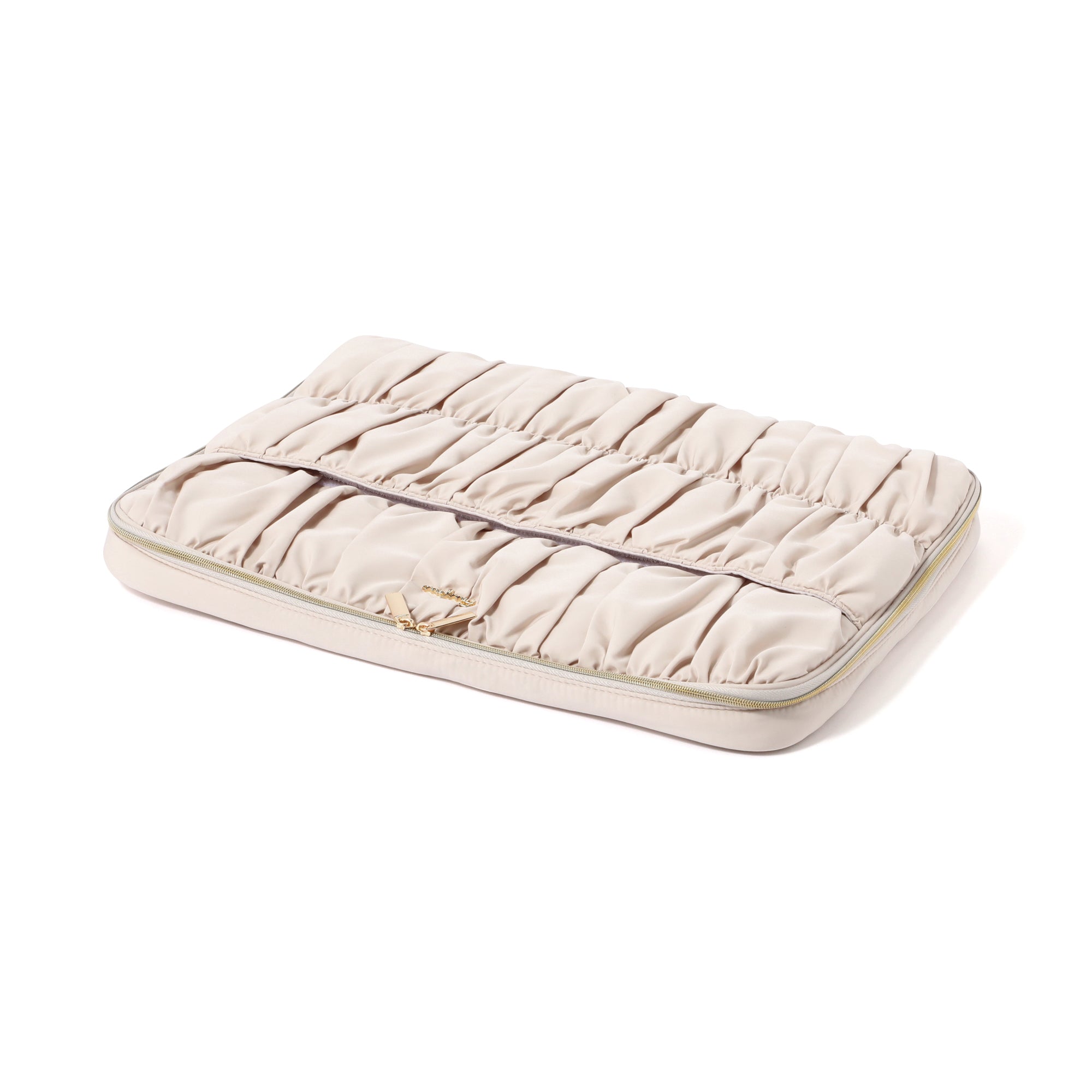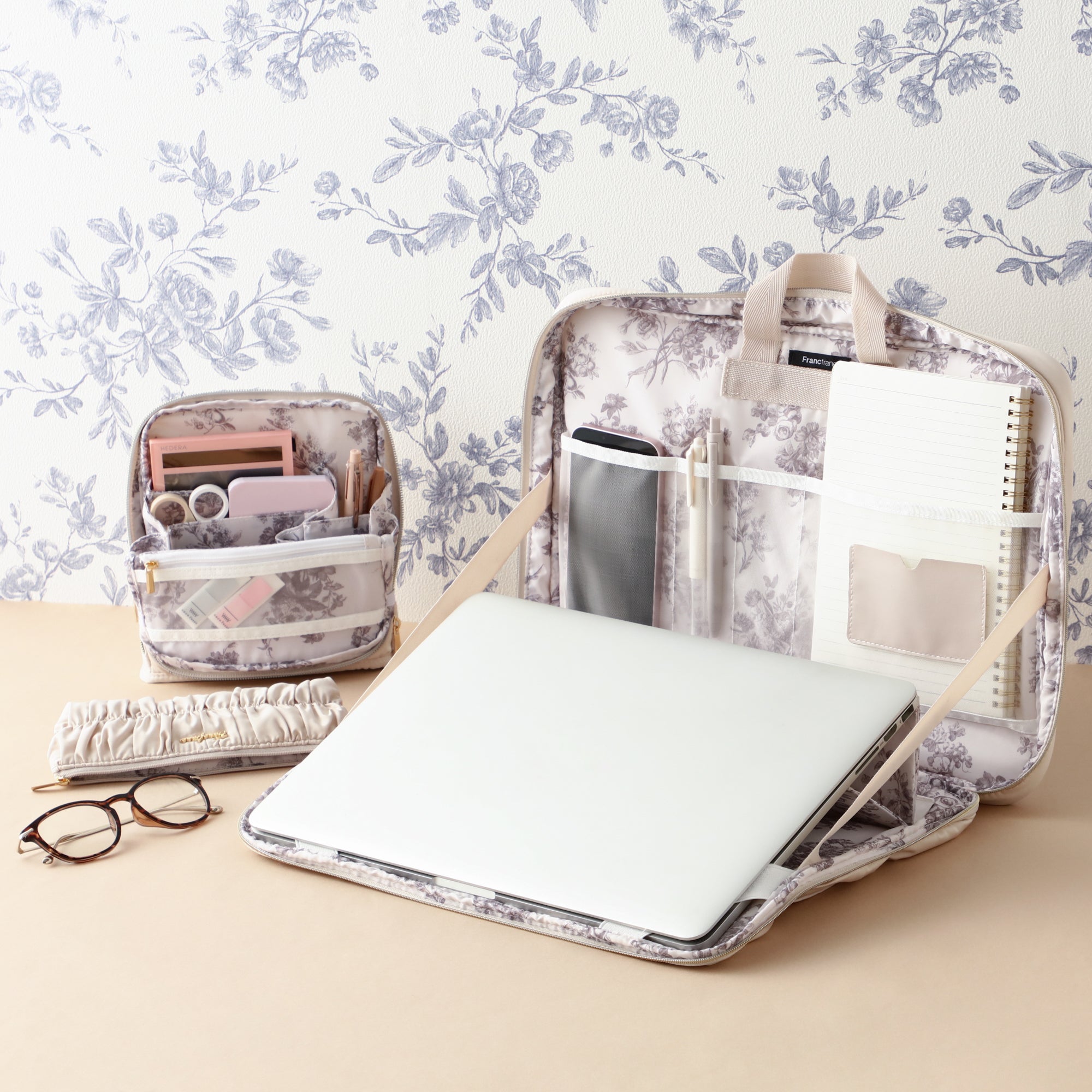テレワーク生活に便利なPCケースです。 15~16インチPC対応。内側にPCスタンドが付いているのでノートパソコンを斜めに立て掛けて使用できます。収納ポケット付きでツールスタンドとしても活躍します。 そのままお部屋に置いておいてもインテリアになじむナチュラルなデザイン。 オフィス勤務の日はこのままバッグインバッグとして通勤バッグに入れて持ち出してもOK。テレワーク生活をより快適にしてくれるシリーズです。 ※撥水加工つき