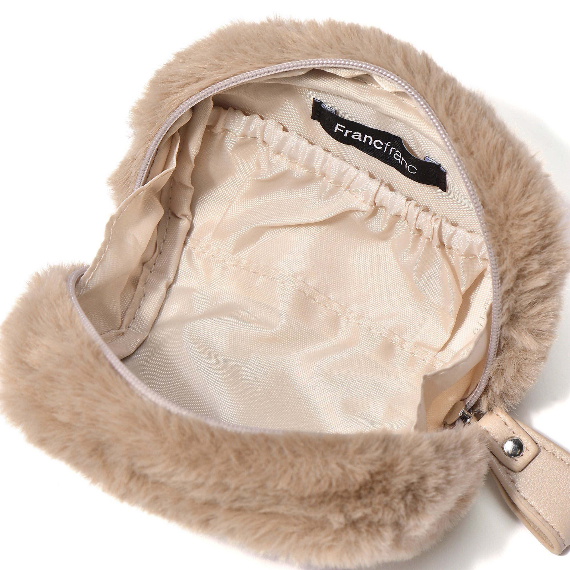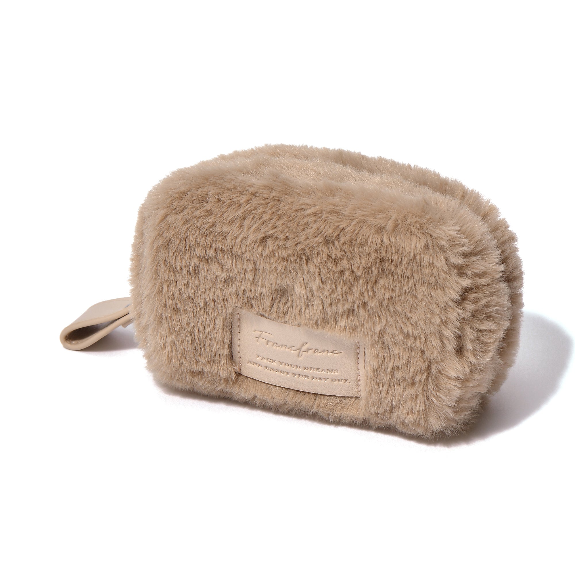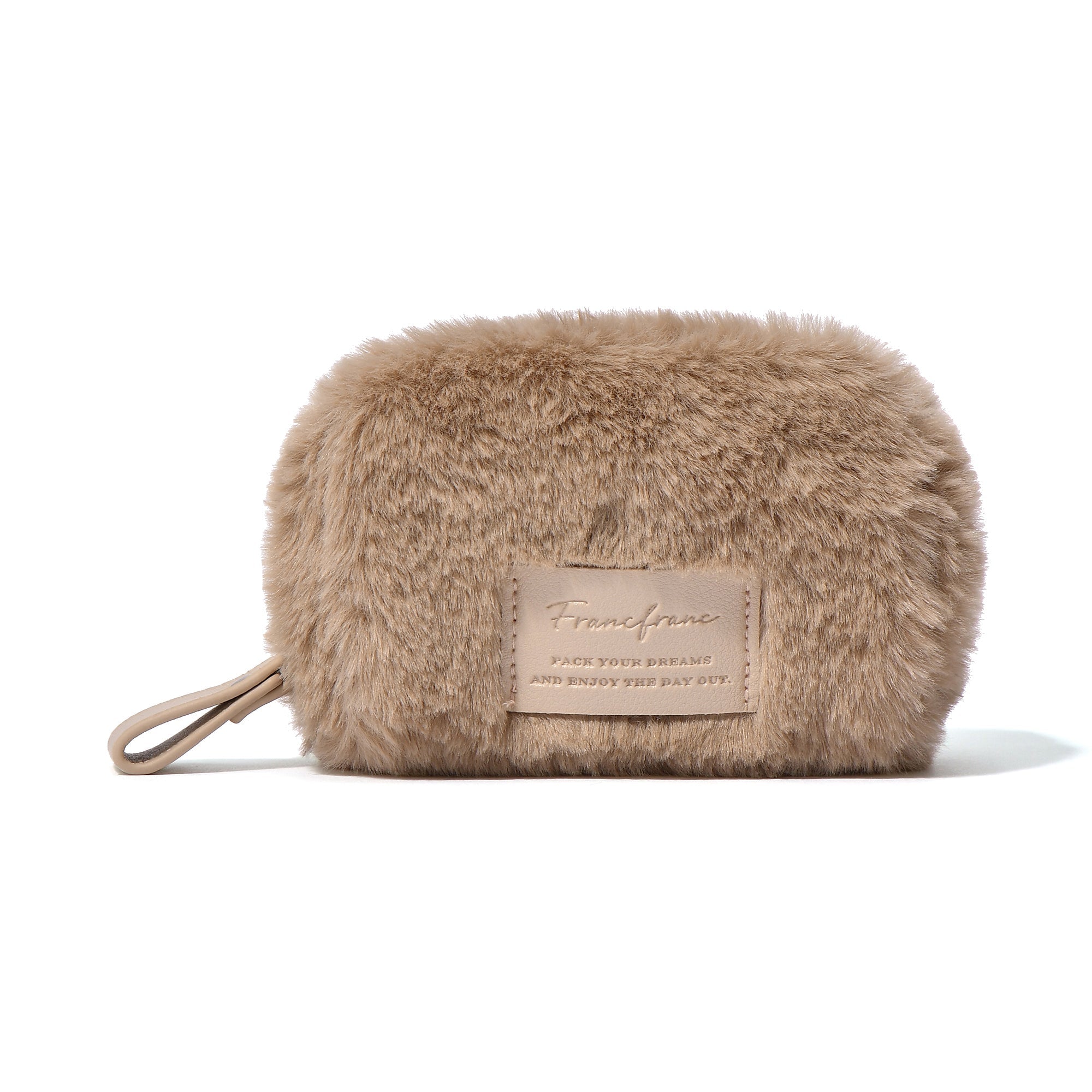 トレンド感たっぷりなデザインのポーチです。普段使いしやすいカラーをファー生地で上品に表現しました。Francfrancのロゴ入りタグがアクセントに。季節やトレンドに合わせて気軽に取り入れやすいアイテムなので是非お楽しみください。