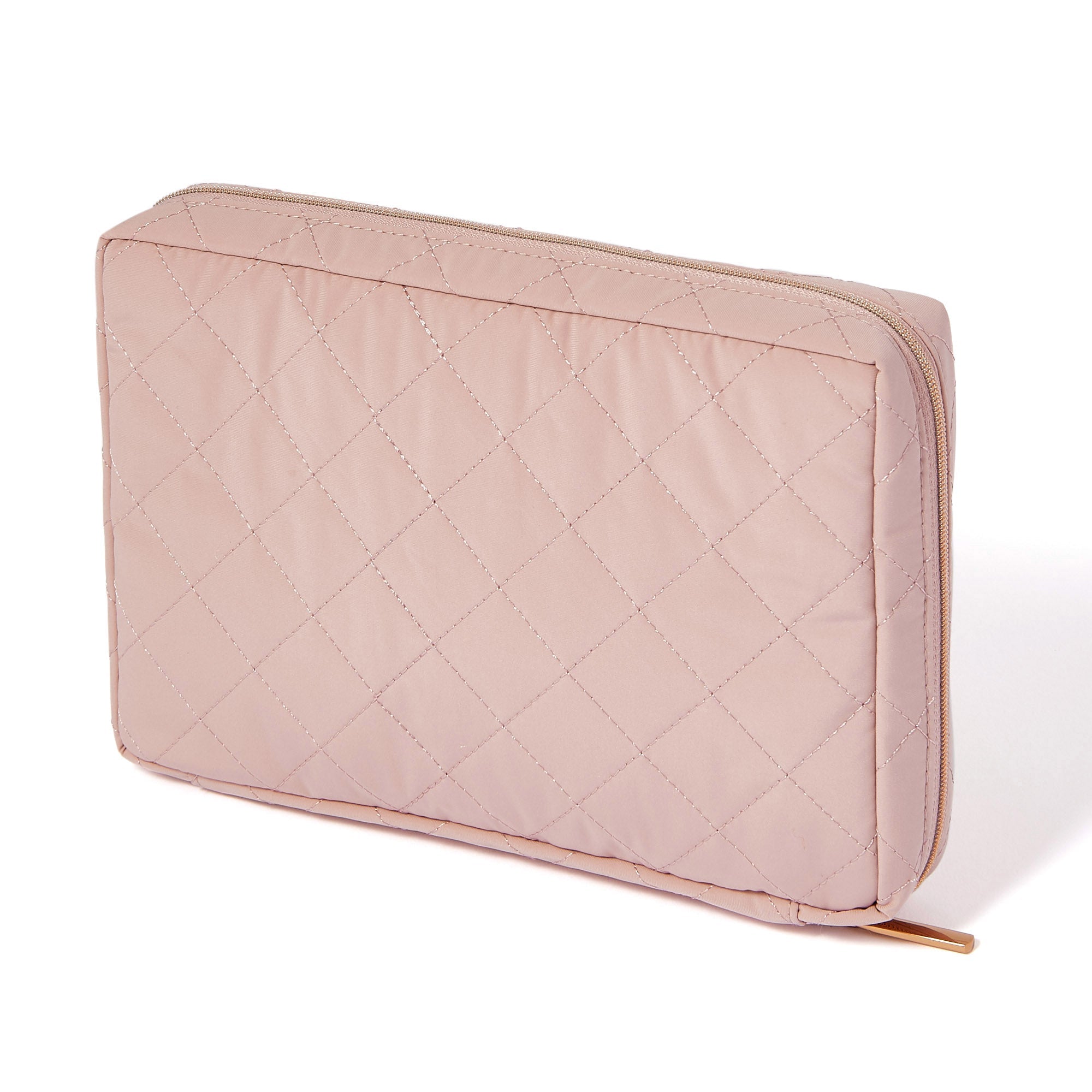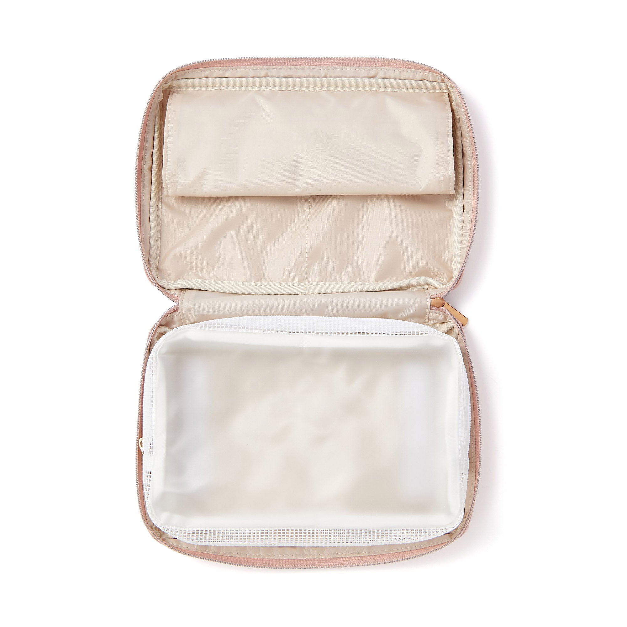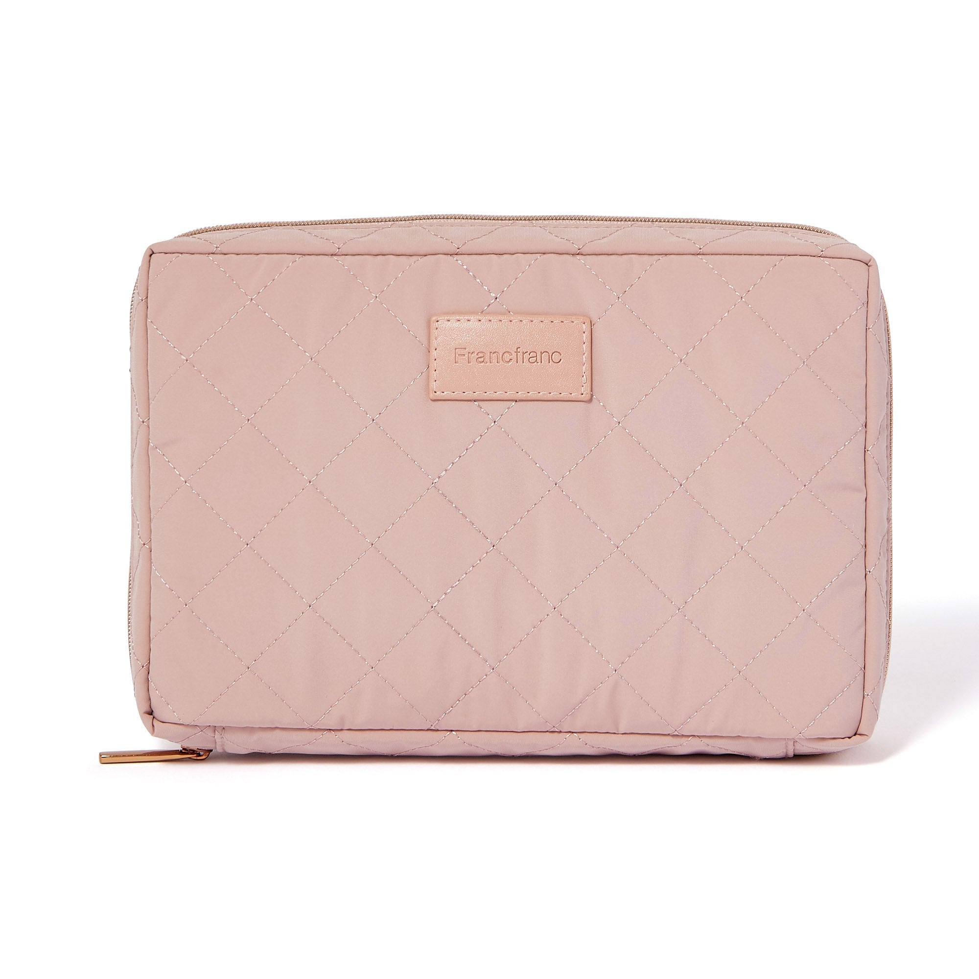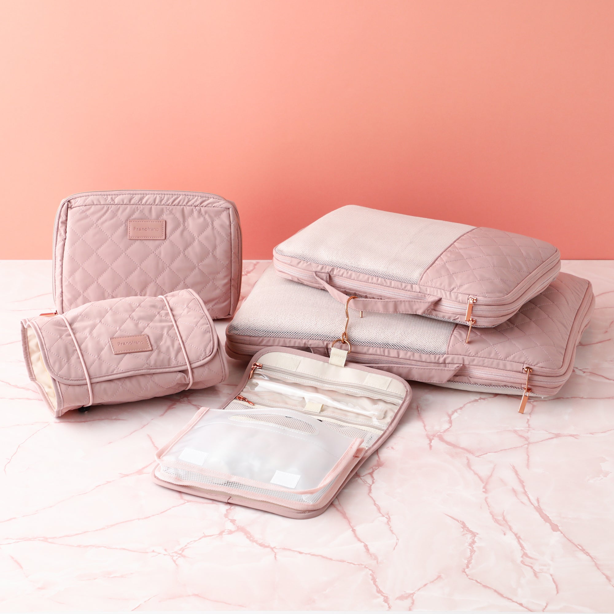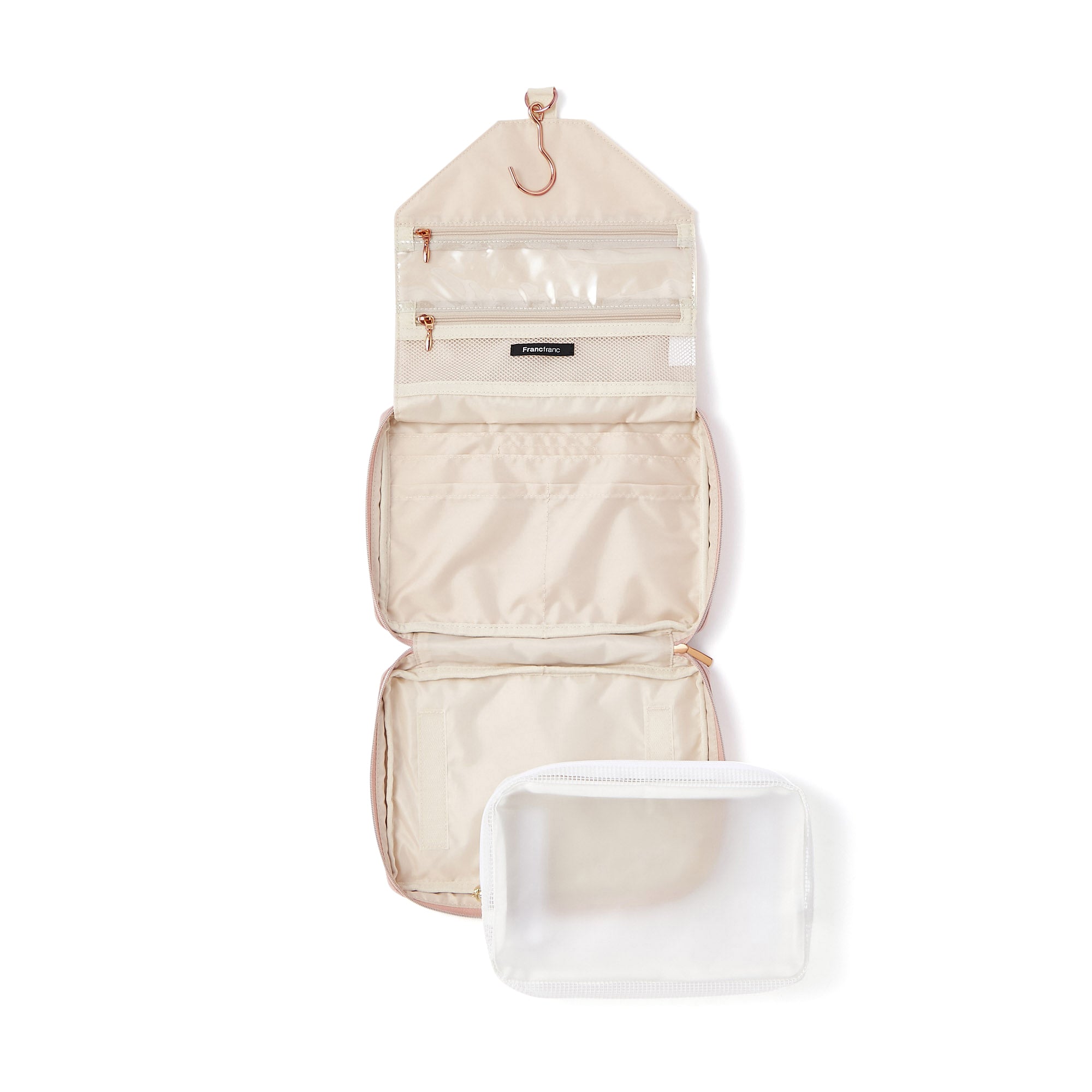 リモートワークグッズで人気のキルティングシリーズにトラベルアイテムが登場しました。旅先のバスルームなどにハンガーフックで吊るして使用できる、便利なハンギングポーチです。 洗面道具だけでなく、マスクの替えや、除菌アイテム、ハンカチの替えなどのこまごましたアイテムの収納にもぴったりです。 お風呂などに持っていきやすい取り外せるビニールポーチ付き。