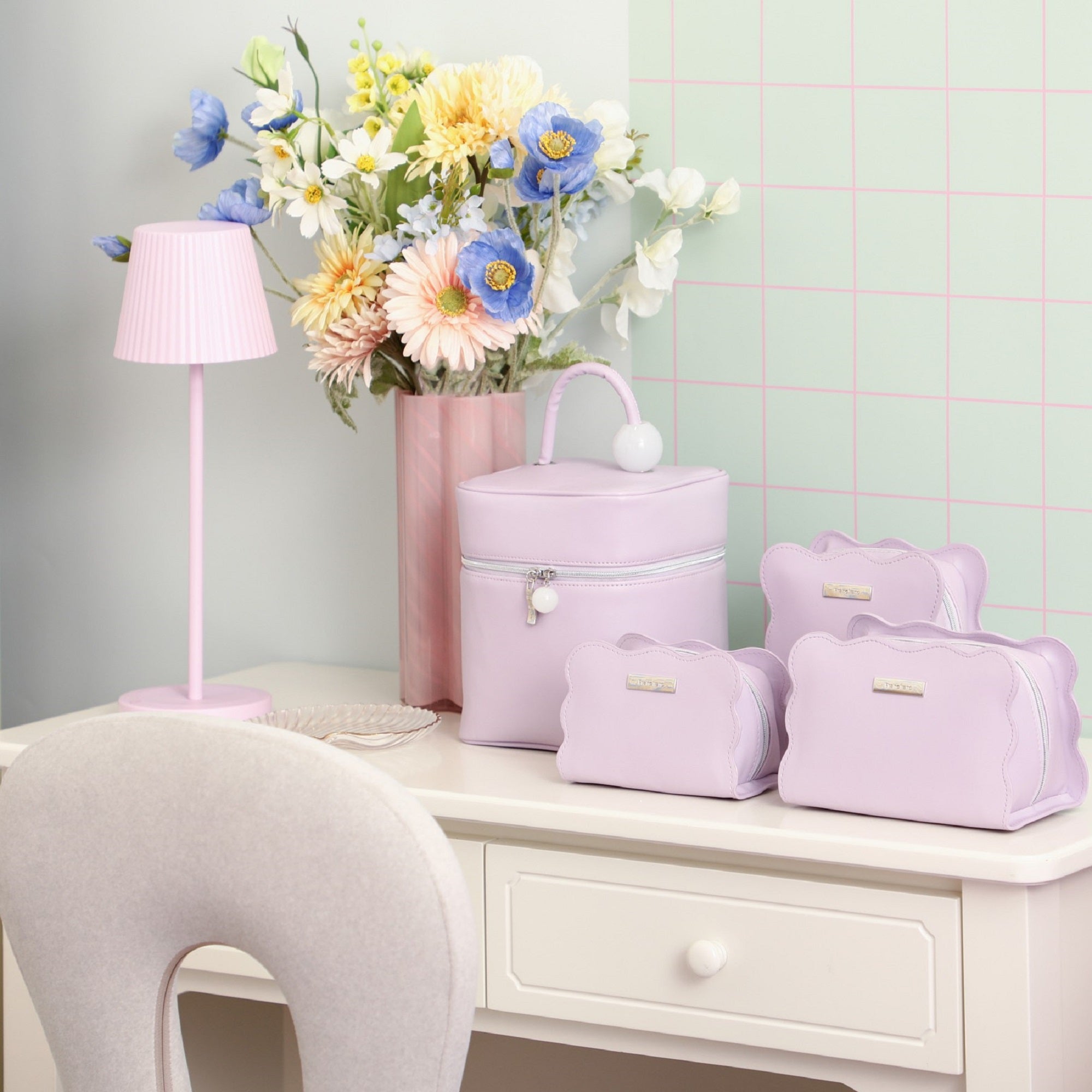 波のようなウェーブ形状がかわいいポーチです。トレンド感たっぷりで個性的なメイクポーチをお探しの方におすすめです。コンパクトサイズで日常的な持ち運びに便利です。内側ポケット付きで細かいアイテムの整理もできます。
