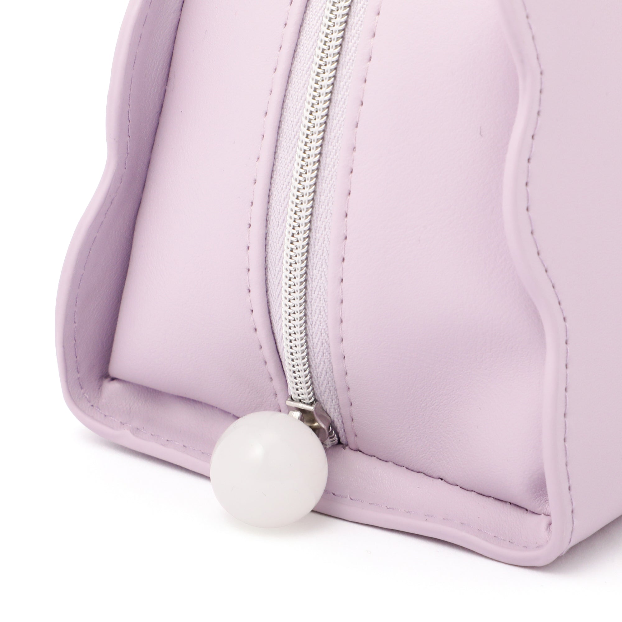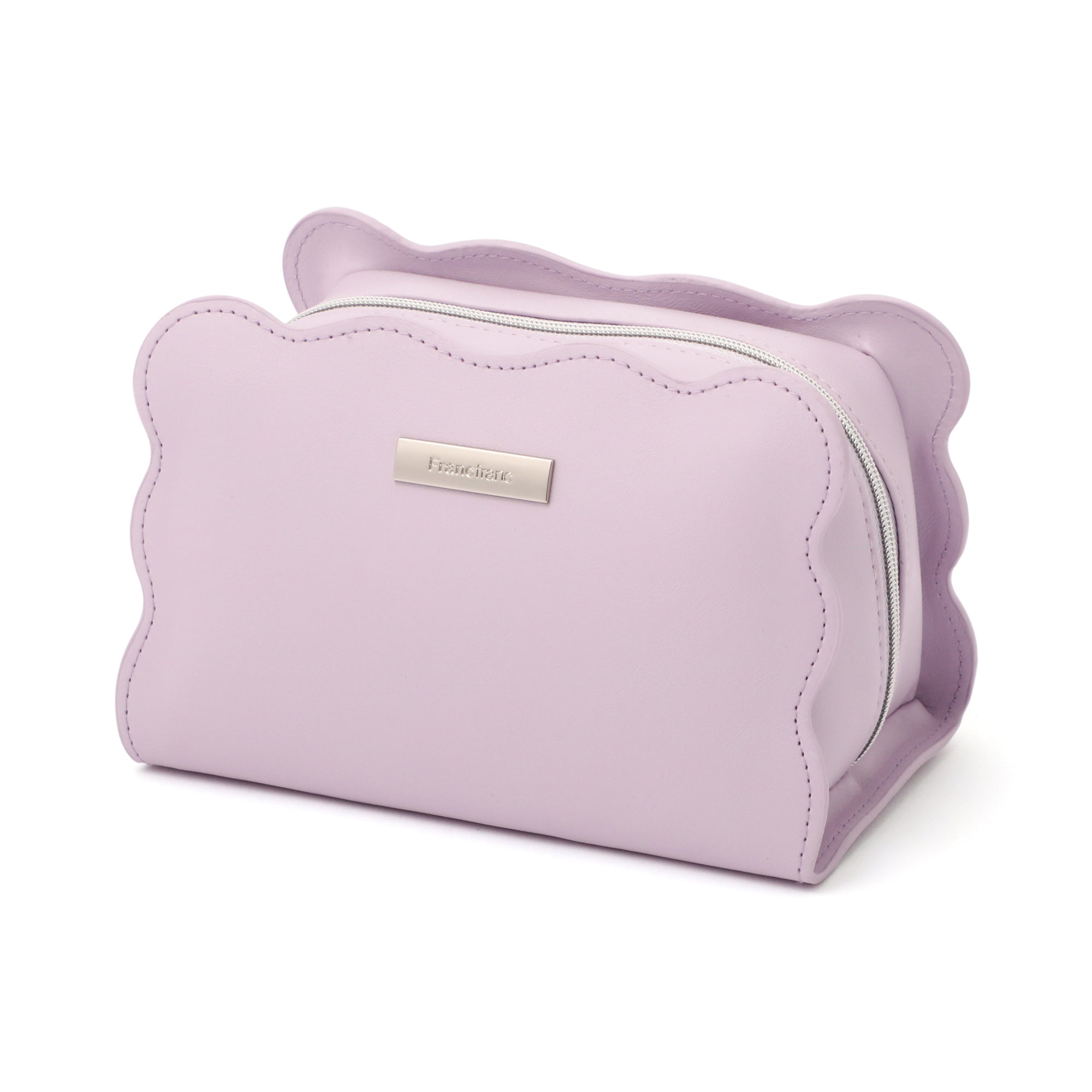 波のようなウェーブ形状がかわいいポーチです。トレンド感たっぷりで個性的なメイクポーチをお探しの方におすすめです。大容量サイズでコスメを沢山持ち歩きたい方にぴったりです。内側ポケット付きで細かいアイテムの整理もできます。