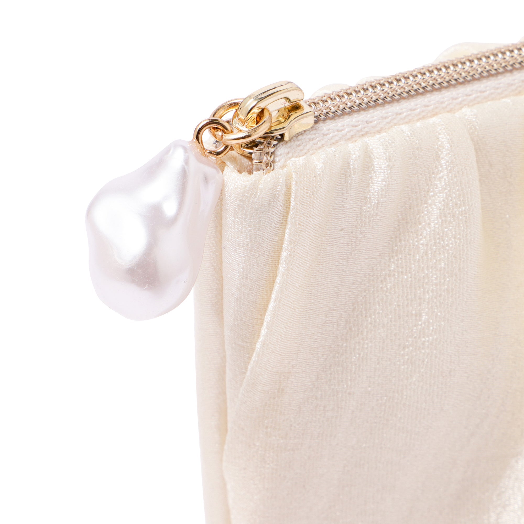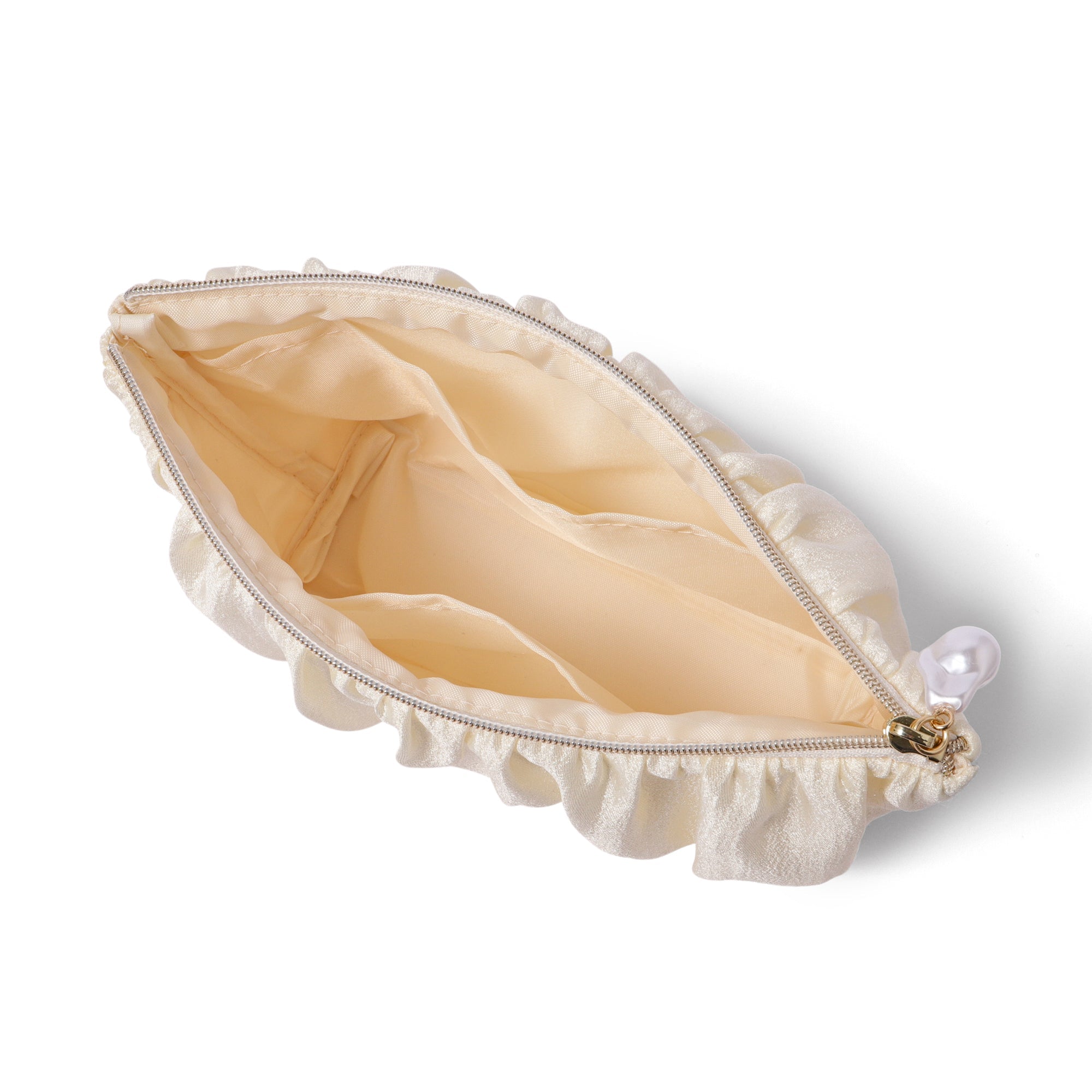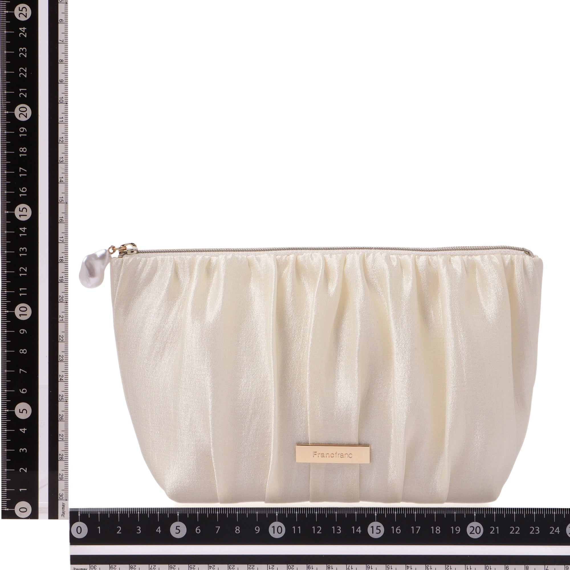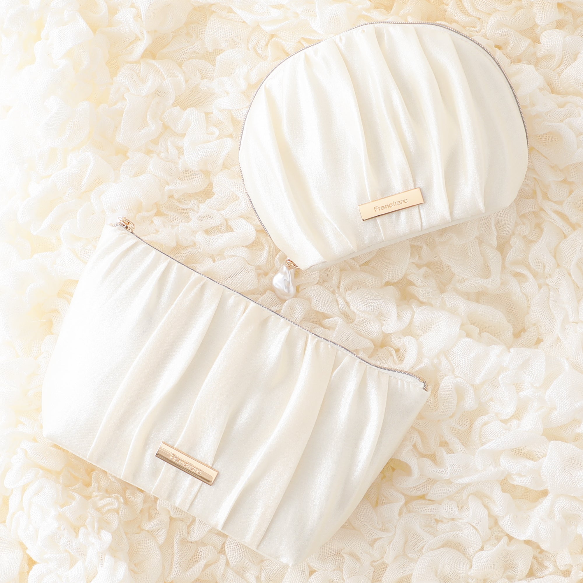 パールのような光沢シフォン生地を使った、柔らかで上品なデザインの化粧ポーチです。ジッパー引き手には淡水パール風のモチーフがついており、細部まで可愛い仕上がりです。Lサイズは沢山のコスメを持ち歩きたい方にぴったり。旅行にもおすすめです。