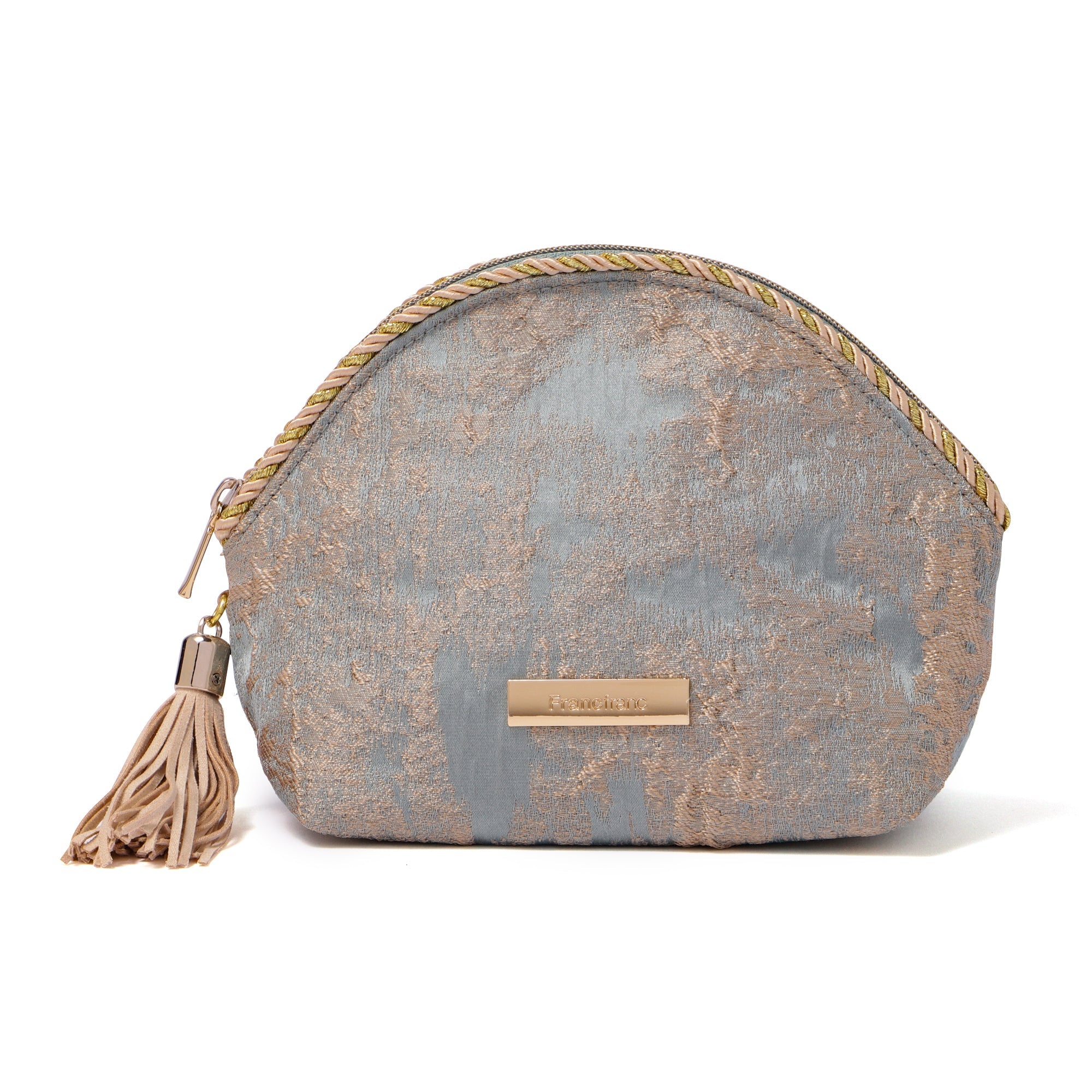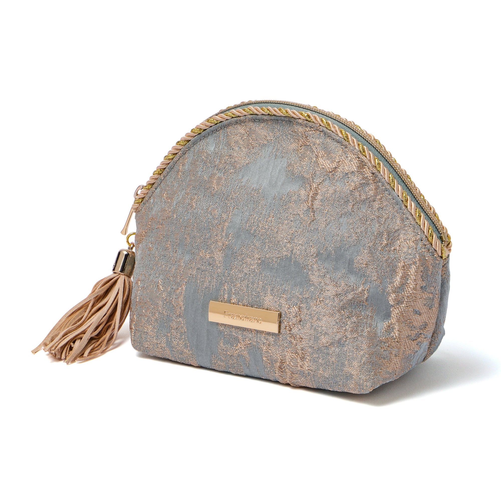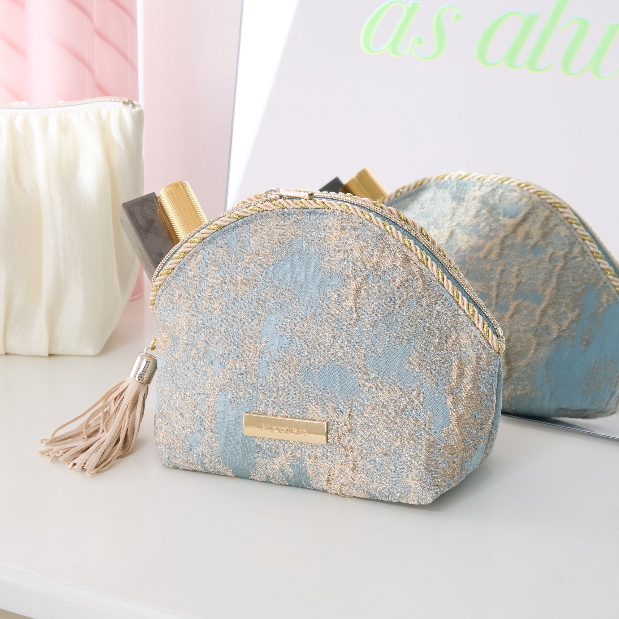 絵画のようなゴールドのテクスチャが美しい、エレガントなデザインの化粧ポーチです。装飾ロープやタッセルなど細部まで豪華な仕上がりです。Sサイズはどんなサイズのバッグにも入れやすいコンパクトな大きさで、普段使いにぴったりです。