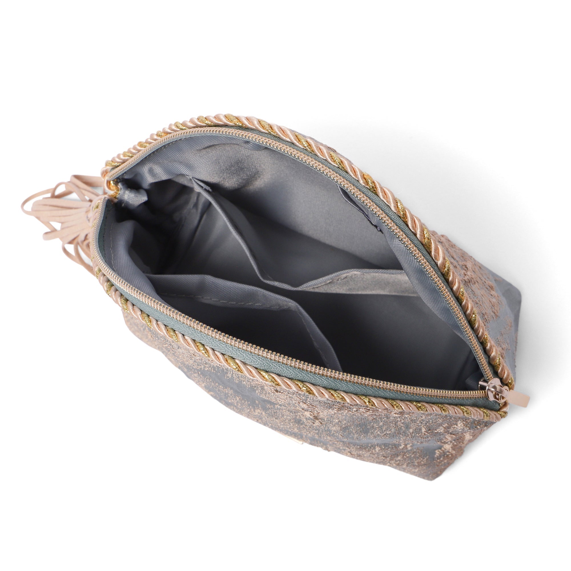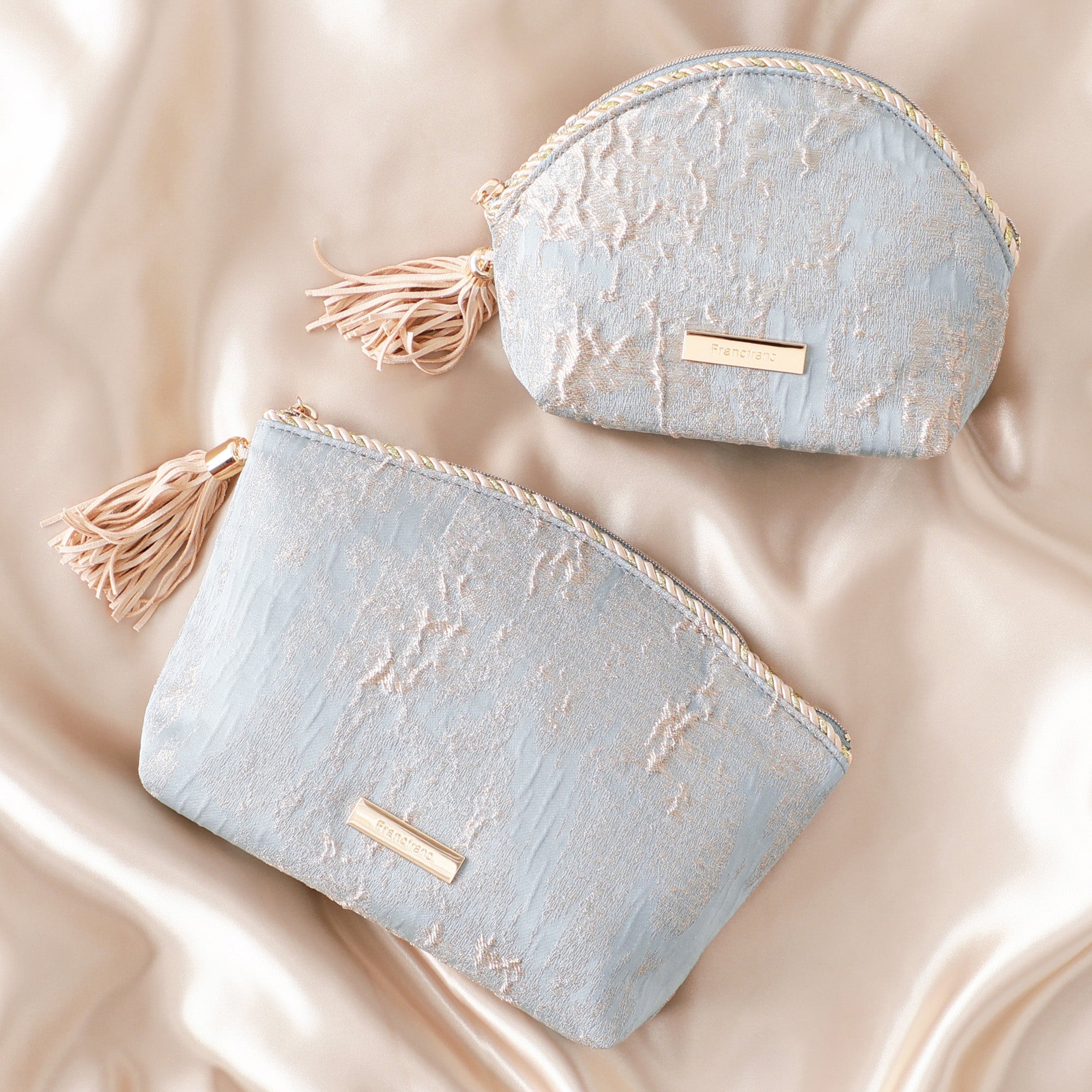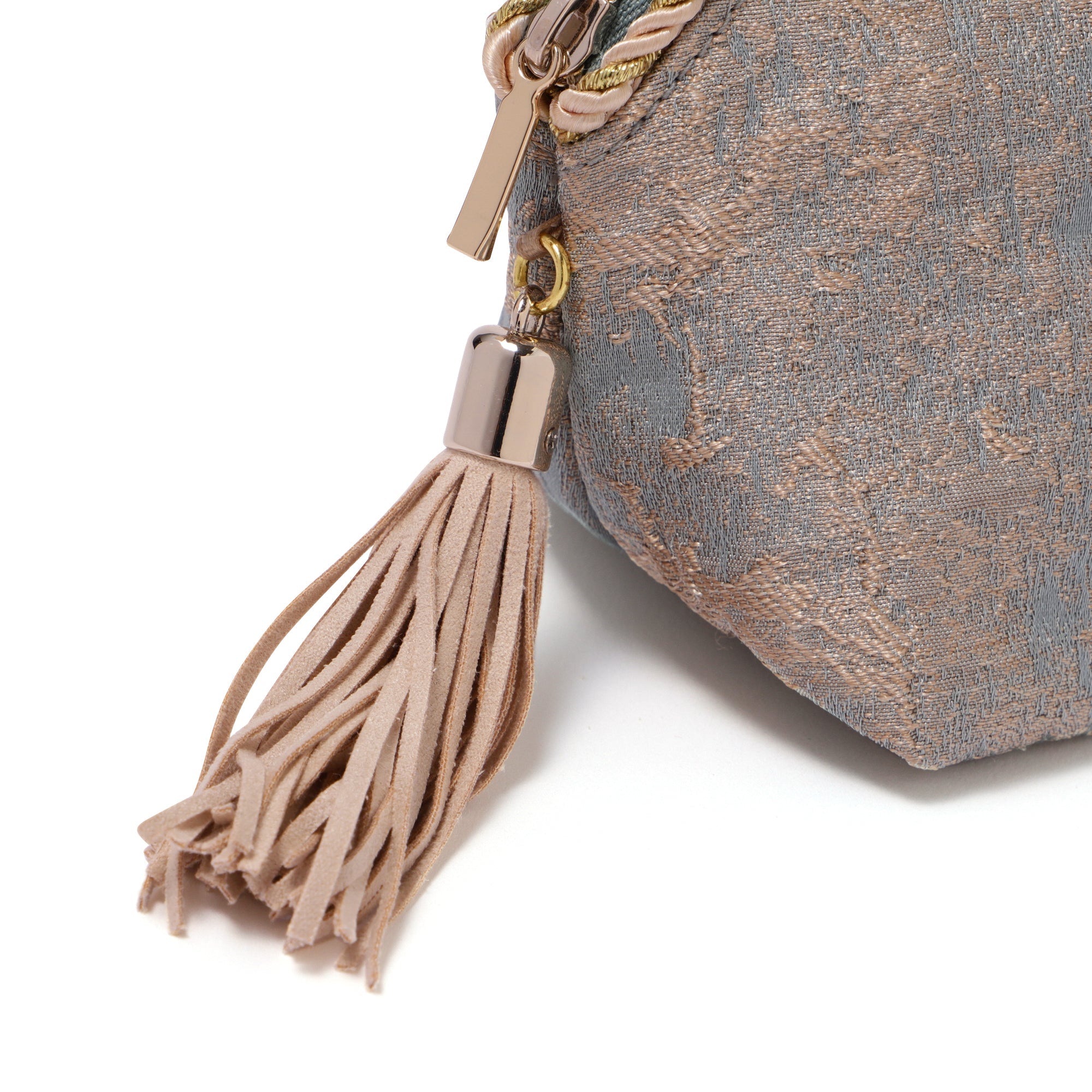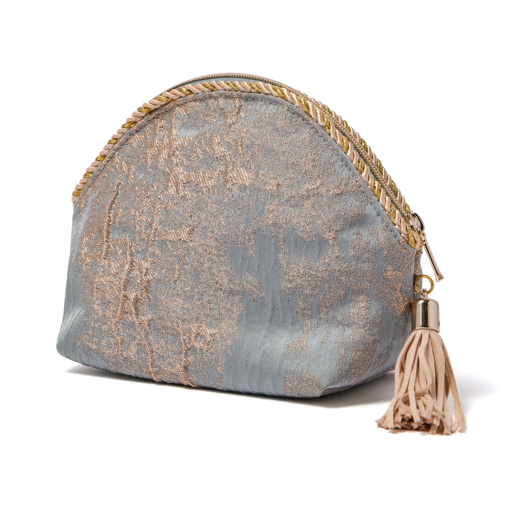 絵画のようなゴールドのテクスチャが美しい、エレガントなデザインの化粧ポーチです。装飾ロープやタッセルなど細部まで豪華な仕上がりです。Sサイズはどんなサイズのバッグにも入れやすいコンパクトな大きさで、普段使いにぴったりです。