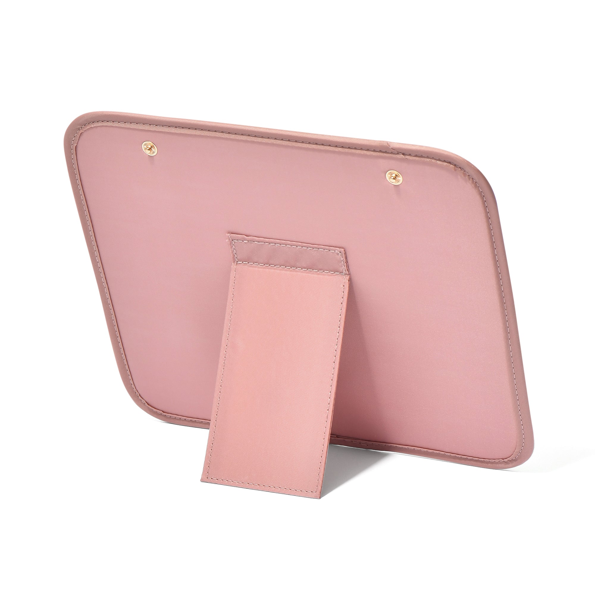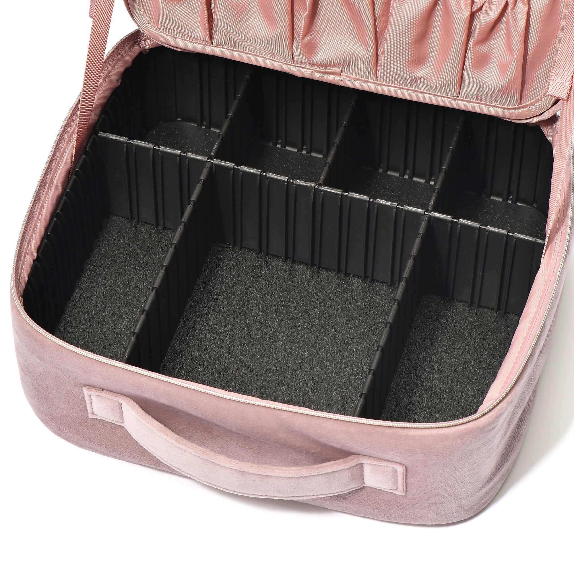 便利機能をふんだんに搭載した特大サイズのメイクバッグです。細かい化粧品を自分好みに整理できるのがポイント。中の仕切りは位置を変えられるため手持ちのメイク道具に合わせて自由に調節可能です。フタ部分は角度調節できるミラーと取り外しができる筆立てになっており、バッグを開いた状態でそのままドレッサーとして使用できます。可愛らしいリボンモチーフながらも落ち着いた配色で、日常に取り入れやすいデザインです。