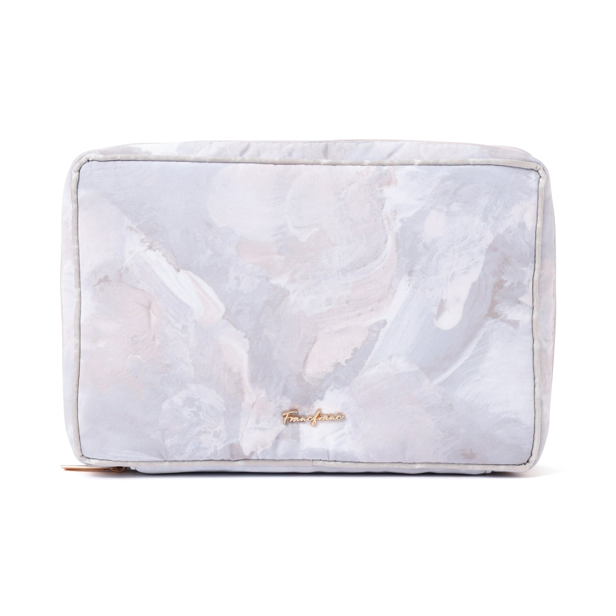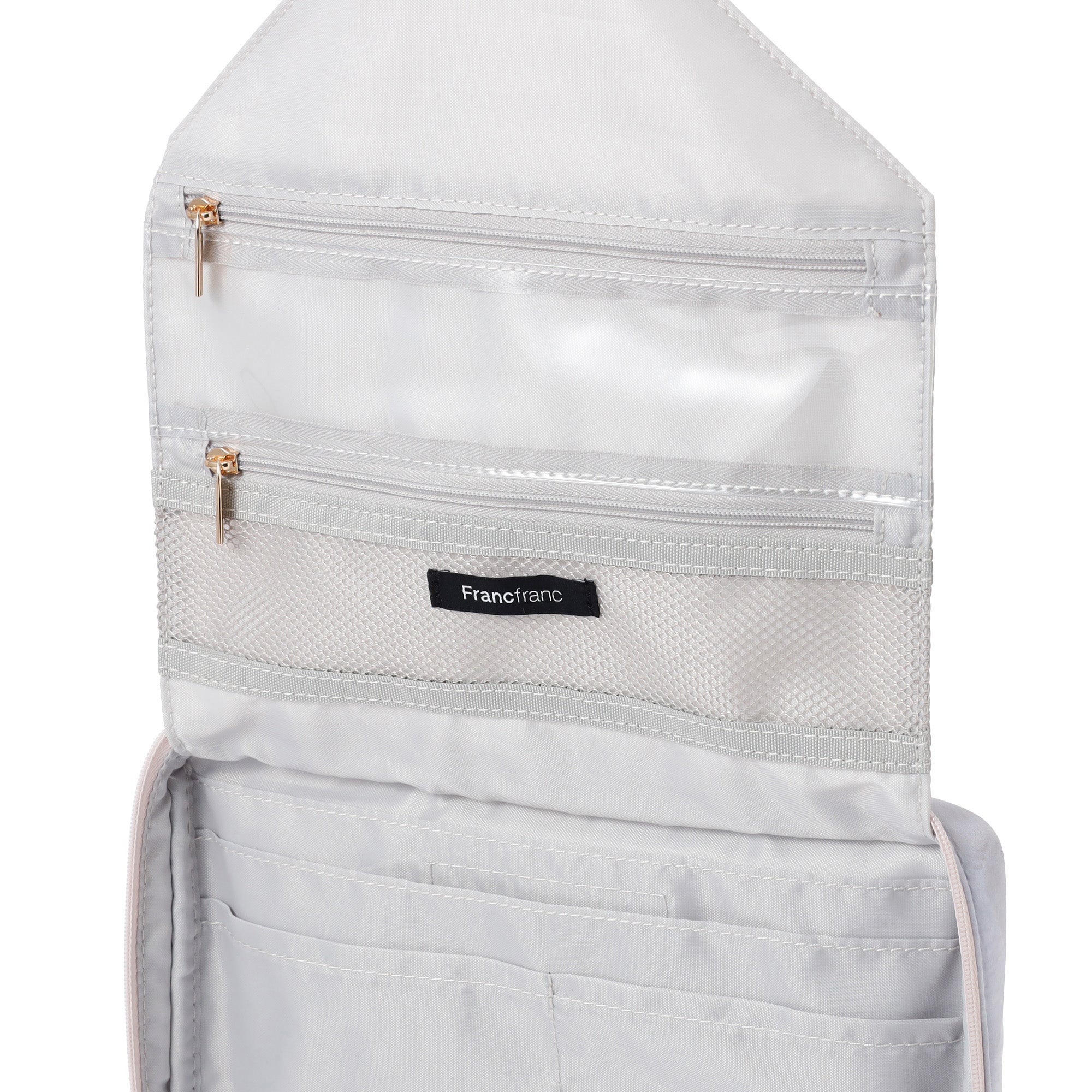 旅先のバスルームなどにハンガーフックで吊るして使用できる、便利なハンギングポーチです。メッシュのファスナーポケットがコスメや歯ブラシ、ヘアピンなどこまごましたアイテムの収納にぴったり。取り外し可能なクリアポーチはスパバッグにもおすすめです。水彩画のような美しいペイント柄が旅支度を楽しく盛り上げてくれます。