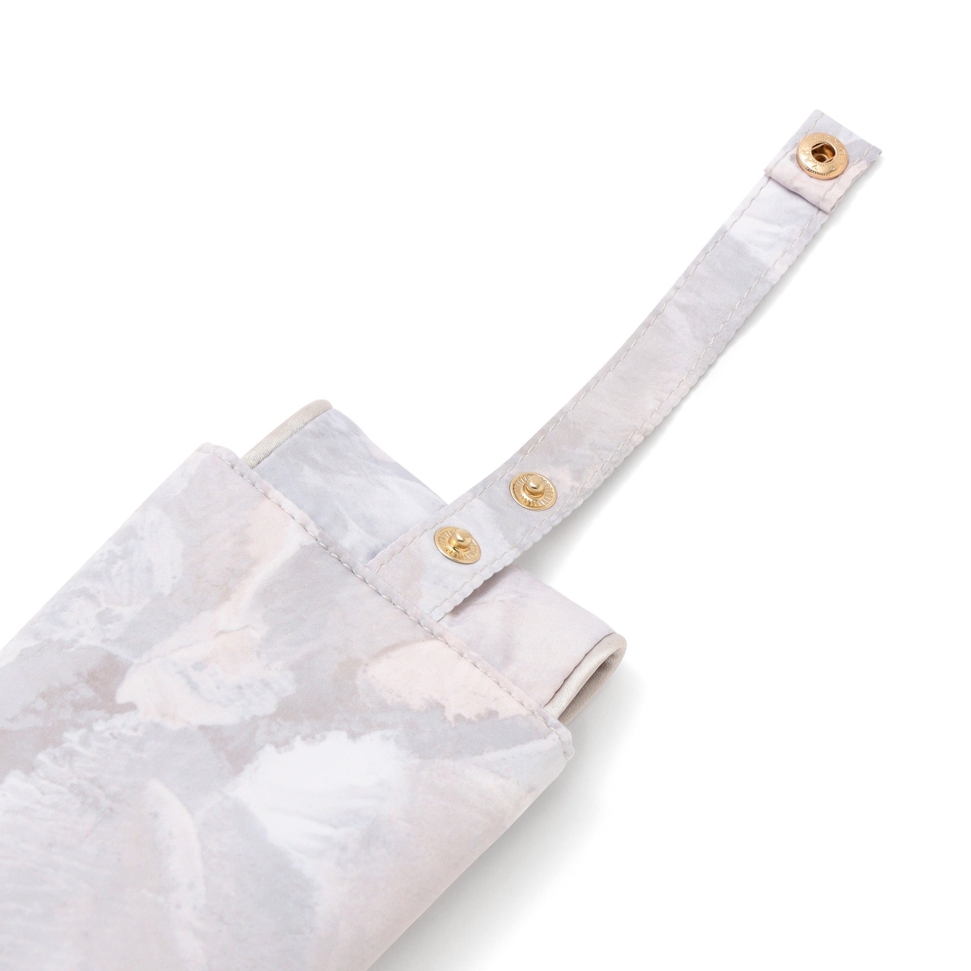 外出先にヘアアイロンを持ち運ぶのにぴったりのケースです。まだ熱い状態のヘアアイロンをそのまま収納できるよう耐熱機能を持たせました。旅行の際に便利なだけでなく、自宅でタオルハンガーなどに掛けて利用することもできます。ヘアアイロンのサイズや掛ける場所に合わせて蓋やフックの長さを調整することも可能です。水彩画のような美しいペイント柄に心躍るアイテムです。