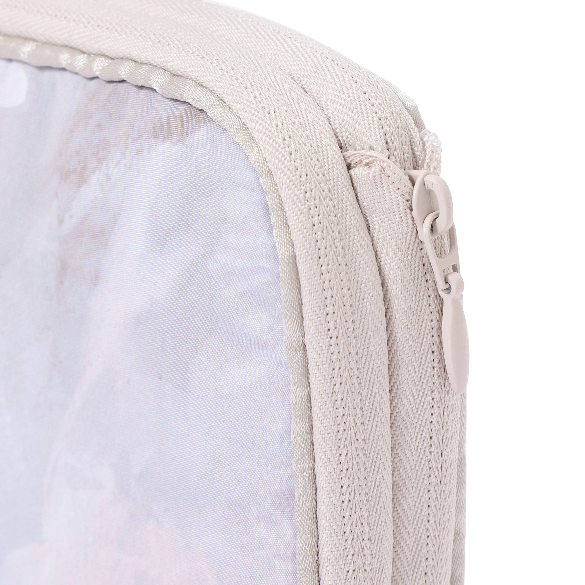 サニタリー用品を圧縮できる便利なポーチです。カバンの中でかさばるサニタリー用品をコンパクトに圧縮して通常の半分程度の厚みにできるから、長時間のお出掛けや旅行などにぴったり。昼用10枚程度まで対応可能です。水彩画のような美しいペイント柄に気分が上がります。