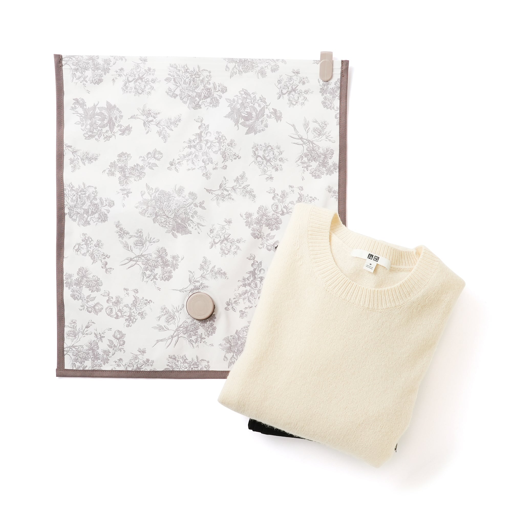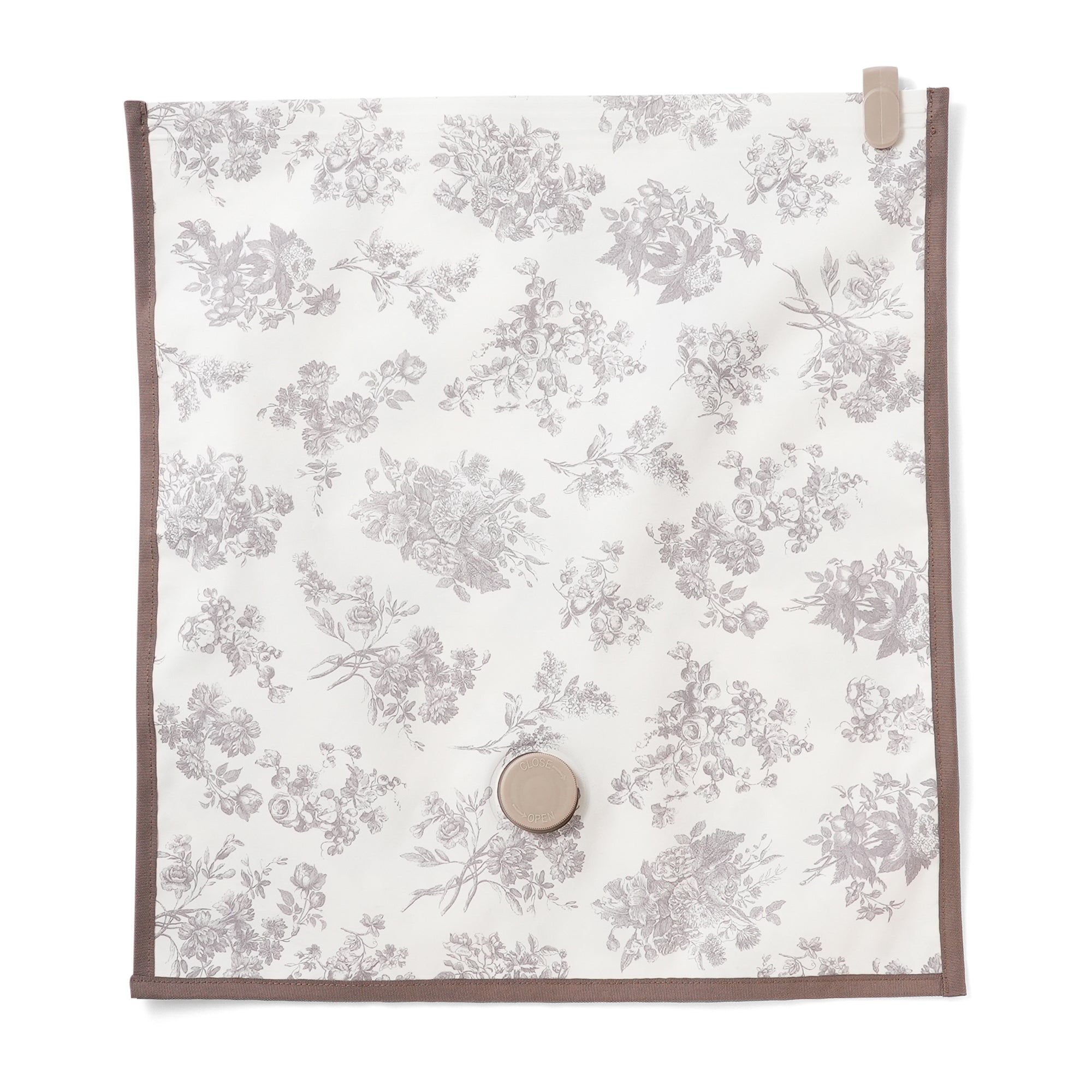 繰り返し使える、空気を押し出して使用するタイプの圧縮袋です。袋の上部をスライダーで閉じ、手で袋を丸めて中の空気をロック式排気弁から排出することで圧縮が完了します。厚手のニットやポリエステルダウン(羽毛製は不可)など、かさばる衣類をコンパクトに圧縮してくれます。手押し式だから、旅行先で開けた圧縮袋を再び閉めるのも簡単。旅行や出張に重宝するアイテムです。繰り返し使えて経済的でエコなのも嬉しいポイント。定番人気のクラシックフラワー柄で準備から楽しくなるデザインです。収納目安:Tシャツ3~4枚、セーター・トレーナーなど1枚※衣類の大きさ、厚み等により異なります。<使い方>1.チャック部分を手で開け、折りたたんだ衣類を奥まで入れてください。2.スライダーを横にゆっくり滑らせ、チャックを閉じてください。※スライダーは奥まで差し込むとロックされます。動かす際には少し上に浮かしてください。※スライダーが本体から外れた場合は、再度差し込んで取り付けてください。紛失しないようにご注意ください。3.排気弁をOPENの矢印方向に回し、フタを開けてください。4.チャック側から袋を巻き、膨らんだ部分を押して排気弁から空気を抜いてください。※袋を丸める際、爪や指輪等で袋を傷つけないようご注意ください。※排気口を衣類でふさがないようご注意ください。5.排気弁のフタをし、CLOSEの矢印方向に回してください。