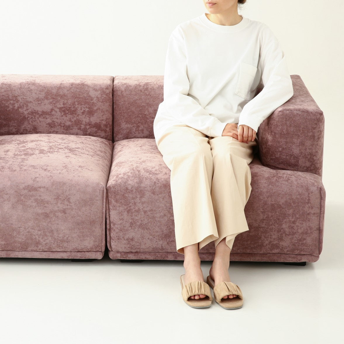 大型にも小型にも対応した圧迫感のないソファ様々な形のソファを組み合わせて、お部屋の大きさや生活スタイルに合わせてカスタマイズできます。例えば、ソファ+カウチ+オットマンの3点で空間を贅沢に。また、アームソファ+カウチでコンパクトなL字ソファを。さらにアームソファのL+Rで一人暮らしのお部屋にあわせることもできます。背もたれも低めのため、どの形でも圧迫感なくさまざまな広さのお部屋にあわせやすいデザインです。ツヤ感のある起毛生地しっとりソフトな肌触りの起毛生地がリラックスタイムをより快適なものに。少しツヤのある光沢感が、お部屋に落ち着いた印象を与えます。こだわりのクッション性低めの座面高に適したクッション性を検討し、表面生地の下にフェザーの層と固めのウレタンフォームの層を設けることで、硬過ぎず柔らか過ぎない座り心地に仕上げています。奥行きがあり寛げるサイズ感にマッチしたクッション性をお楽しみください。