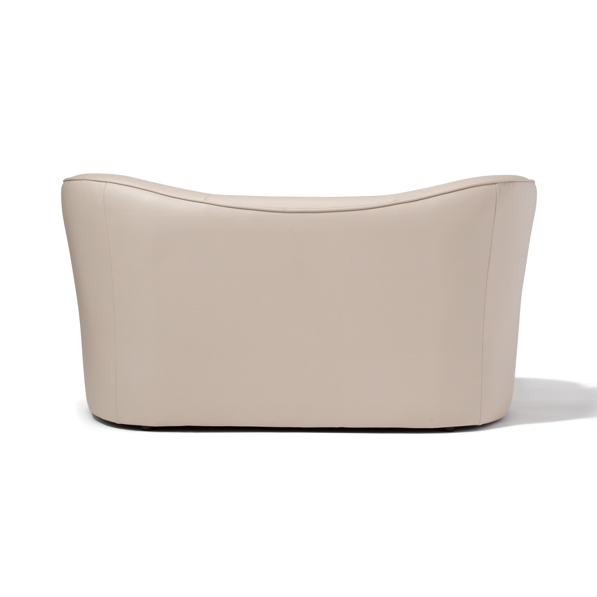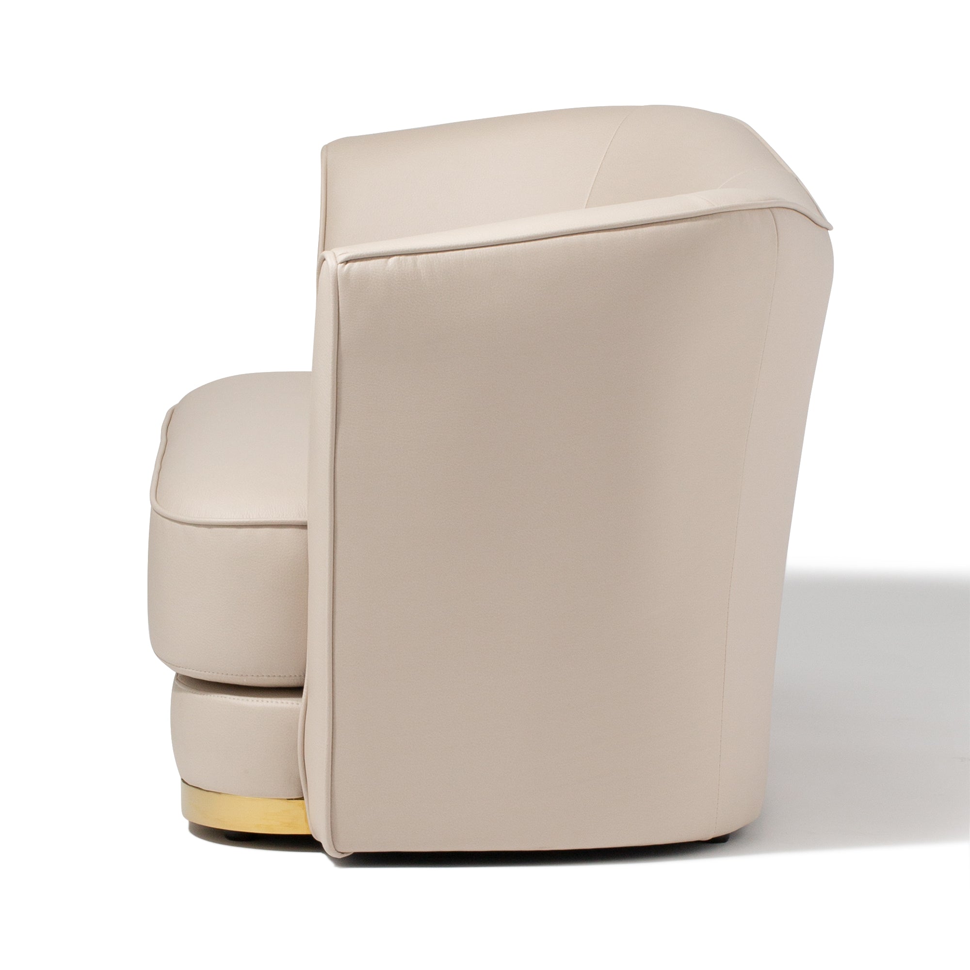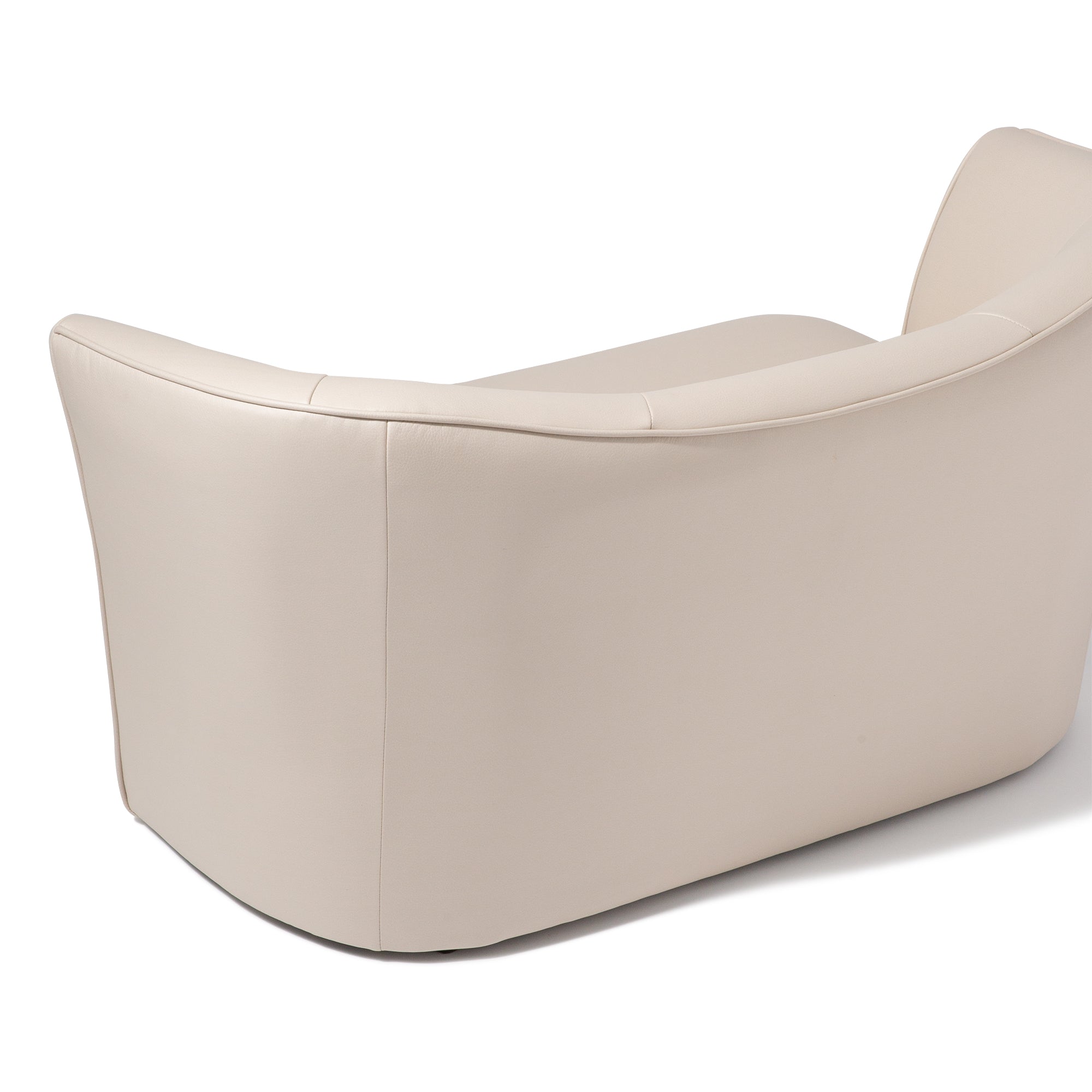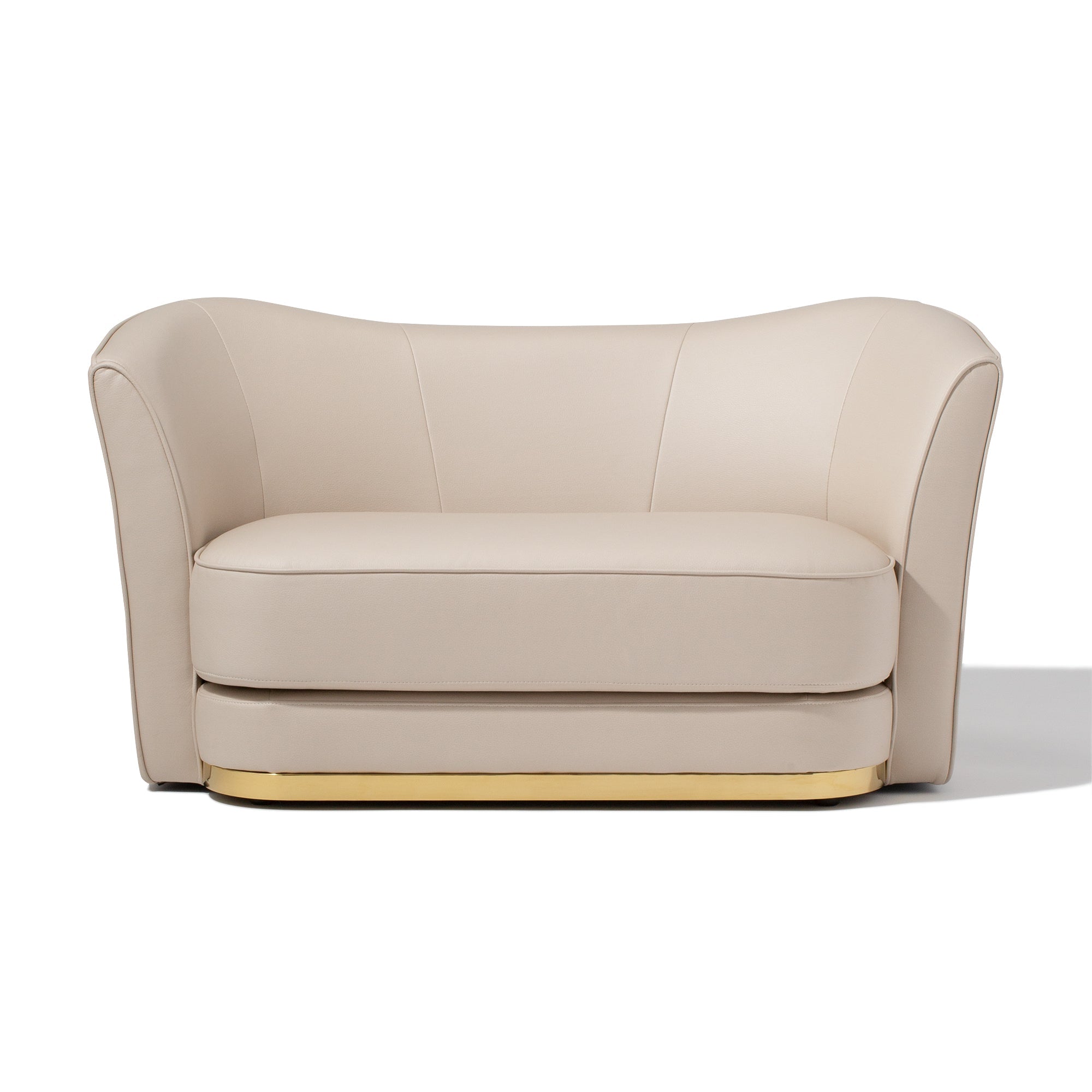 足飾りをつけたような足元のゴールドの台輪がアクセントの大人かわいいレザーソファです。足元のゴールドの台輪はかわいいだけじゃなく、生地への汚れも防いでくれます。肘かけと背もたれが一体となり、包み込まれるような曲線を描いた柔らかいデザイン。圧迫感もなく心地よく体にフィットして支えてくれます。座面はカバーを外してクリーニング可能。見た目も触り心地もレザーのようなお手入れがしやすい合成皮革のソファです。硬めなので長く座っていても疲れにくい仕様です。合わせやすいカラーなので、お気に入りの家具や小物とのコーディネートがしやすいところもおすすめです。