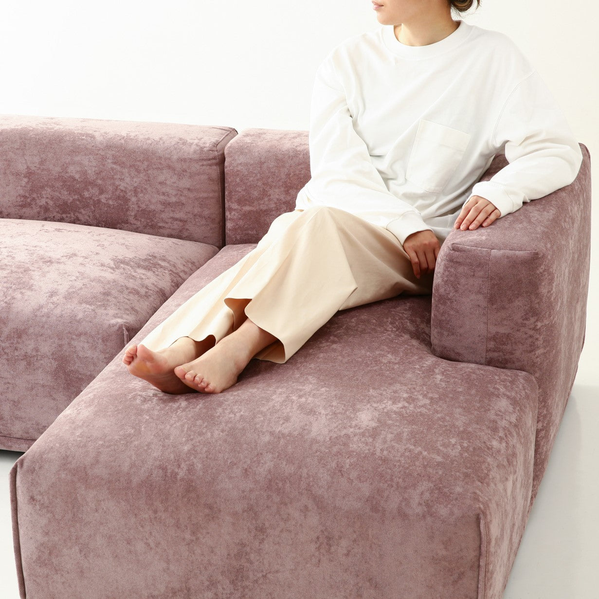 大型にも小型にも対応した圧迫感のないソファ様々な形のソファを組み合わせて、お部屋の大きさや生活スタイルに合わせてカスタマイズできます。例えば、ソファ+カウチ+オットマンの3点で空間を贅沢に。また、アームソファ+カウチでコンパクトなL字ソファを。さらにアームソファのL+Rで一人暮らしのお部屋にあわせることもできます。背もたれも低めのため、どの形でも圧迫感なくさまざまな広さのお部屋にあわせやすいデザインです。ツヤ感のある起毛生地しっとりソフトな肌触りの起毛生地がリラックスタイムをより快適なものに。少しツヤのある光沢感が、お部屋に落ち着いた印象を与えます。こだわりのクッション性低めの座面高に適したクッション性を検討し、表面生地の下にフェザーの層と固めのウレタンフォームの層を設けることで、硬過ぎず柔らか過ぎない座り心地に仕上げています。奥行きがあり寛げるサイズ感にマッチしたクッション性をお楽しみください。