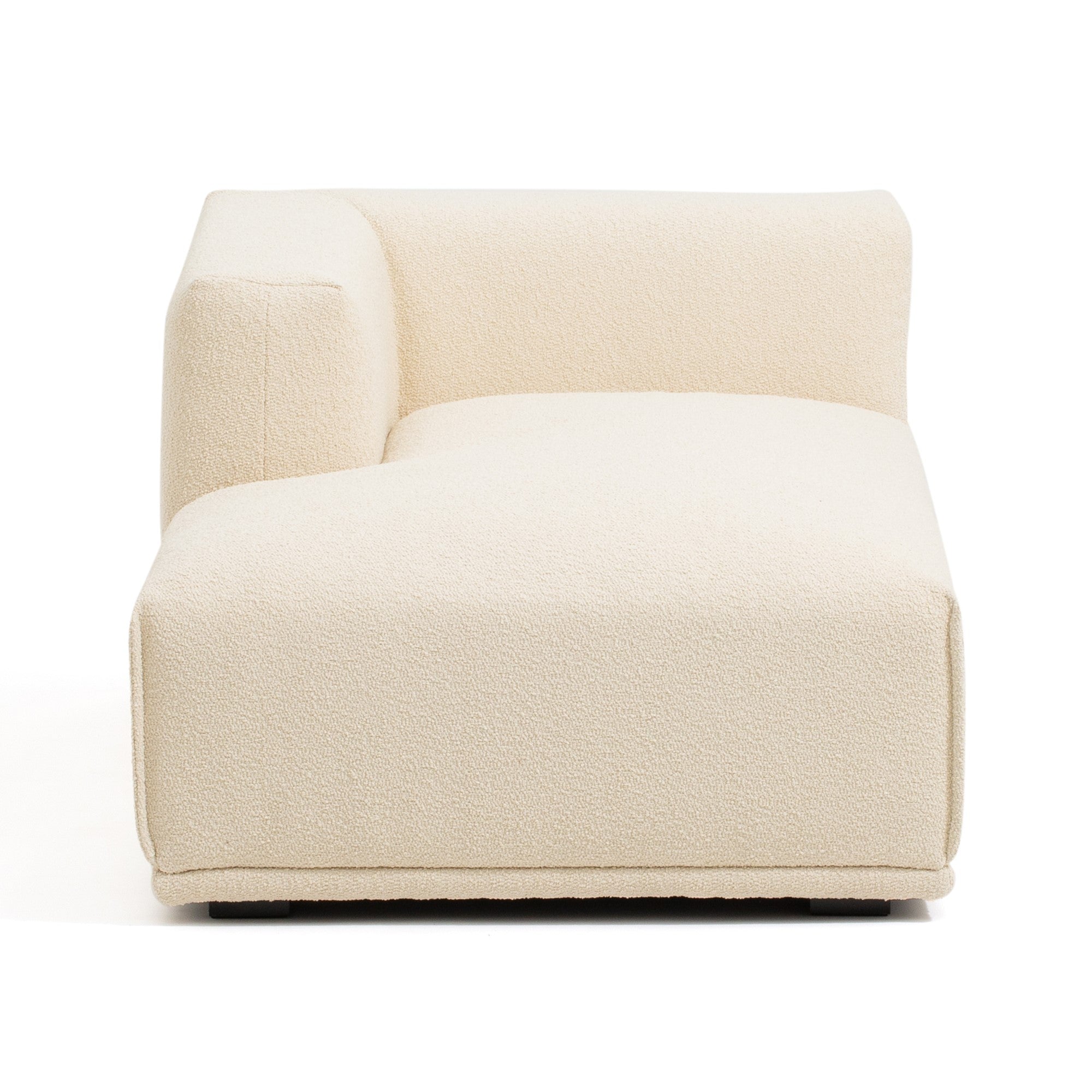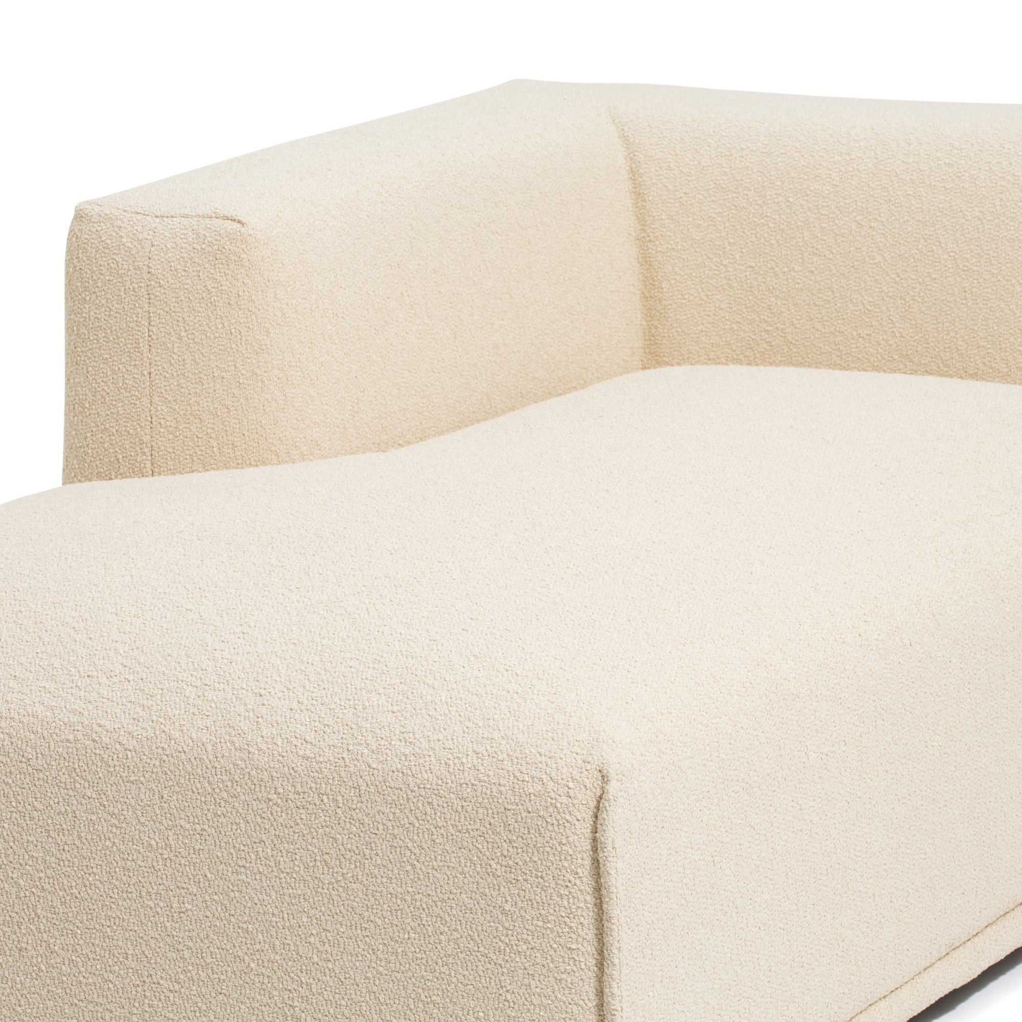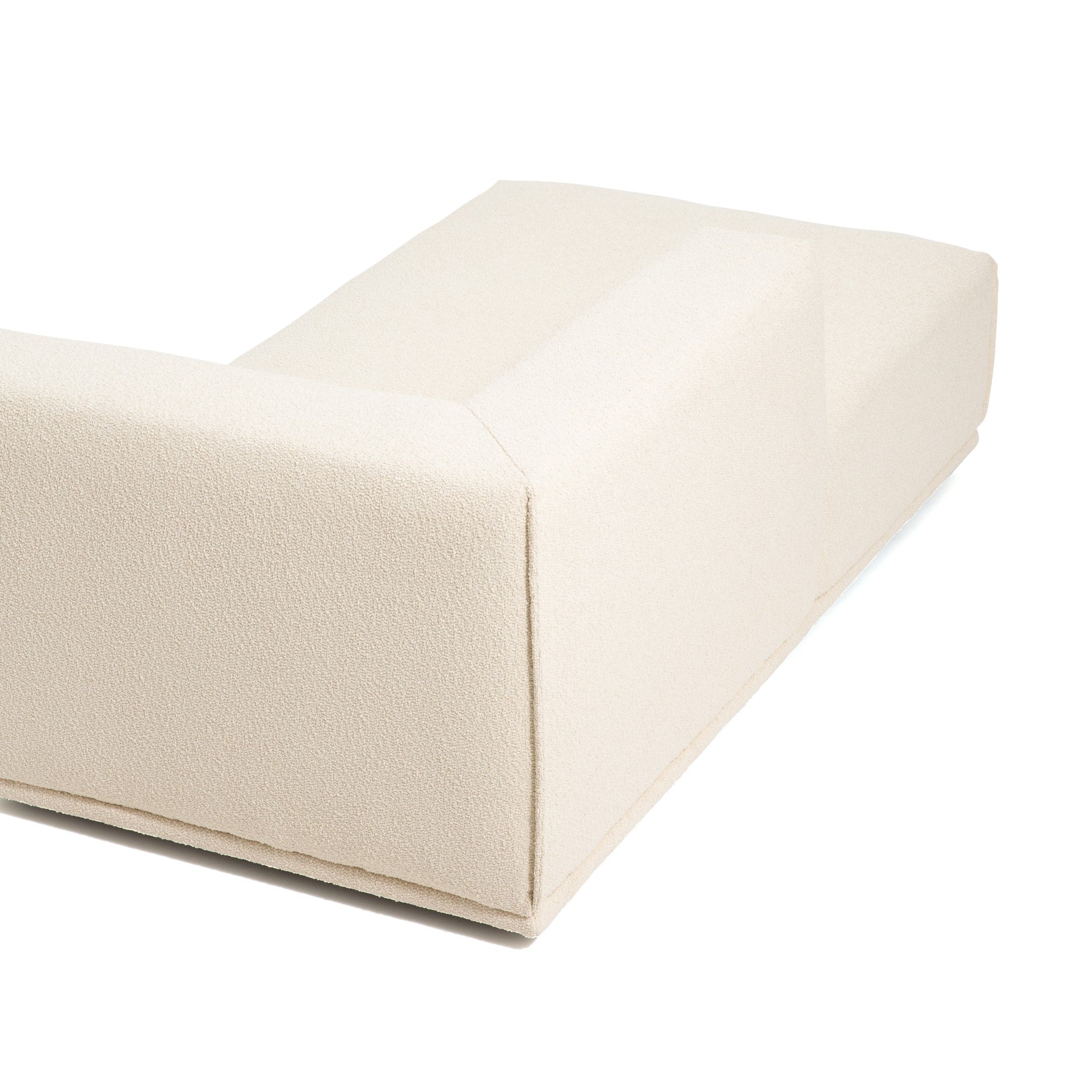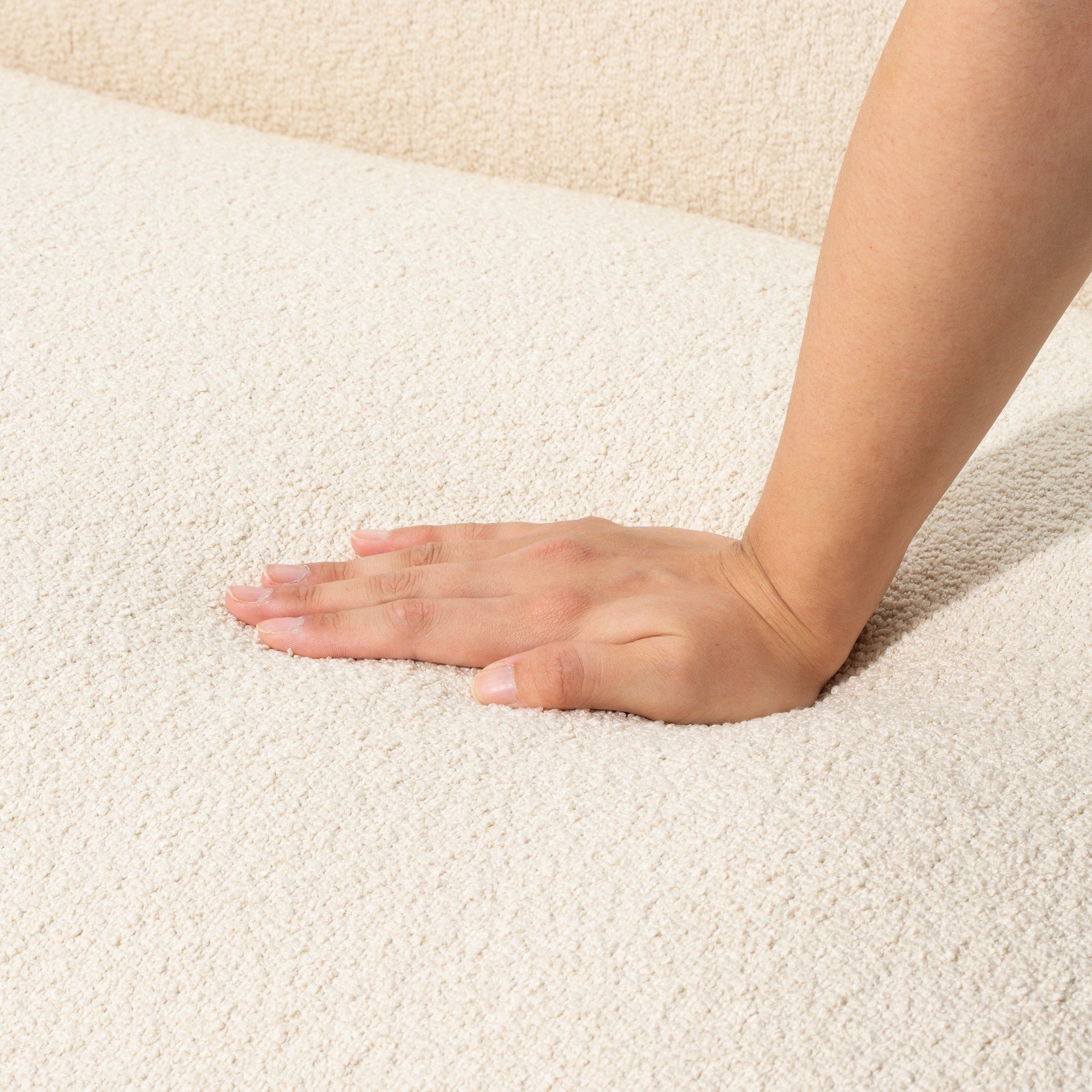 大型にも小型にも対応した圧迫感のないソファ様々な形のソファを組み合わせて、お部屋の大きさや生活スタイルに合わせてカスタマイズできます。例えば、ソファ+カウチ+オットマンの3点で空間を贅沢に。また、アームソファ+カウチでコンパクトなL字ソファを。さらにアームソファのL+Rで一人暮らしのお部屋にあわせることもできます。背もたれも低めのため、どの形でも圧迫感なくさまざまな広さのお部屋にあわせやすいデザインです。柔らかい触りごこちのボア素材カウチを包み込むボア素材はぬいぐるみのようにもふもふな肌触り。座るだけで癒される柔らかな触り心地です。マットな素材感がお部屋にナチュラルで優しい印象を与えます。こだわりのクッション性低めの座面高に適したクッション性を検討し、表面生地の下にフェザーの層と固めのウレタンフォームの層を設けることで、硬過ぎず柔らか過ぎない座り心地に仕上げています。奥行きがあり寛げるサイズ感にマッチしたクッション性をお楽しみください。