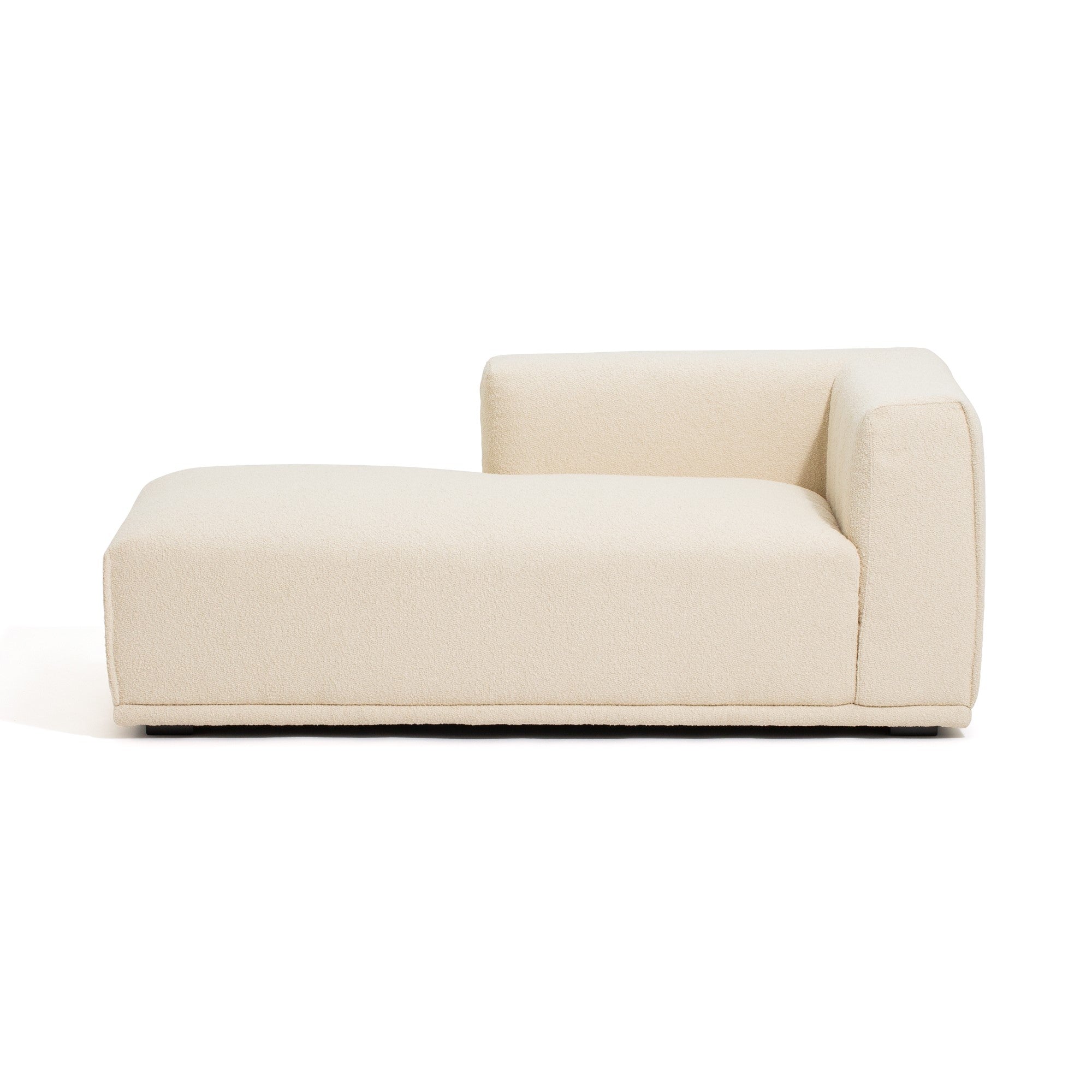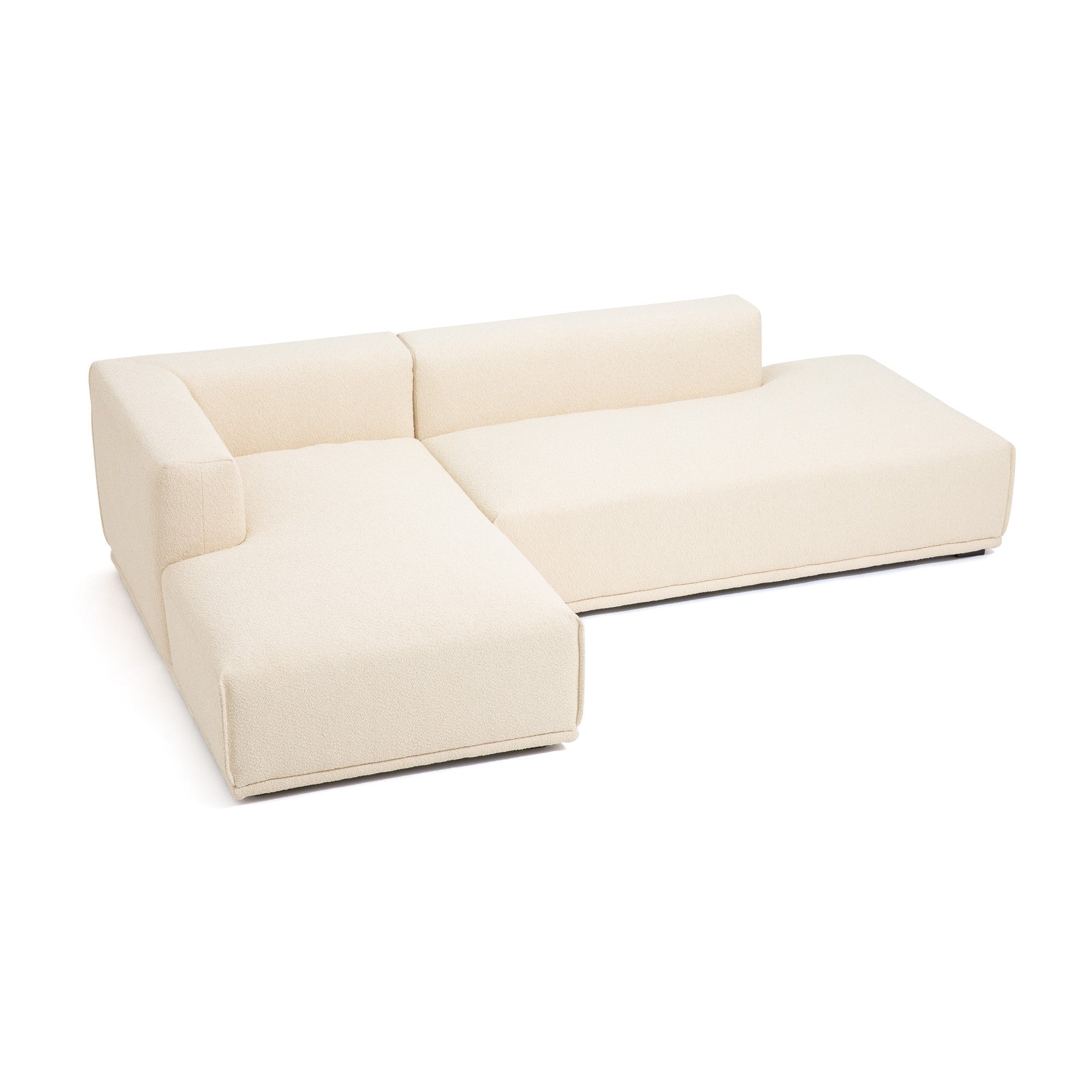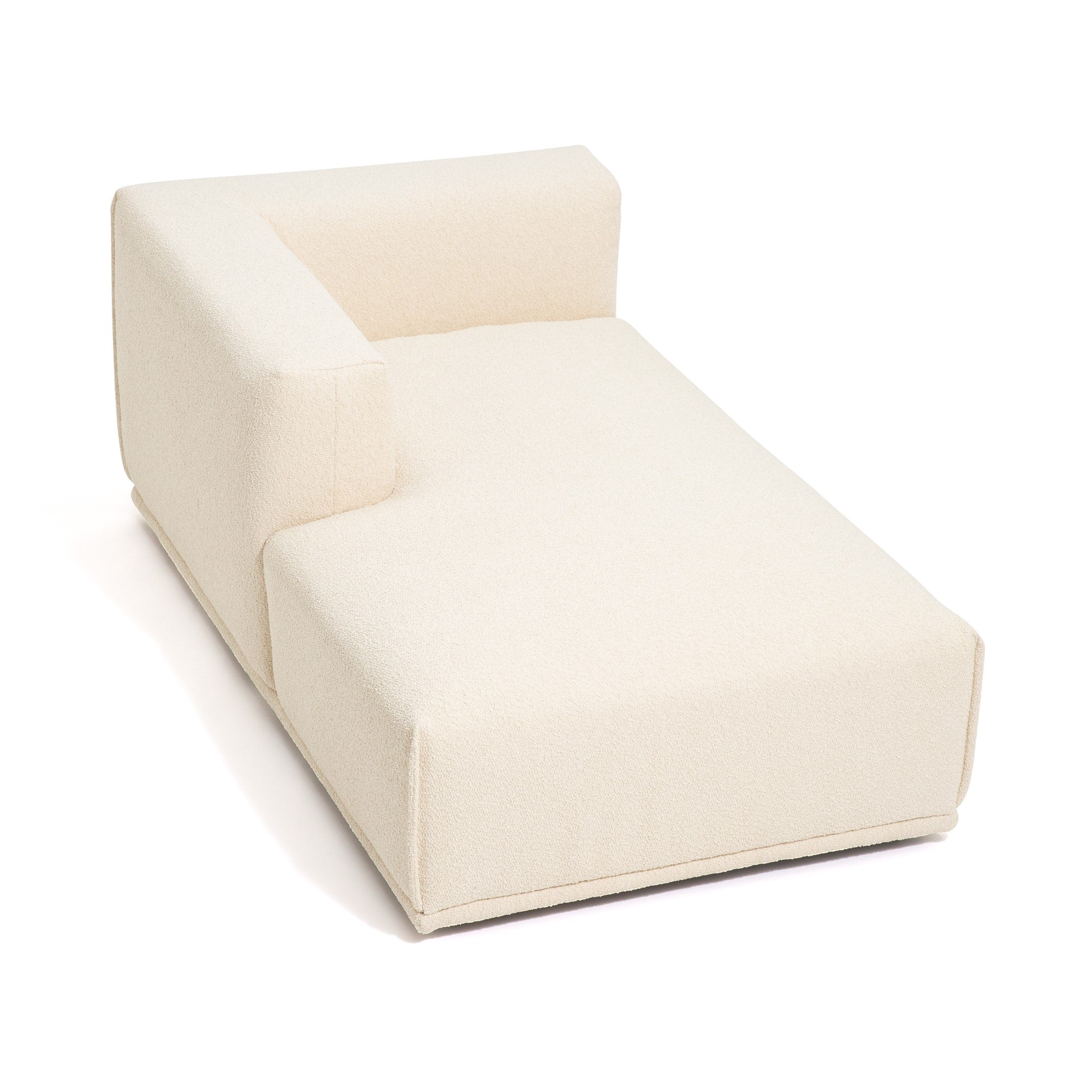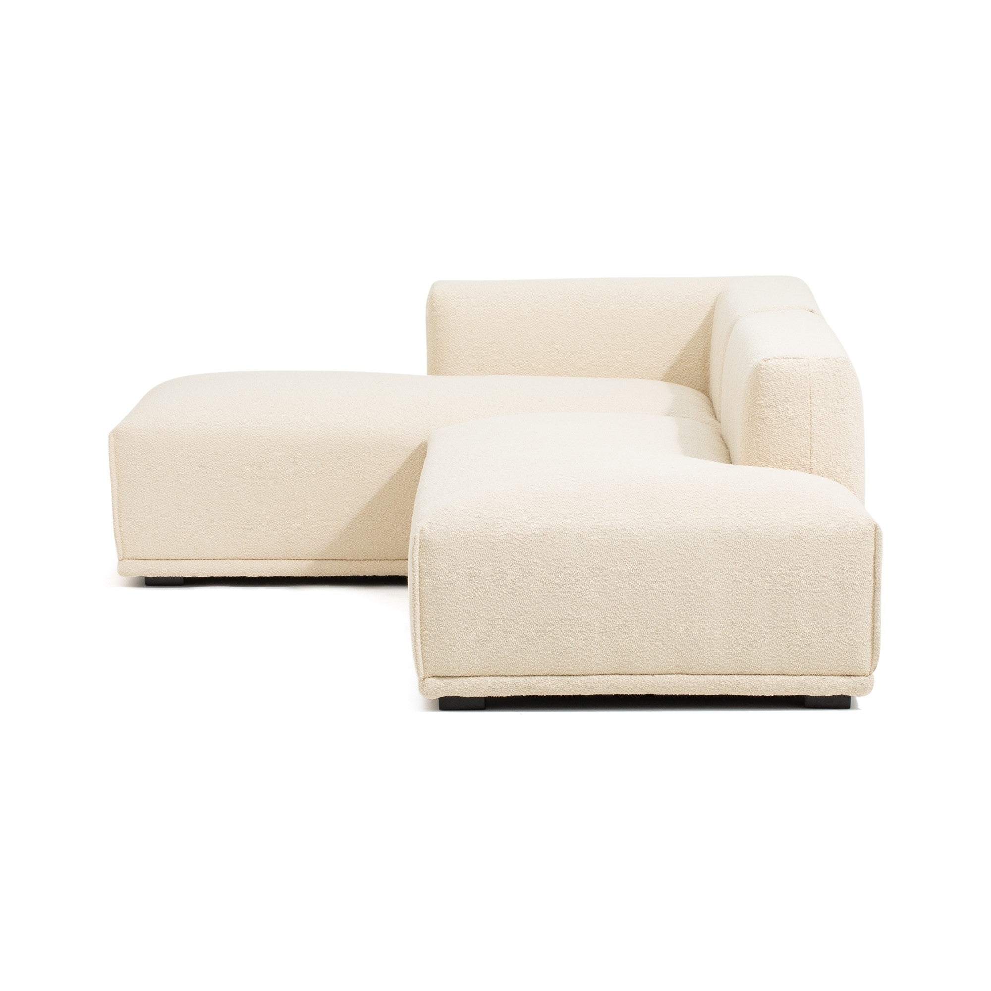 大型にも小型にも対応した圧迫感のないソファ様々な形のソファを組み合わせて、お部屋の大きさや生活スタイルに合わせてカスタマイズできます。例えば、ソファ+カウチ+オットマンの3点で空間を贅沢に。また、アームソファ+カウチでコンパクトなL字ソファを。さらにアームソファのL+Rで一人暮らしのお部屋にあわせることもできます。背もたれも低めのため、どの形でも圧迫感なくさまざまな広さのお部屋にあわせやすいデザインです。柔らかい触りごこちのボア素材カウチを包み込むボア素材はぬいぐるみのようにもふもふな肌触り。座るだけで癒される柔らかな触り心地です。マットな素材感がお部屋にナチュラルで優しい印象を与えます。こだわりのクッション性低めの座面高に適したクッション性を検討し、表面生地の下にフェザーの層と固めのウレタンフォームの層を設けることで、硬過ぎず柔らか過ぎない座り心地に仕上げています。奥行きがあり寛げるサイズ感にマッチしたクッション性をお楽しみください。