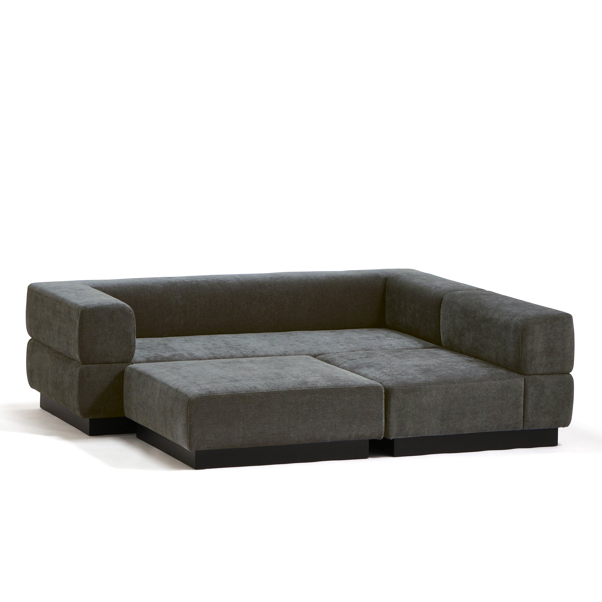 さまざまな組み合わせができるシンプルモダンソファシリーズ水平垂直でシンプルでありながら洗練されたデザインのソファシリーズです。ボリューム感と安定感があり、座りやすさ、クッション性、耐久性にも考慮したしました。■低さとクッション性ソファ高さを59cmと低めに設定。空間を区切らず広く感じていただけます。また、壁のインテリアを邪魔しないので、大きめのアートパネルや特徴的な壁面をより強調していただけます。座面が低いため身体の負担を考慮し、背面、座面ともに硬めのウレタンを使用しています。使用による型崩れも軽減し、よりながく水平垂直のデザインを維持します。■組み合わせスリーシートソファ、カウチ、オットマン、アームレスソファはワンシートとツーシートと5種類のシリーズソファをご用意しました。さまざまな組み合わせでご使用いただけて、レイアウトも自由自在。スリーシートソファ+ワンシートアームレスソファ+オットマンの組み合わせで、簡易ベッドとしてもご使用いただけます。