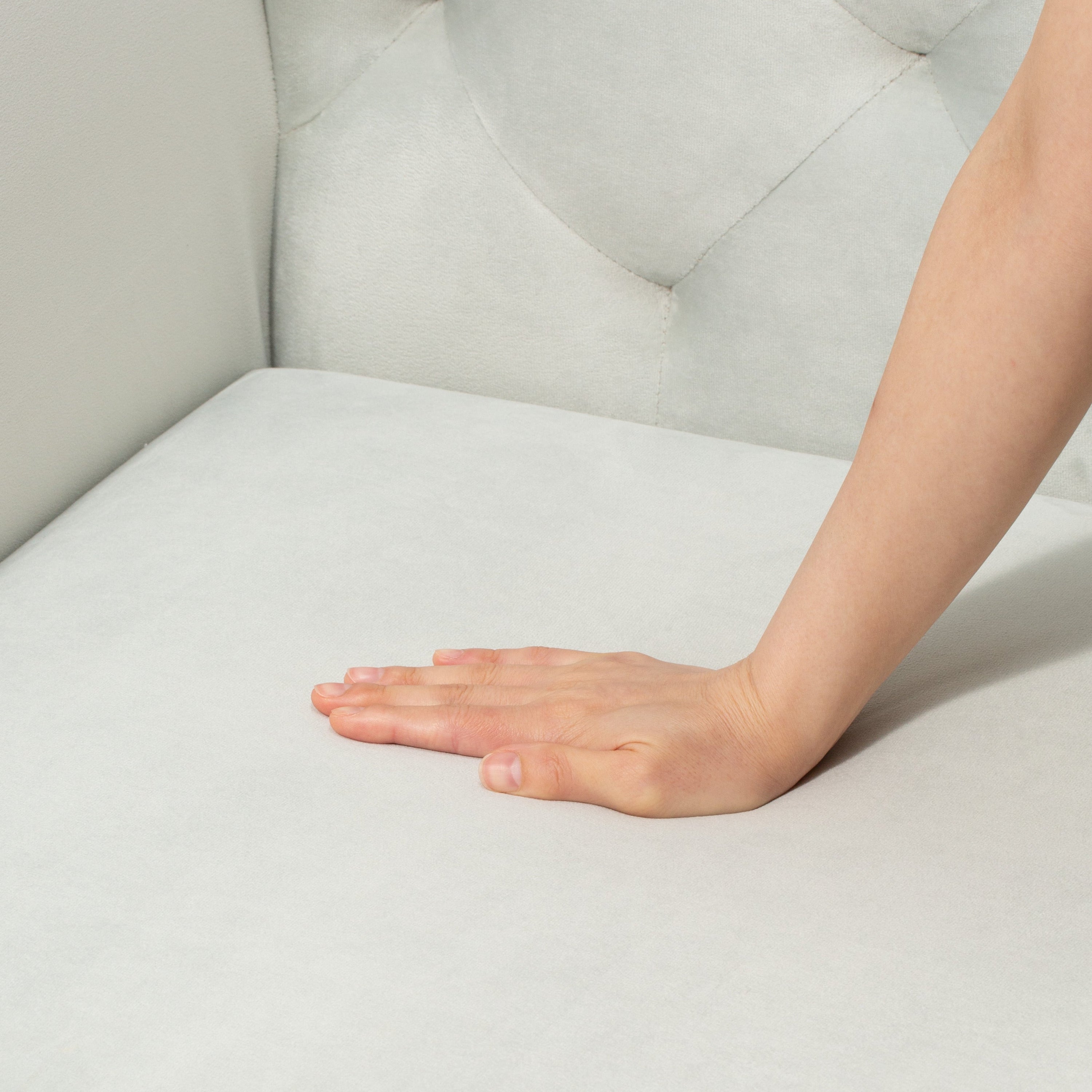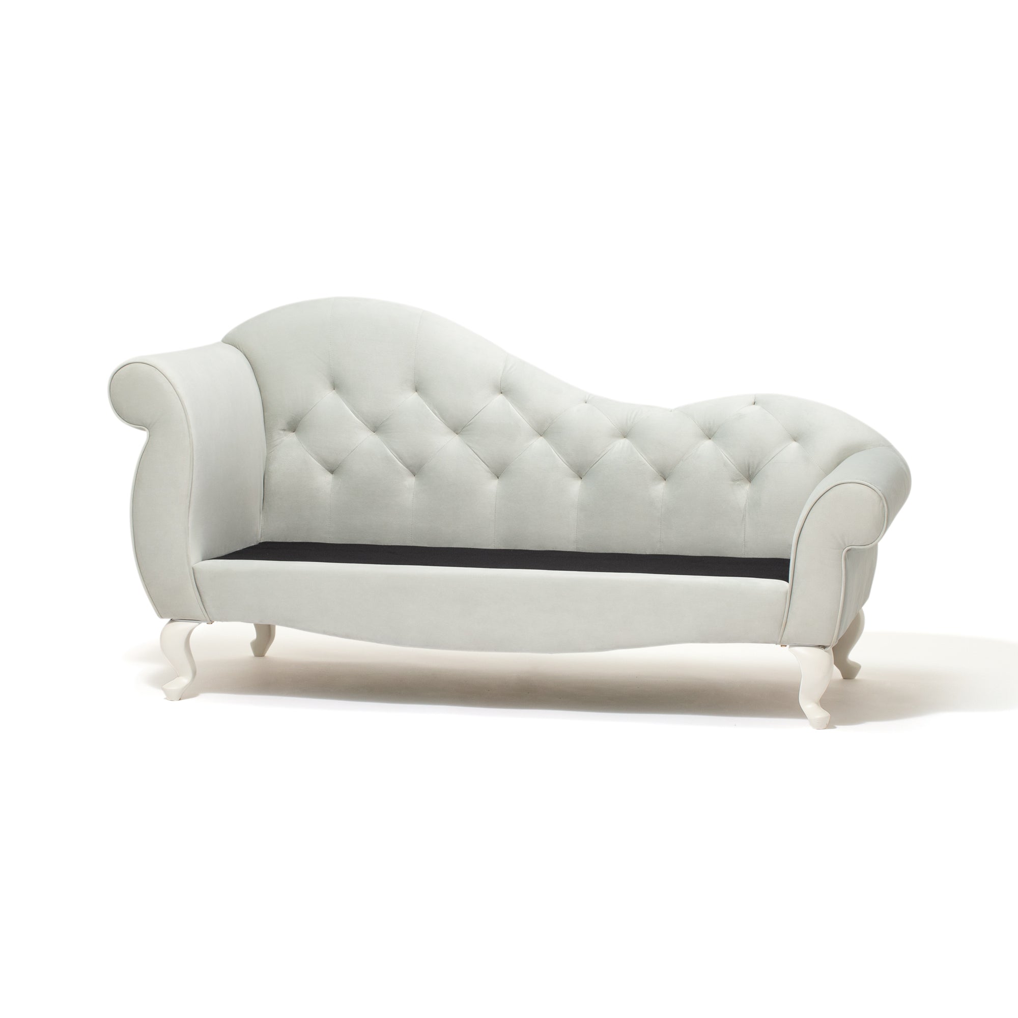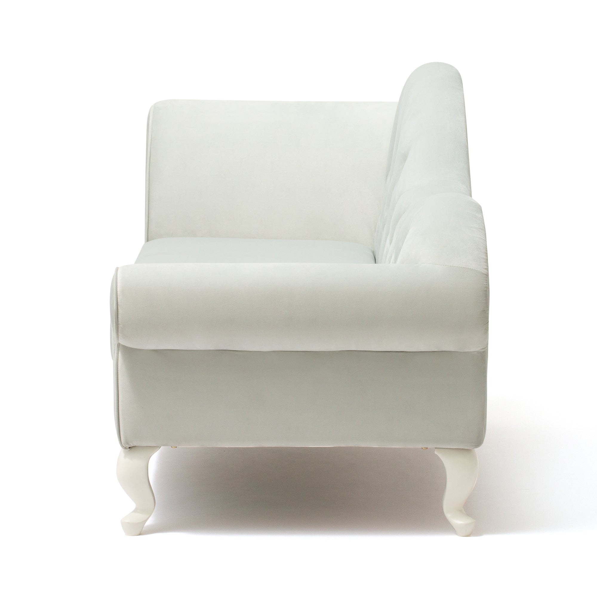 スイートテイストのコーディネートにぴったりなカウチです。背もたれの左右非対称でなめらかな曲線は優雅でクラッシックな印象を演出しています。ひじ掛けや脚部はくるんとしたデザインでかわいらしく、ライトグレーの色味が上品な華やかさをプラスしています。ふんだんに取り入れたこだわりポイントで心が躍るような、特別な気持ちになるデザインに仕上げています。座面は硬めなので長時間座っていても疲れにくい仕様。脚部に高さがあるのでお掃除もラクラク。実用性もばっちりです。プリンセスの気品ある雰囲気をイメージしてデザインしており、プリンセス作品はドイツが舞台の作品が多いことから、ドイツ語で気品あるという意味の「エーデル」と名付けました。お気に入りのクッションやテーブルとコーディネートいただき、優雅な寛ぎの空間をお楽しみください。