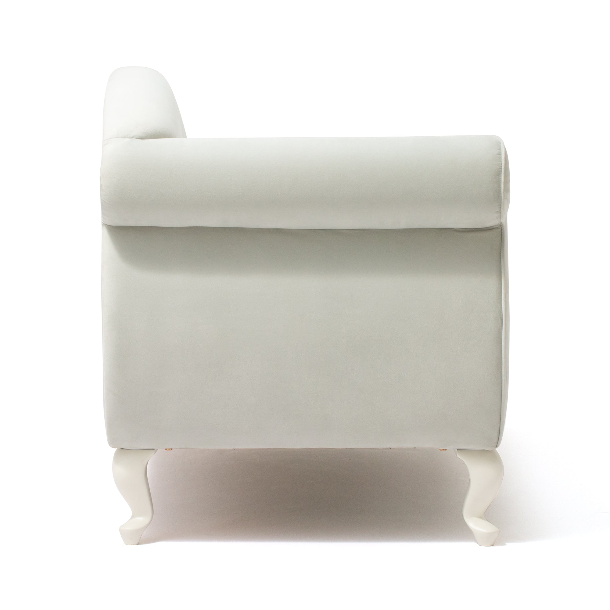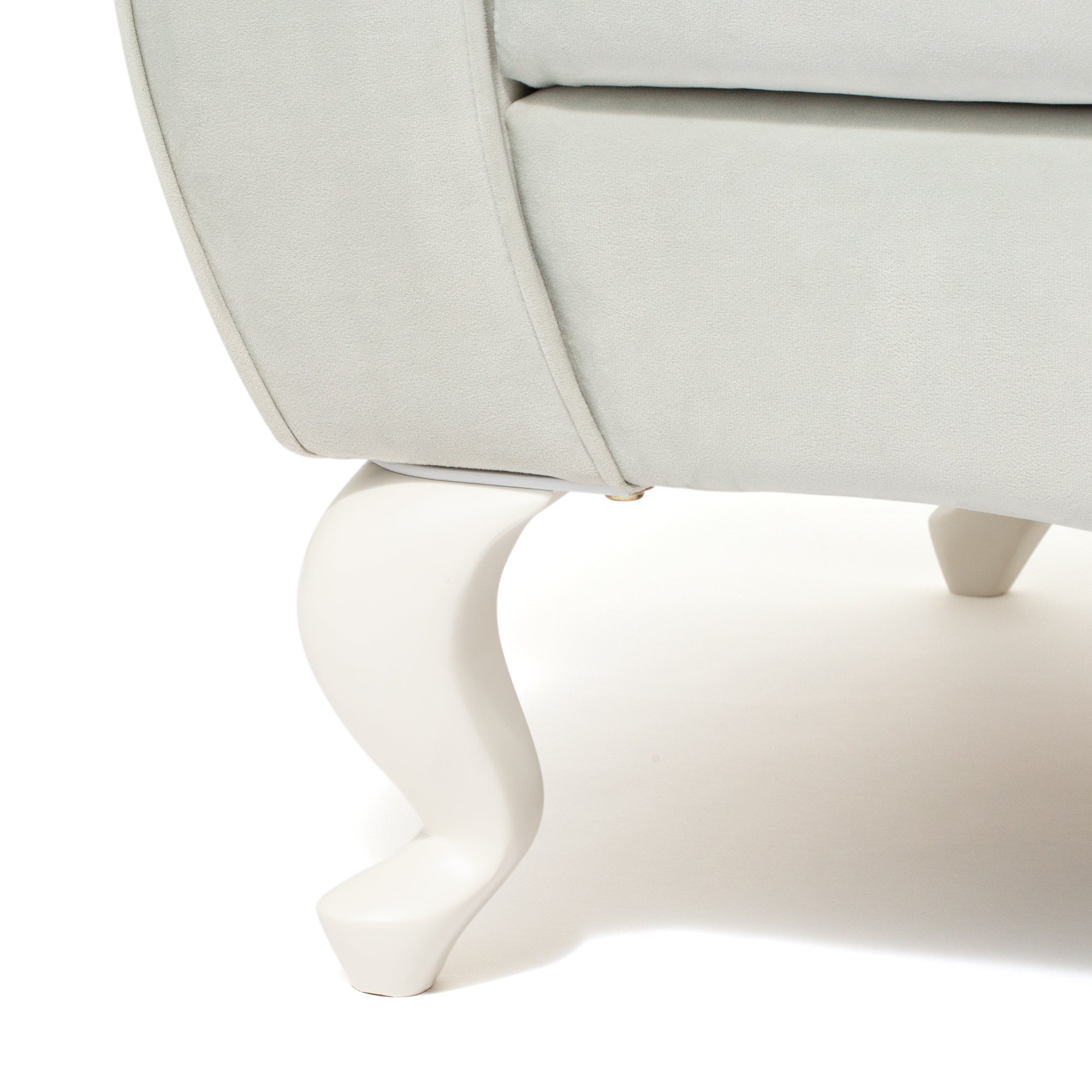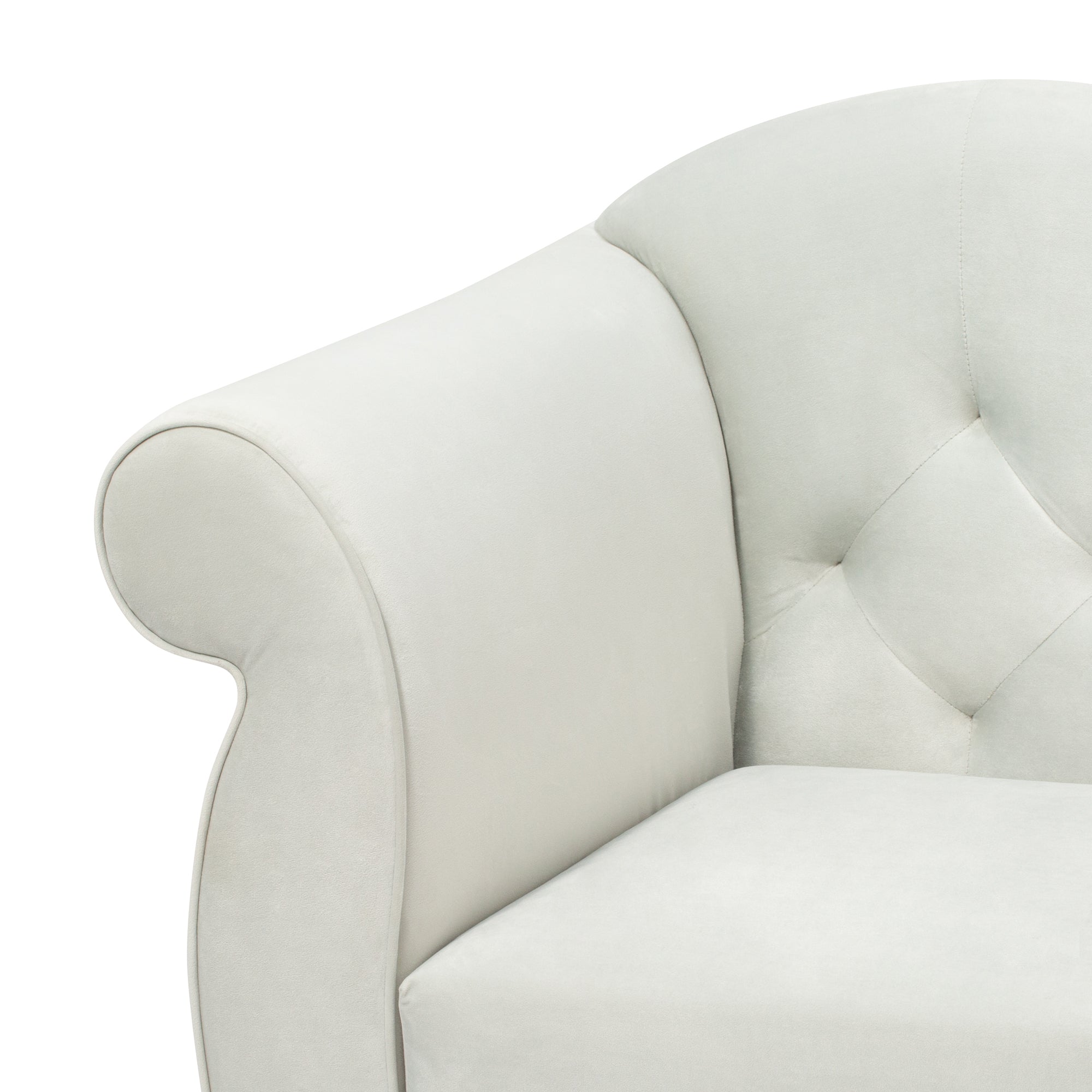 スイートテイストのコーディネートにぴったりなカウチです。背もたれの左右非対称でなめらかな曲線は優雅でクラッシックな印象を演出しています。ひじ掛けや脚部はくるんとしたデザインでかわいらしく、ライトグレーの色味が上品な華やかさをプラスしています。ふんだんに取り入れたこだわりポイントで心が躍るような、特別な気持ちになるデザインに仕上げています。座面は硬めなので長時間座っていても疲れにくい仕様。脚部に高さがあるのでお掃除もラクラク。実用性もばっちりです。プリンセスの気品ある雰囲気をイメージしてデザインしており、プリンセス作品はドイツが舞台の作品が多いことから、ドイツ語で気品あるという意味の「エーデル」と名付けました。お気に入りのクッションやテーブルとコーディネートいただき、優雅な寛ぎの空間をお楽しみください。