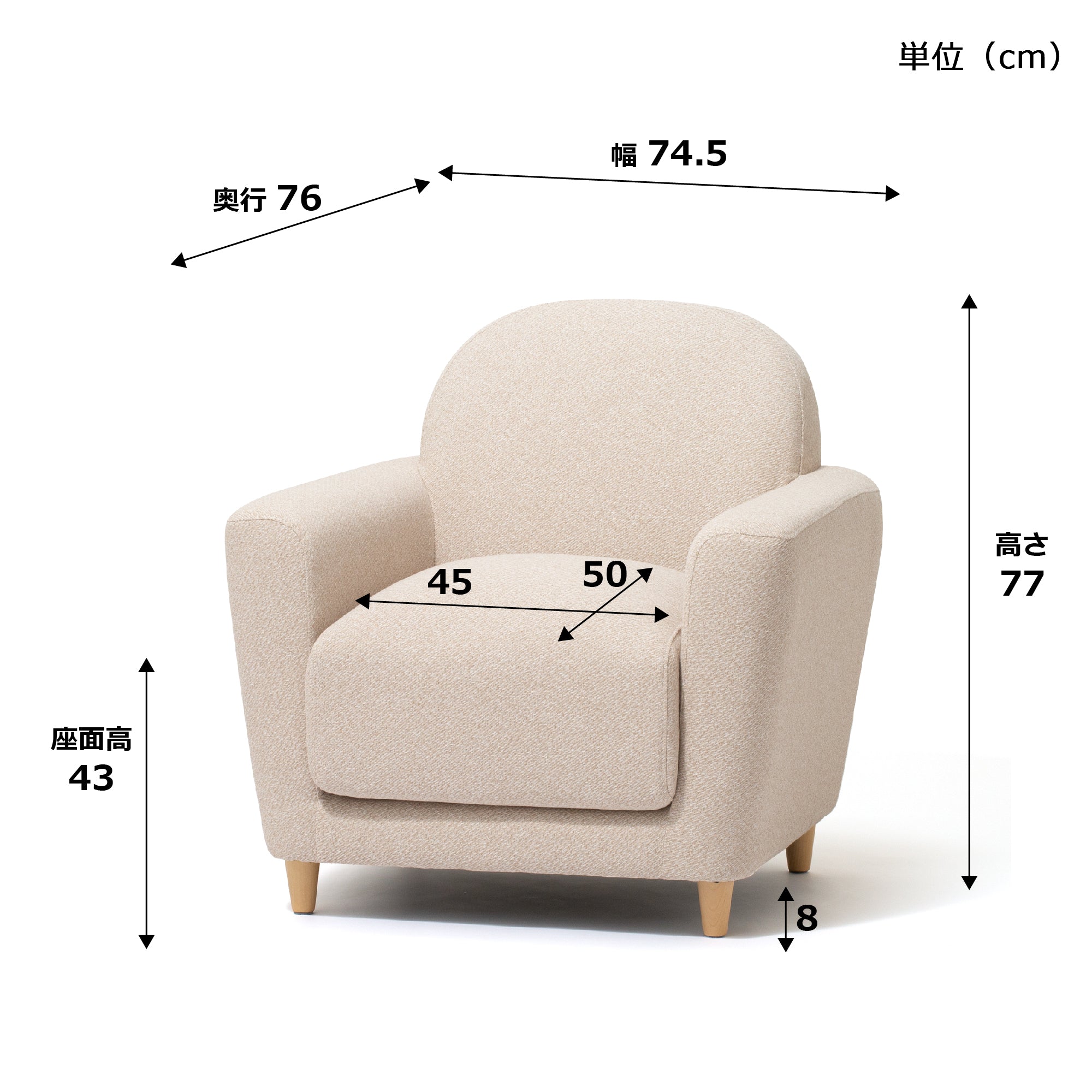幅 74.5×奥行 76×高さ 77cm