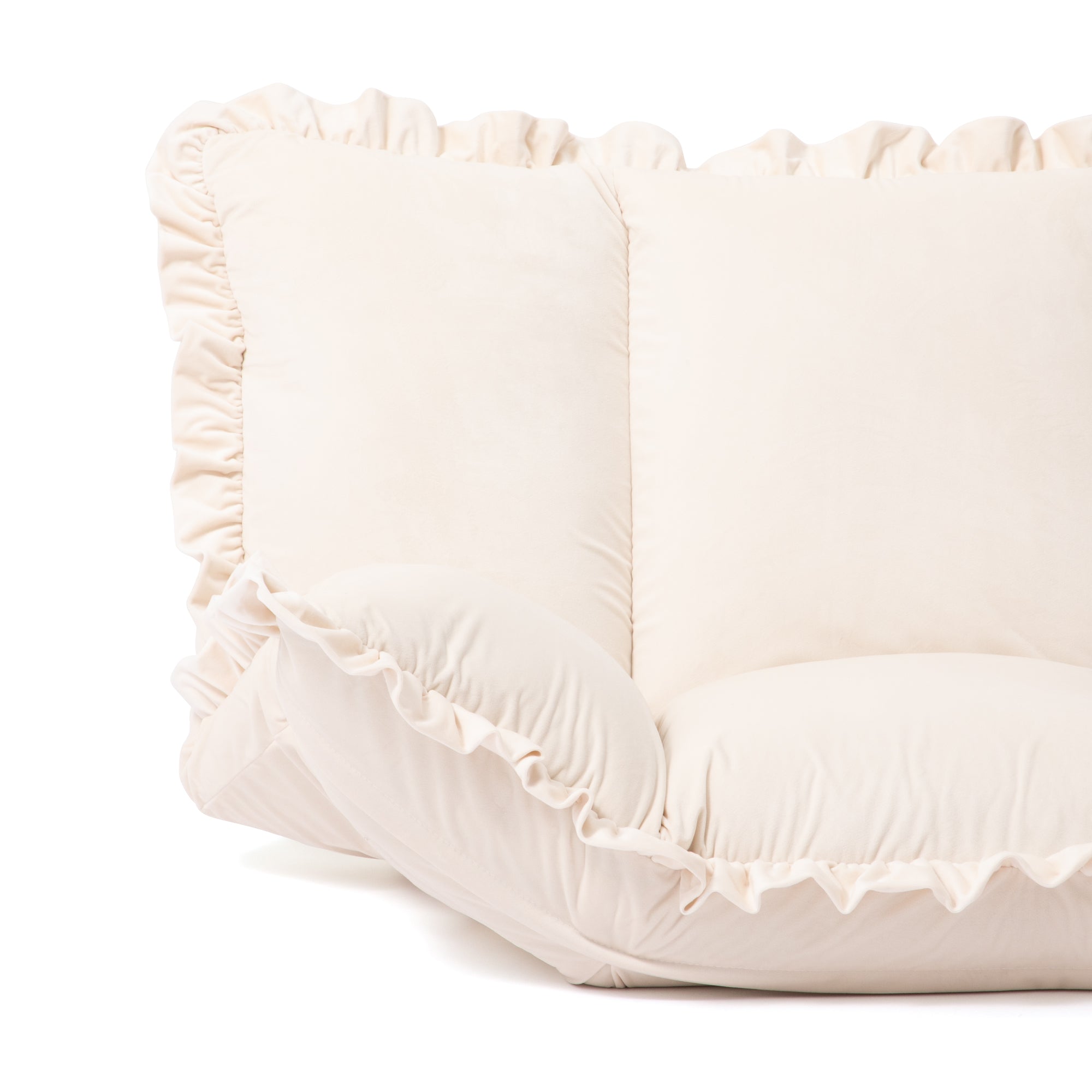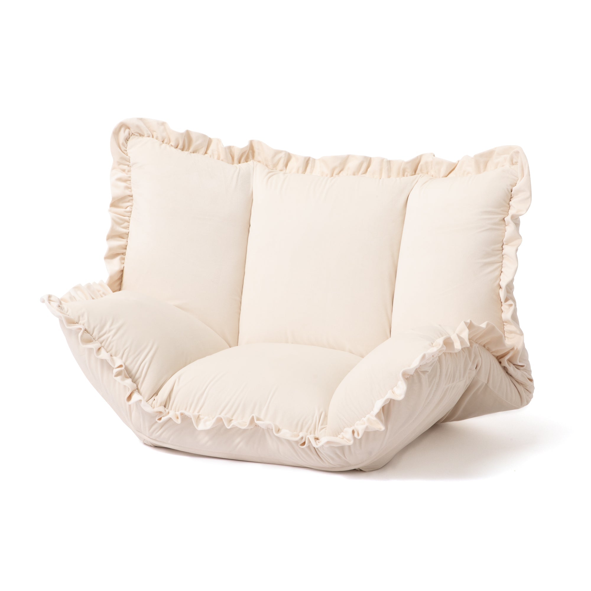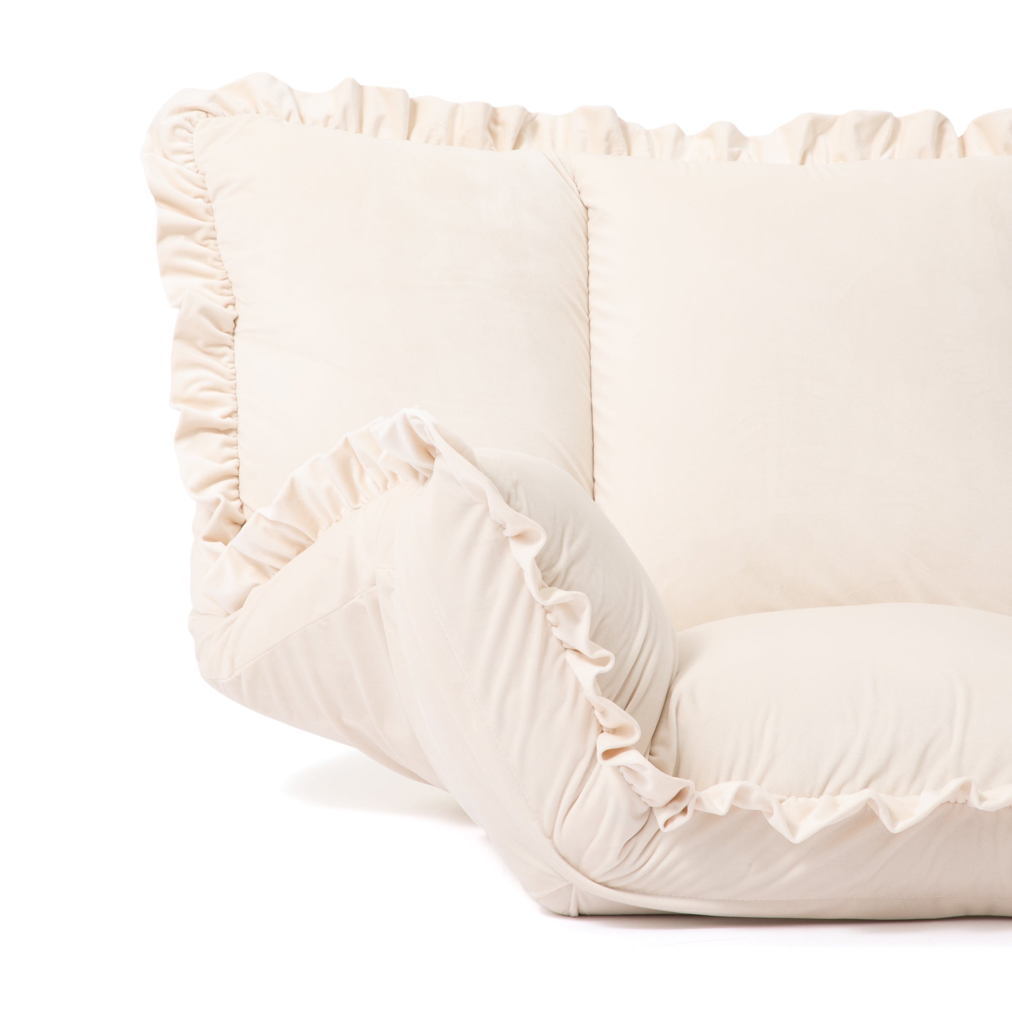 Francfrancならではのフリルが可愛い一人掛けのフロアソファです。 可愛らしいイメージを込めて、「愛嬌のある」という意味の「カラン」と名付けました。 起毛生地のフリルがかわいらしく、Francfrancの家具や雑貨とも合わせやすいアイテムです。 絶妙なサイズ感と全5箇所のギア、低反発チップウレタンがフィット感のある座り心地を実現。普通のソファは大きすぎて置けないけど、ソファのようにゆったりくつろげる場所が欲しいという方におすすめです。 背もたれ、背もたれ両サイド、肘掛け両サイドはそれぞれ14段階の角度調整可能なので、お好みの角度に細かく調整可能。お気に入りの角度で読書や映画鑑賞など、快適な時間をお過ごしいただけます。