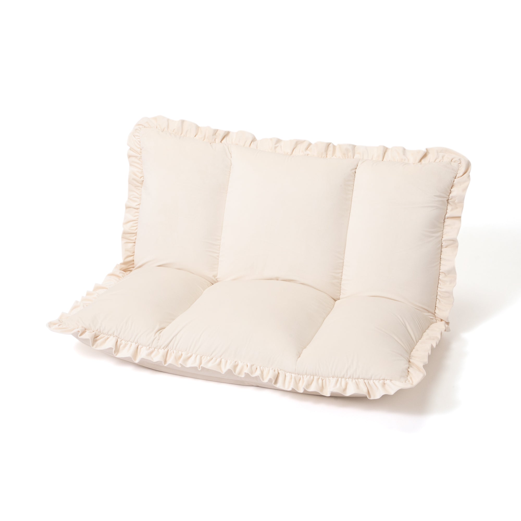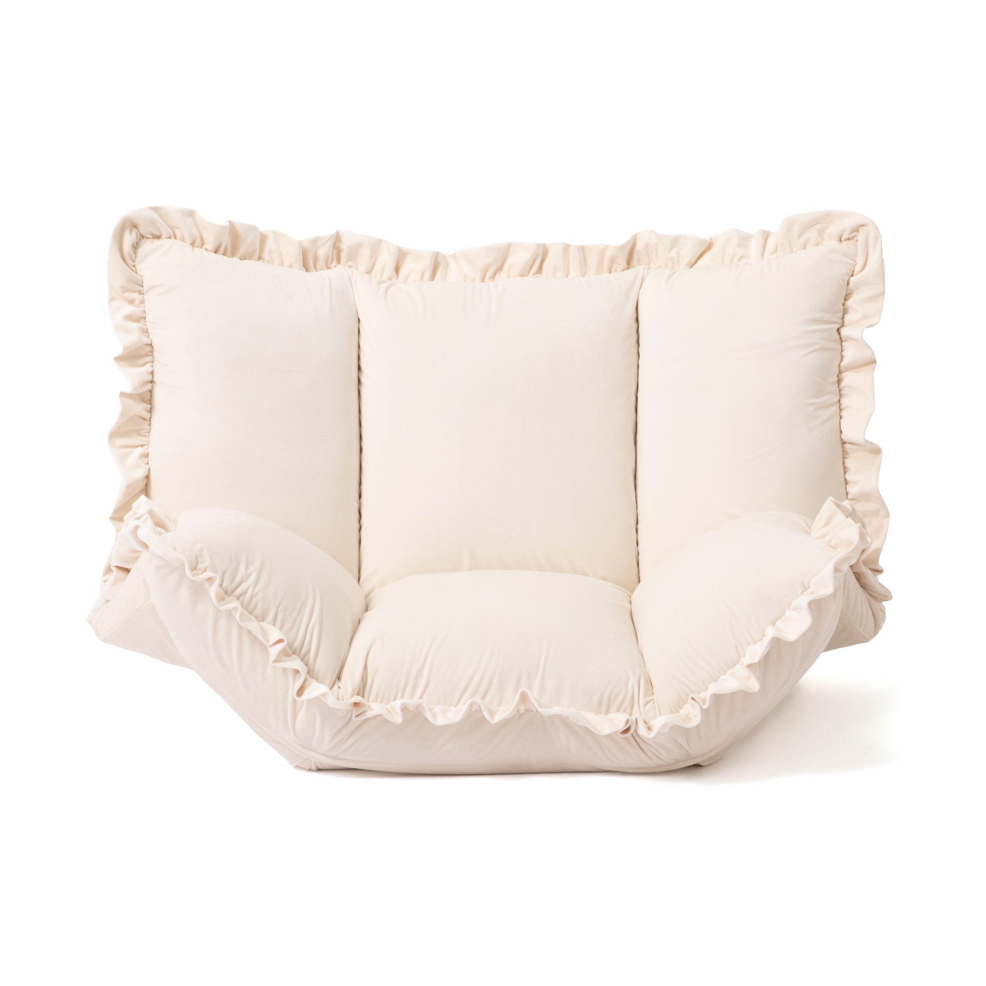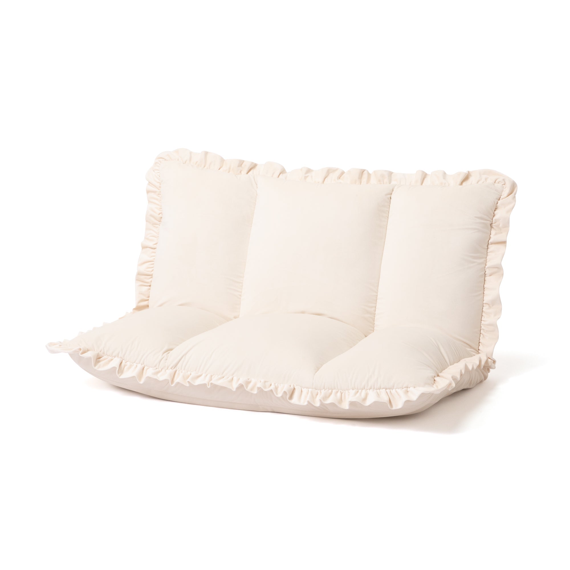 Francfrancならではのフリルが可愛い一人掛けのフロアソファです。 可愛らしいイメージを込めて、「愛嬌のある」という意味の「カラン」と名付けました。 起毛生地のフリルがかわいらしく、Francfrancの家具や雑貨とも合わせやすいアイテムです。 絶妙なサイズ感と全5箇所のギア、低反発チップウレタンがフィット感のある座り心地を実現。普通のソファは大きすぎて置けないけど、ソファのようにゆったりくつろげる場所が欲しいという方におすすめです。 背もたれ、背もたれ両サイド、肘掛け両サイドはそれぞれ14段階の角度調整可能なので、お好みの角度に細かく調整可能。お気に入りの角度で読書や映画鑑賞など、快適な時間をお過ごしいただけます。