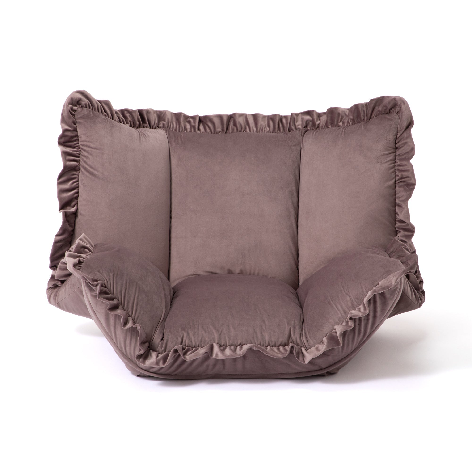 Francfrancならではのフリルが可愛い一人掛けのフロアソファです。 可愛らしいイメージを込めて、「愛嬌のある」という意味の「カラン」と名付けました。 起毛生地のフリルがかわいらしく、Francfrancの家具や雑貨とも合わせやすいアイテムです。 絶妙なサイズ感と全5箇所のギア、低反発チップウレタンがフィット感のある座り心地を実現。普通のソファは大きすぎて置けないけど、ソファのようにゆったりくつろげる場所が欲しいという方におすすめです。 背もたれ、背もたれ両サイド、肘掛け両サイドはそれぞれ14段階の角度調整可能なので、お好みの角度に細かく調整可能。お気に入りの角度で読書や映画鑑賞など、快適な時間をお過ごしいただけます。