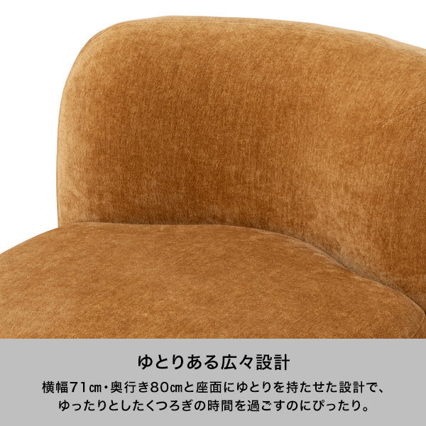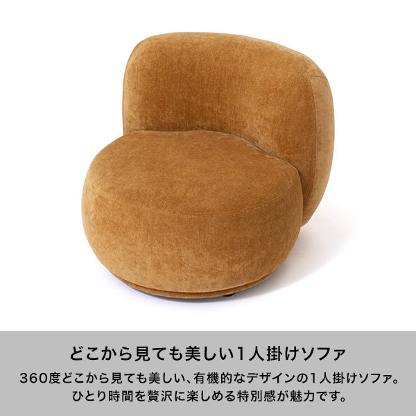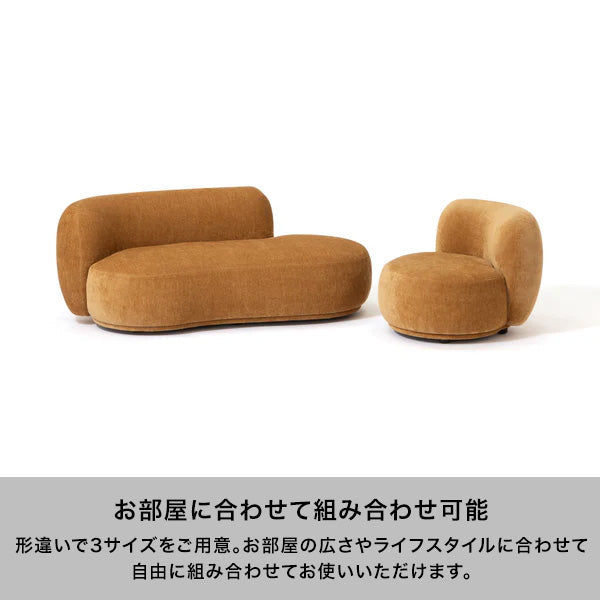ぽってりと丸みを帯びたトレンドソファリビングの一角やベッドサイドなどに置きたい、有機的なデザインの1人掛けソファです。壁付けだけでなく好きな場所に自由にレイアウトできるのは360度どこから見ても美しいフォルムならでは。かわいらしい円形の座面は十分な奥行きがあり、ゆったりとしたくつろぎの時間を過ごすのにぴったりです。さらりと心地よい肌触りファブリックにはトレンドカラーとして人気のマスタードイエローを採用。さらっとした触り心地で季節を問わず使いやすいソファに仕上げました。高級感あふれる上品な光沢がワンランク上のインテリアを叶えます。ゆったりとした1人掛けサイズ横幅71cm・奥行き80cmのゆとりある設計で、リラックスタイムの定位置にぴったり。ロータイプでアームがないデザインなので圧迫感を感じさせません。選べる3サイズ展開で自由なレイアウト形違いで3サイズをご用意しました。お部屋の広さやライフスタイルに合わせて「2人掛け+1人掛け」「3人掛け+1人掛け」など自由に組み合わせてお使いいただけます。