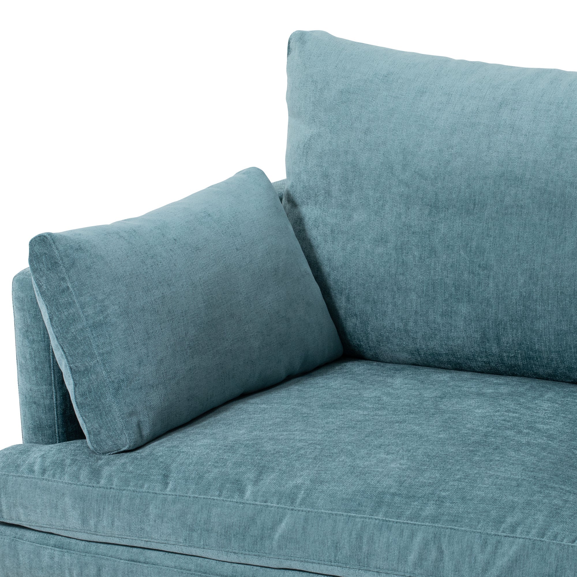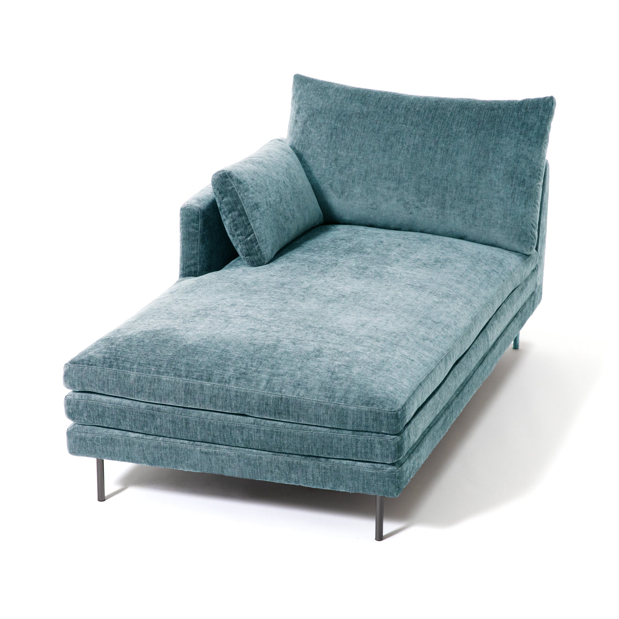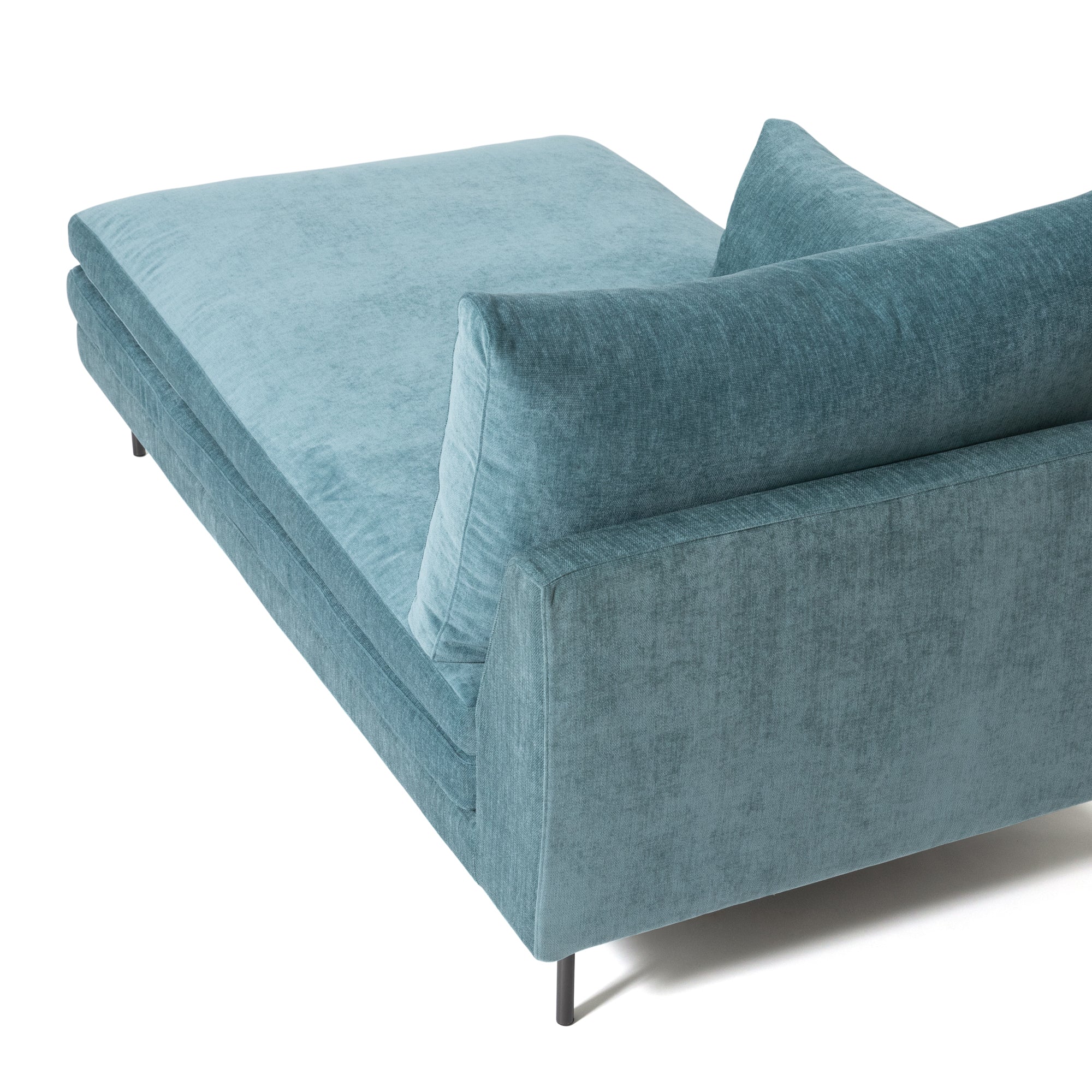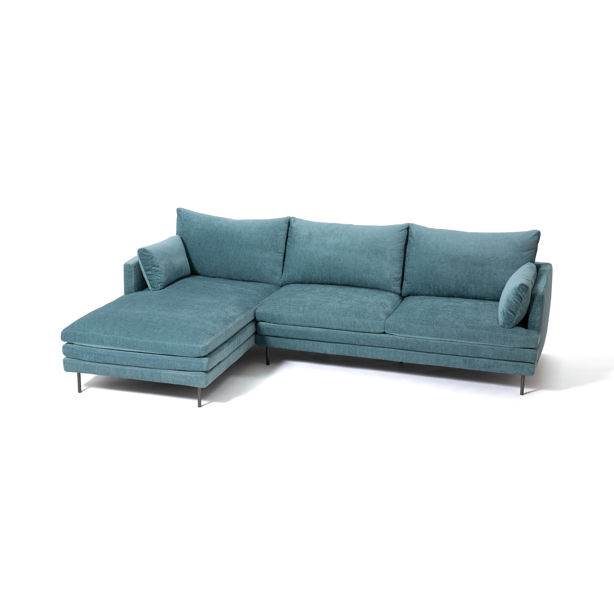 ゆったりサイズのエレガントなソファです。光沢のある起毛生地使いと色合いは圧迫感を感じさせず、広い空間を演出してくれます。背・座クッションにはフェザーを贅沢に使用し、座り心地にもこだわりました。エレガントな大型ソファソファ・カウチを合わせて幅2690mmの大型ソファですが、アームやフレーム・脚部を細身に作り薄めの座クッションを2段重ねるなどディテールにこだわることで、圧迫感を感じさせない軽快な印象に仕上げています。こだわりのクッション座クッションは、下層に硬めのウレタン、上層にフェザーとチップウレタンを9:1の割合で配合した素材を使用しており、硬すぎず柔らかすぎない絶妙な座り心地を実現しました。同様に、背クッションにもフェザーとチップウレタンを9:1の割合で配合した素材を使用しており、快適な座り心地をキープしながら経年使用によるへたりを軽減させます。スマートな脚部丈夫なステンレス素材を使用しており、細身で軽快な印象に仕上げました。表面にはチタンメッキを施し、光沢のあるグレーの高級感あふれる脚線美が楽しめます。本体より少し奥まった位置に脚部を取り付けることで、座った時に足がぶつかりにくいよう工夫しています。