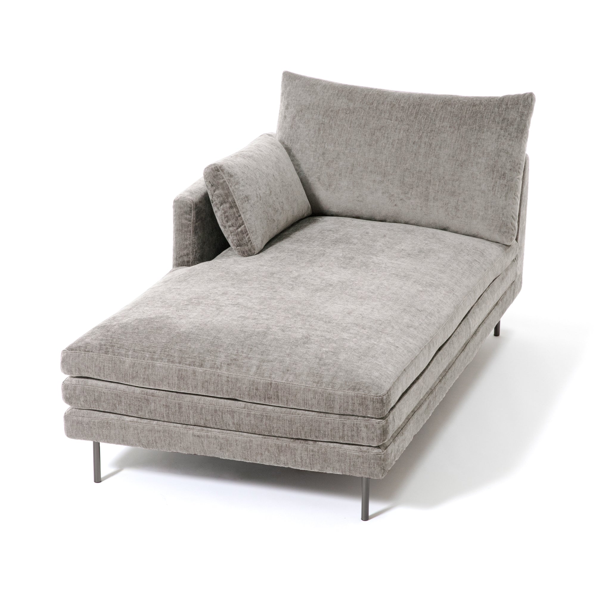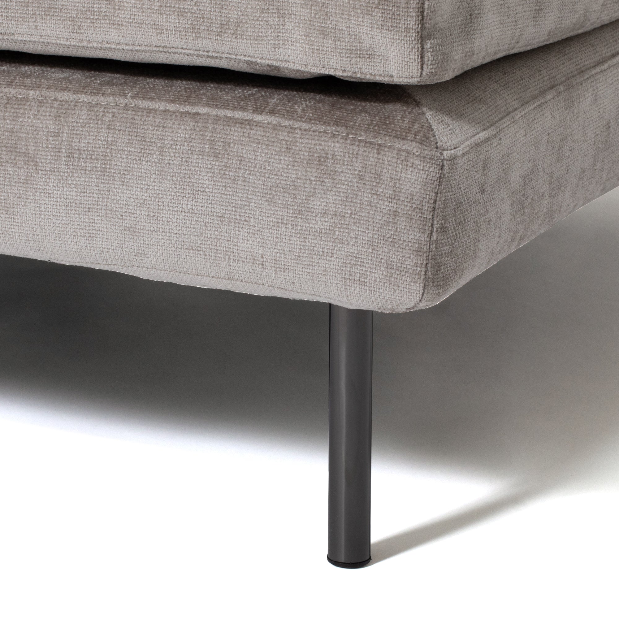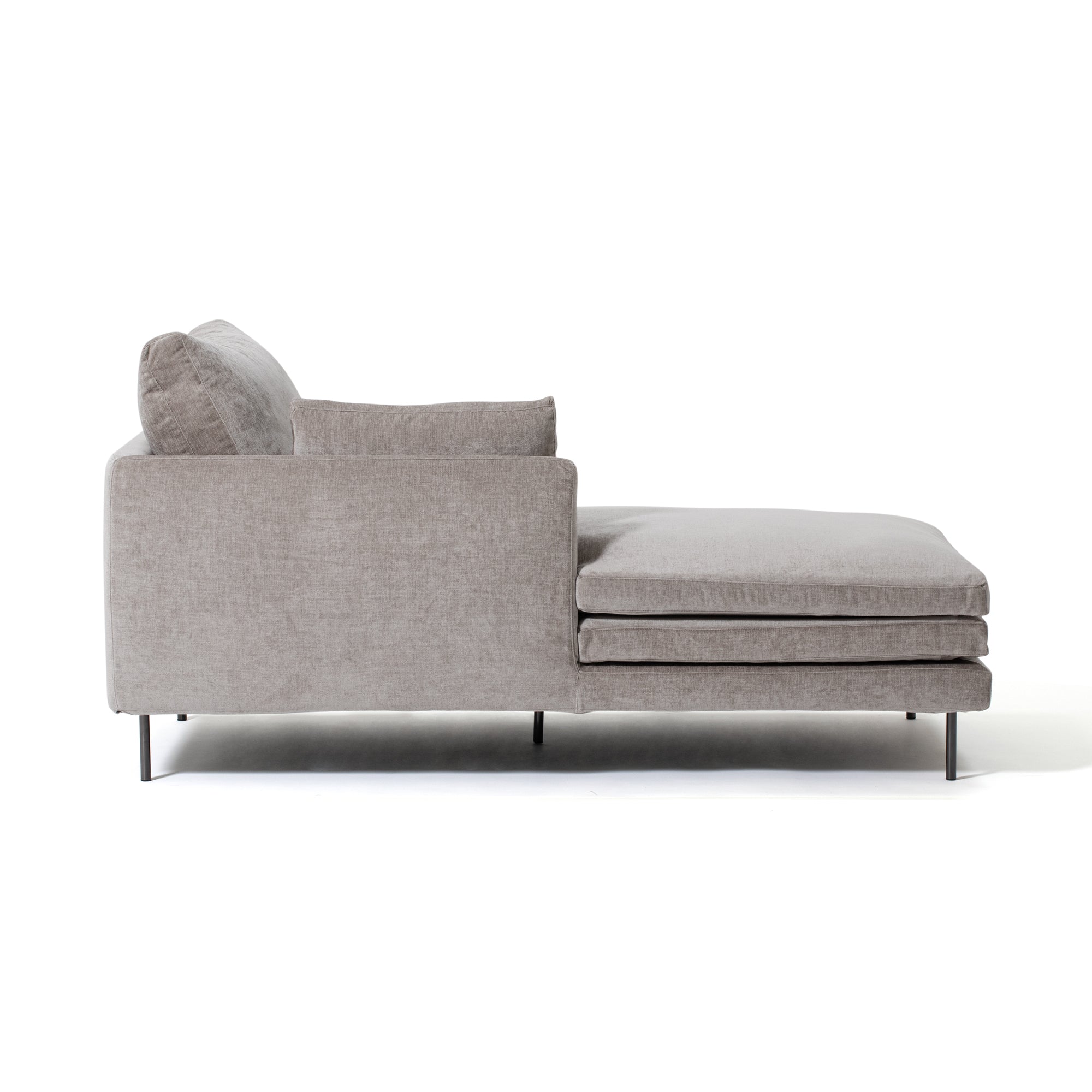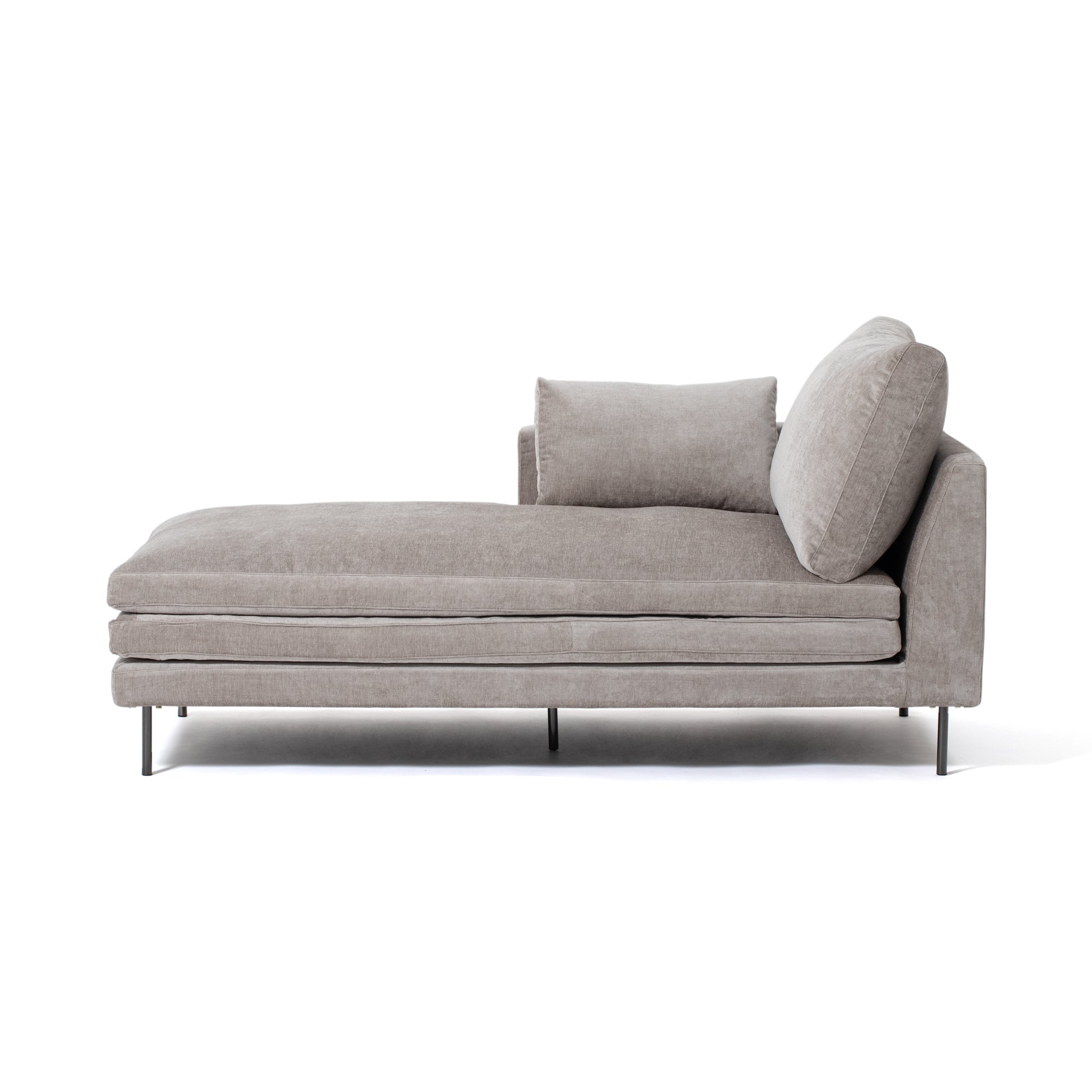ゆったりサイズのエレガントなソファです。光沢のある起毛生地使いと色合いは圧迫感を感じさせず、広い空間を演出してくれます。背・座クッションにはフェザーを贅沢に使用し、座り心地にもこだわりました。エレガントな大型ソファソファ・カウチを合わせて幅2690mmの大型ソファですが、アームやフレーム・脚部を細身に作り薄めの座クッションを2段重ねるなどディテールにこだわることで、圧迫感を感じさせない軽快な印象に仕上げています。こだわりのクッション座クッションは、下層に硬めのウレタン、上層にフェザーとチップウレタンを9:1の割合で配合した素材を使用しており、硬すぎず柔らかすぎない絶妙な座り心地を実現しました。同様に、背クッションにもフェザーとチップウレタンを9:1の割合で配合した素材を使用しており、快適な座り心地をキープしながら経年使用によるへたりを軽減させます。スマートな脚部丈夫なステンレス素材を使用しており、細身で軽快な印象に仕上げました。表面にはチタンメッキを施し、光沢のあるグレーの高級感あふれる脚線美が楽しめます。本体より少し奥まった位置に脚部を取り付けることで、座った時に足がぶつかりにくいよう工夫しています。